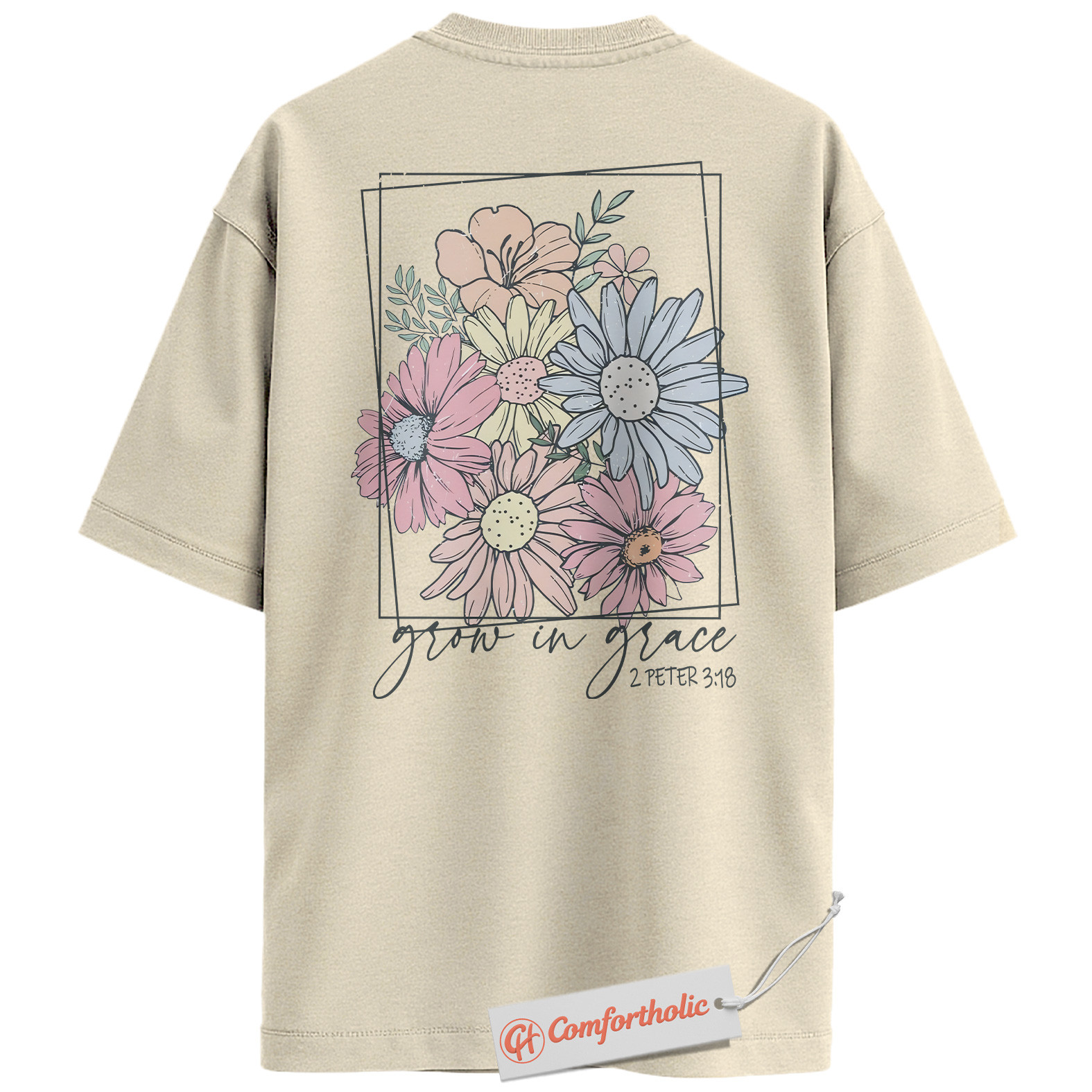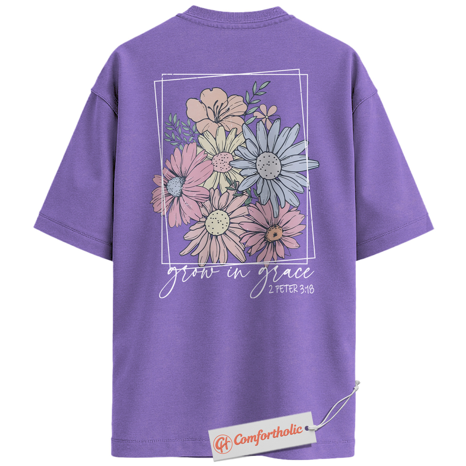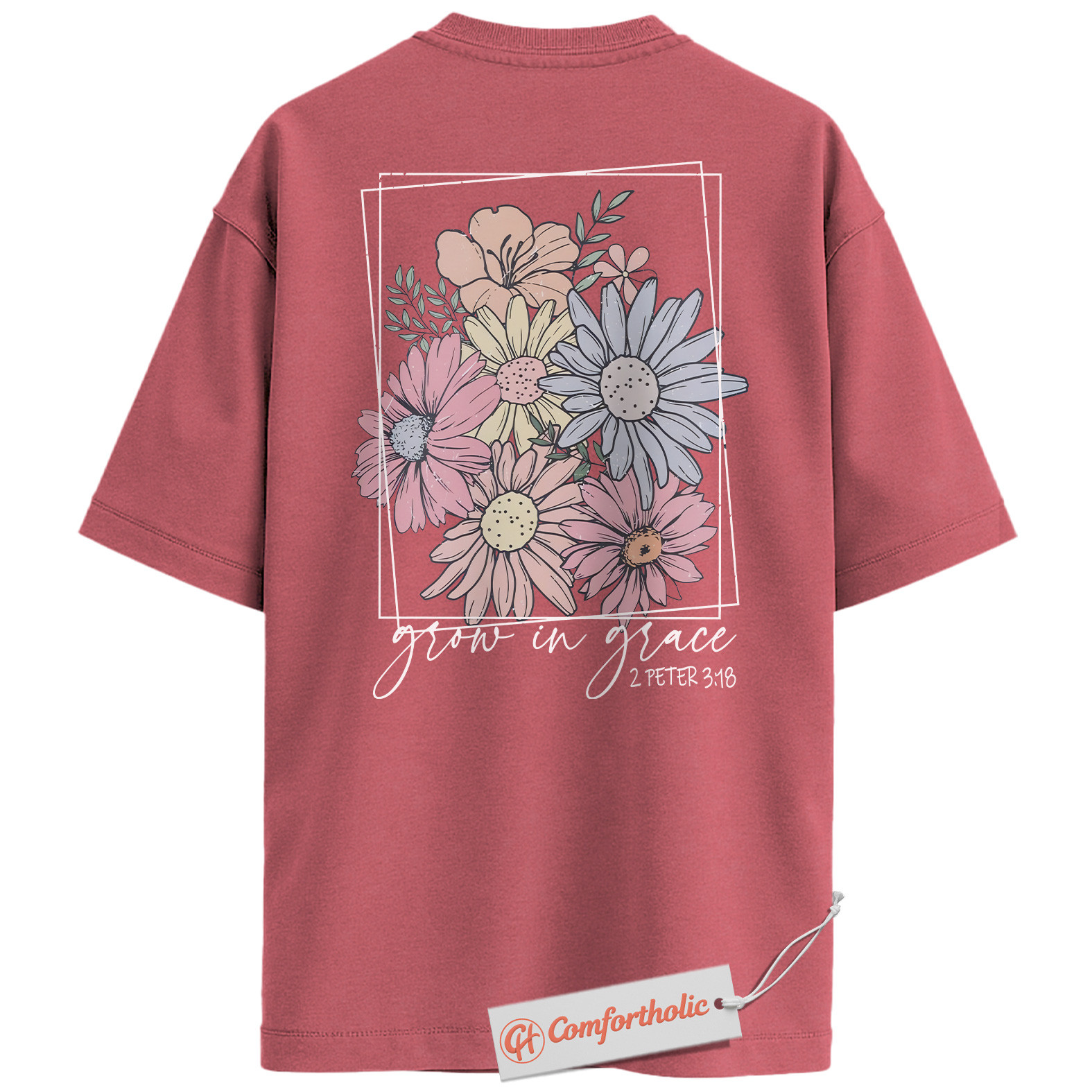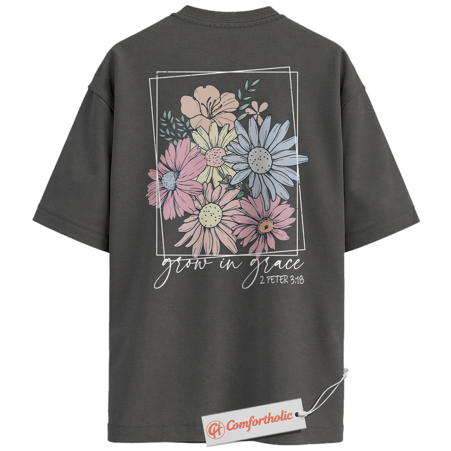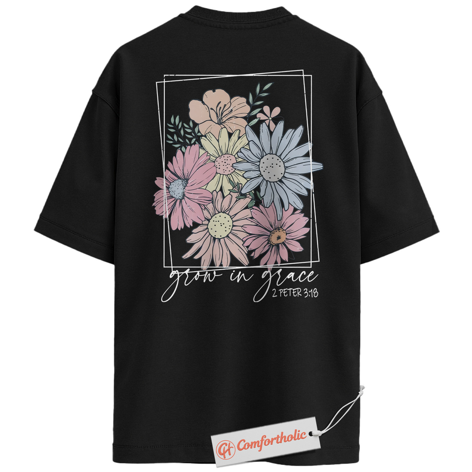 Grow in Grace Shirt, Floral Christian Shirt, 2 Peter 3:18 Bible Verse Shirt, Faith Shirt, Religious Flower Graphic Shirt, Comfort Colors Back Print Tee
