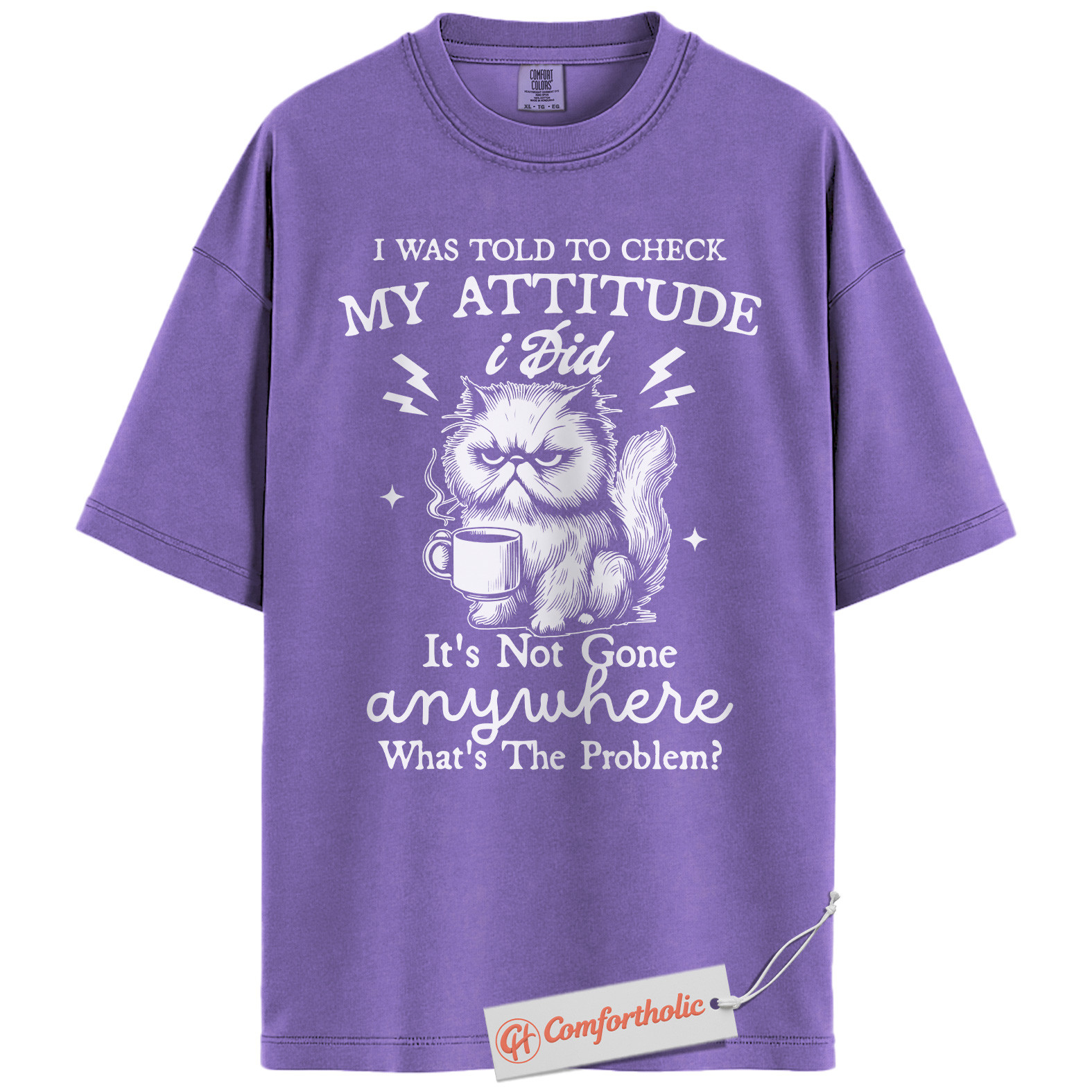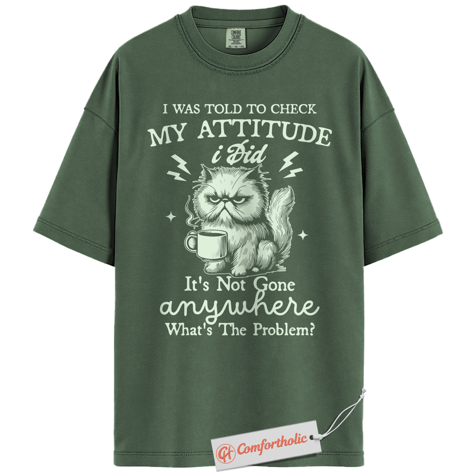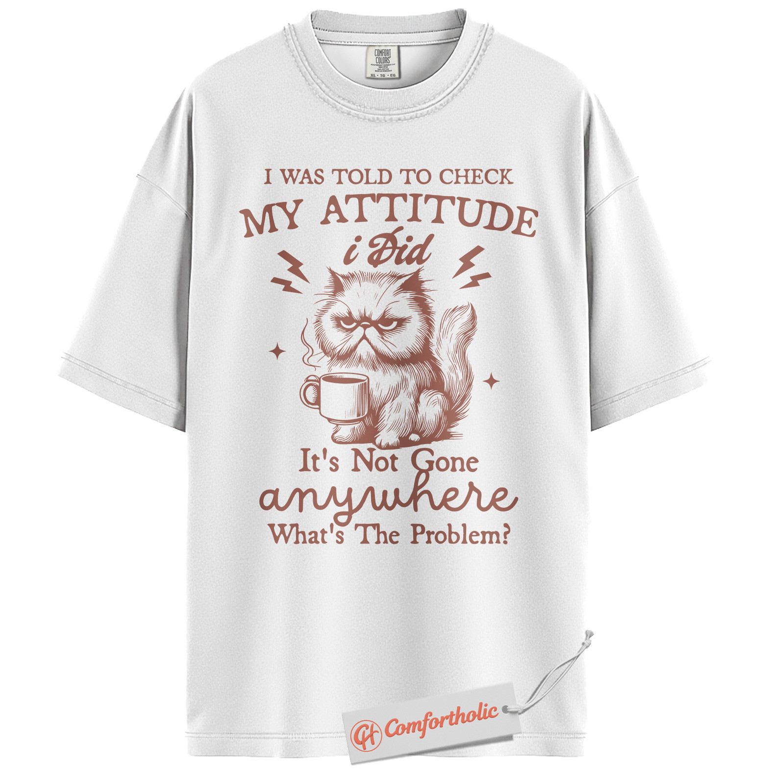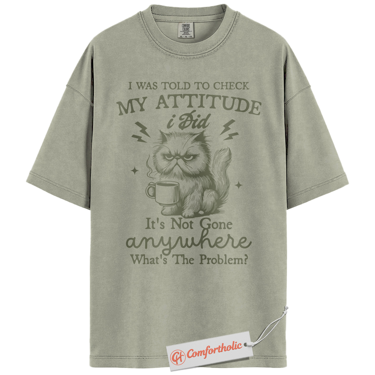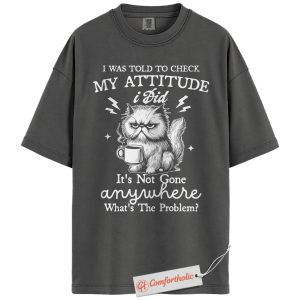 Grumpy Cat Attitude Shirt, Funny Coffee Quote Shirt, Sarcastic Kitty Graphic Shirt, Sassy Animal Lover Gift, Comfort Colors Shirt