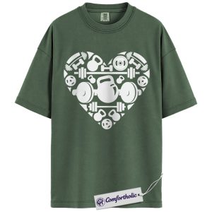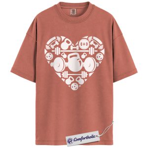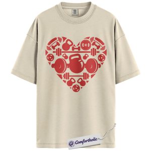 Gym Valentine Shirt, Barbell Kettlebell Heart Graphic Tee, Fitness Lover Workout T-Shirt, Valentine Gift for Gym Girls & Weightlifters, Comfort Colors Shirt