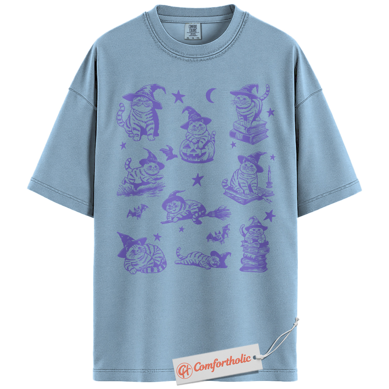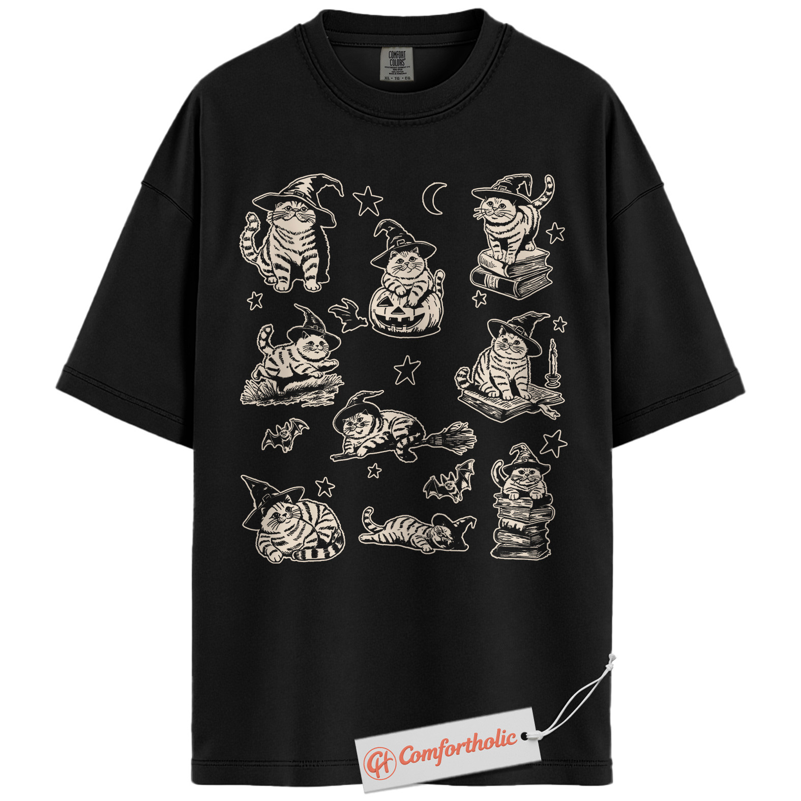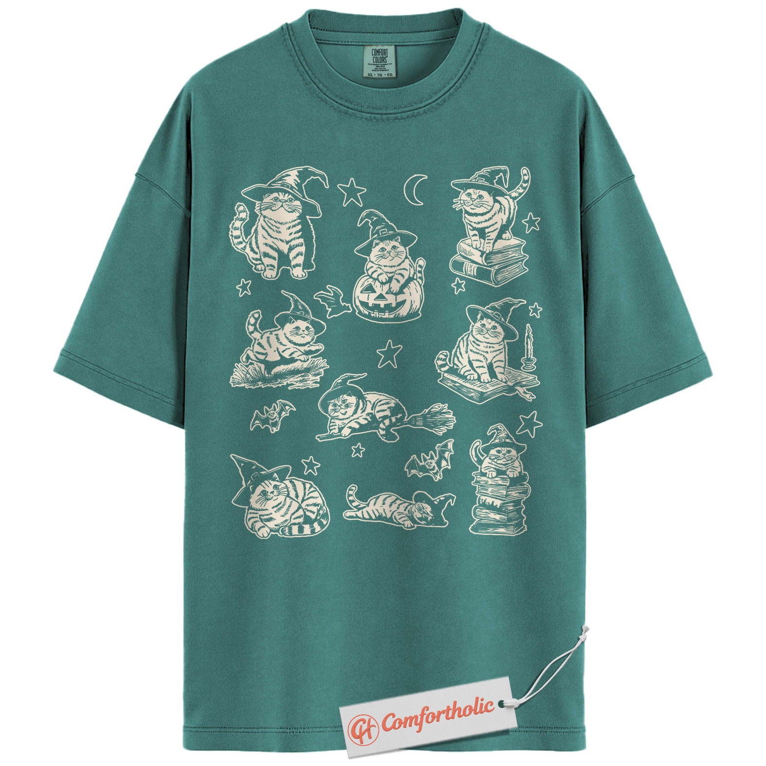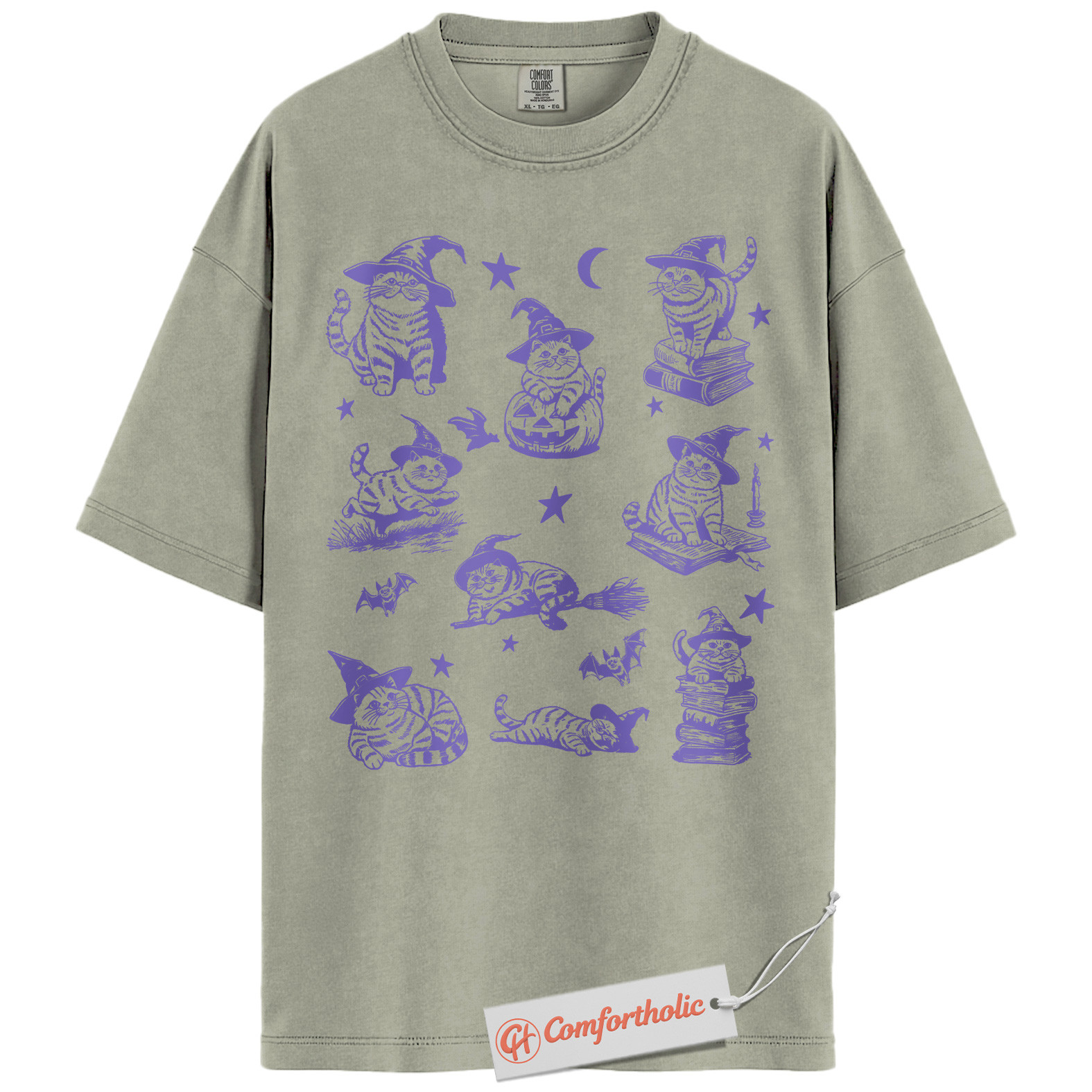 Halloween Cat Shirt, Witchy Kitty T-Shirt, Spooky Book Lover Graphic Tee, Fall Gift for Cat Moms and Halloween Fans, Cute Pet Comfort Colors Shirt