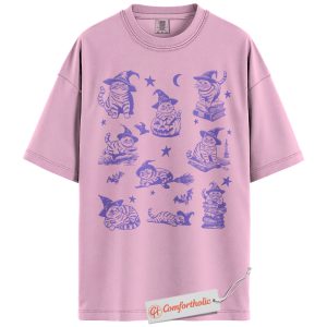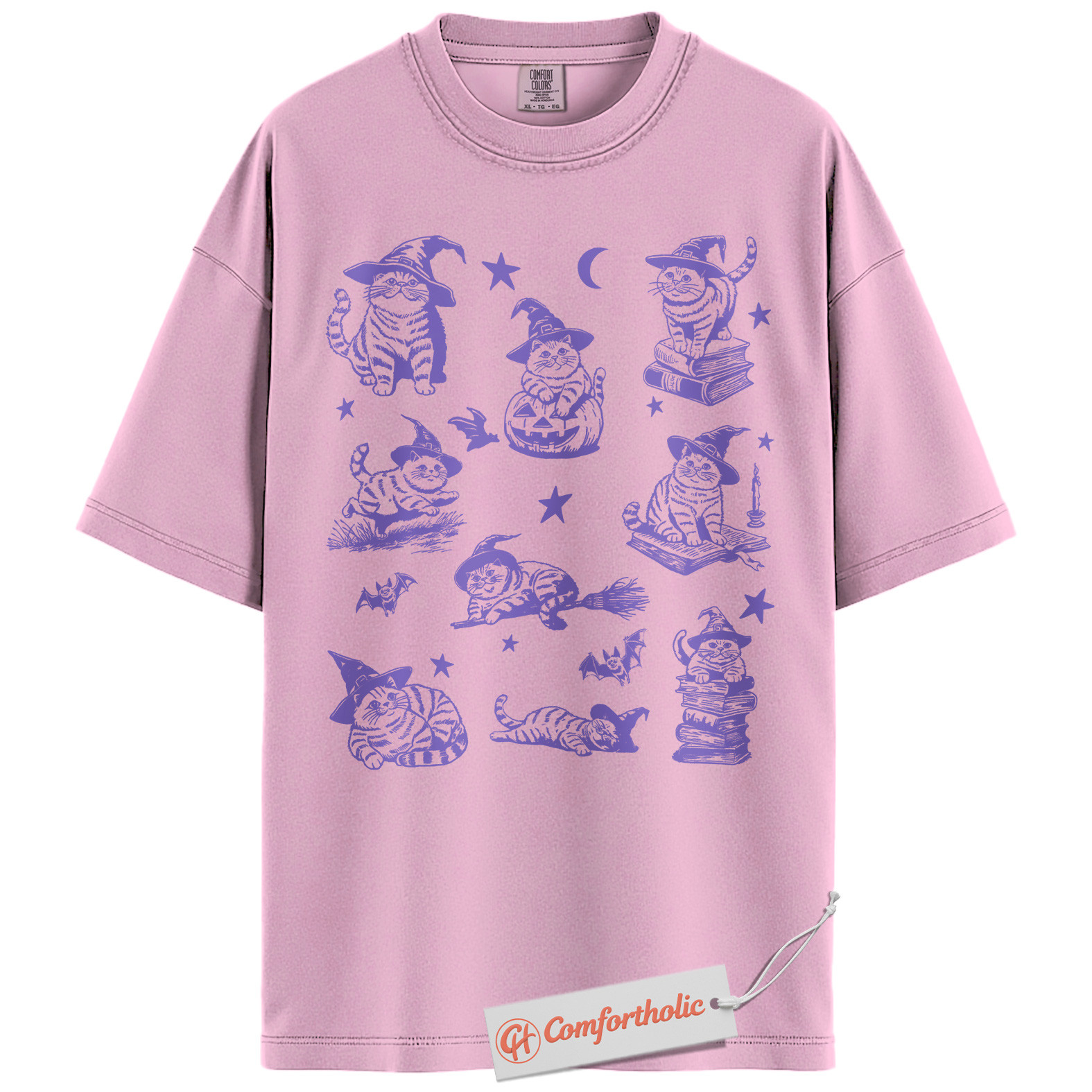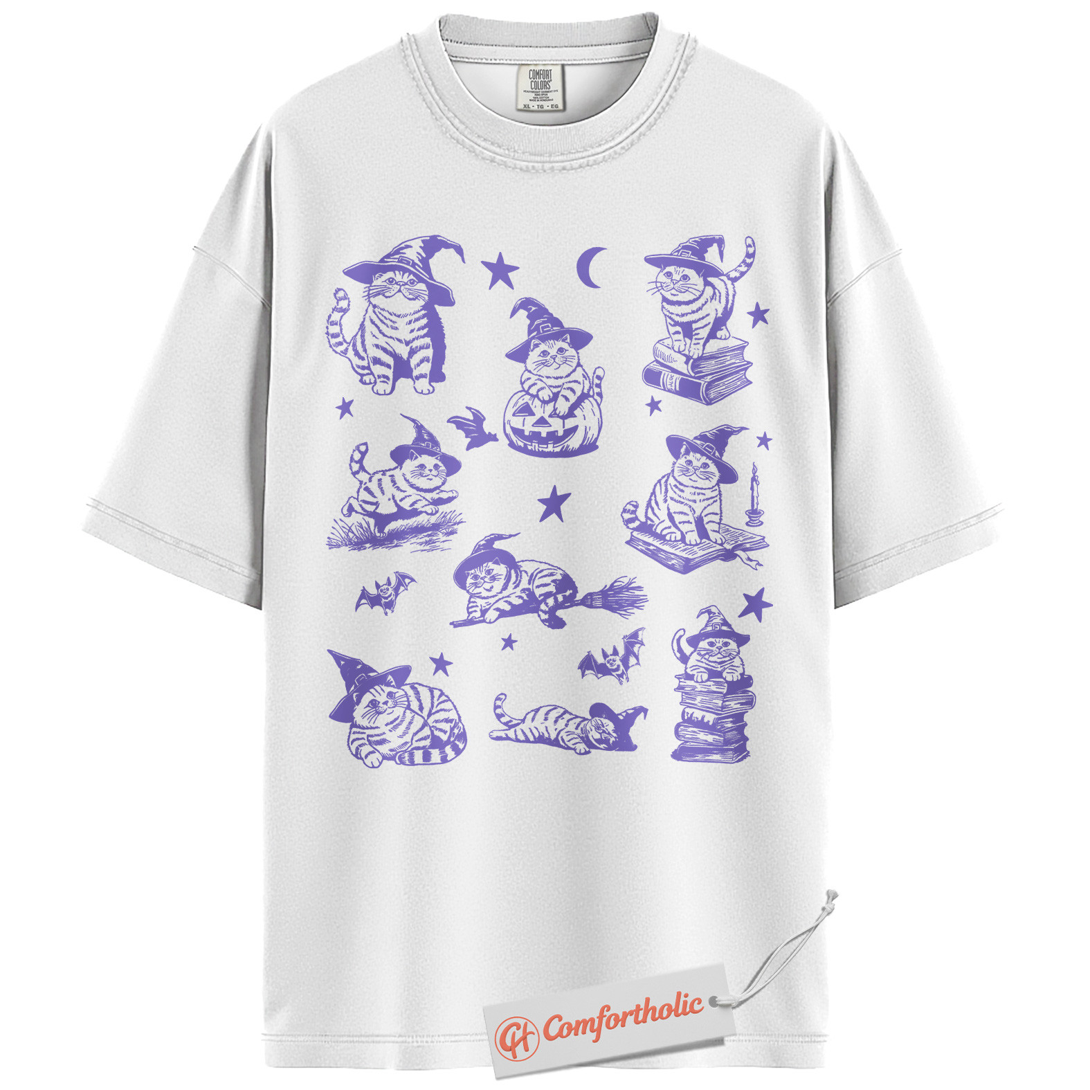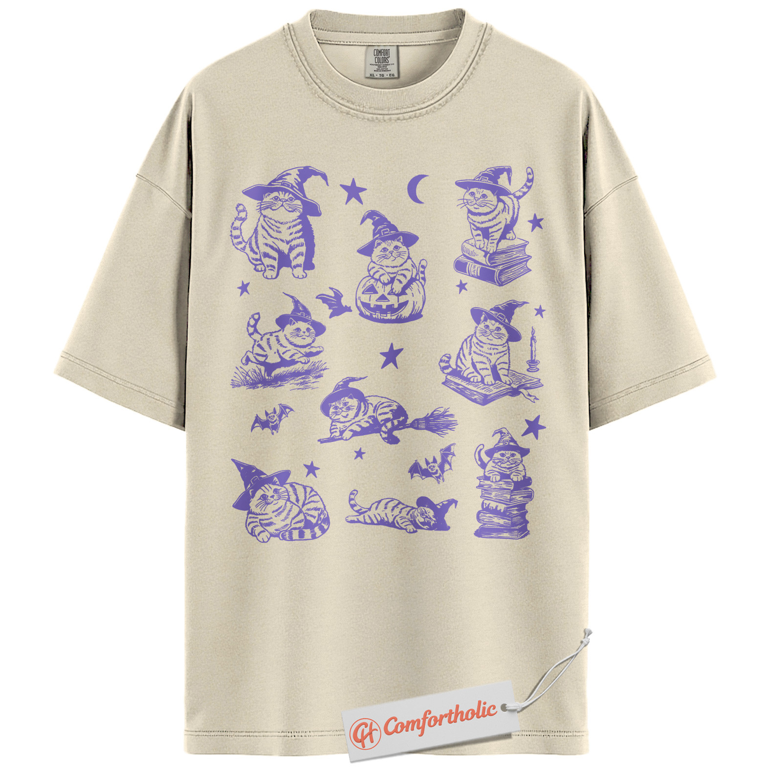 Halloween Cat Shirt, Witchy Kitty T-Shirt, Spooky Book Lover Graphic Tee, Fall Gift for Cat Moms and Halloween Fans, Cute Pet Comfort Colors Shirt