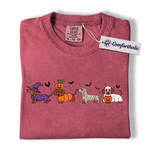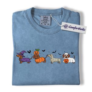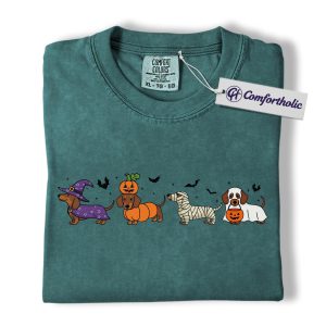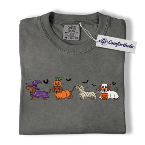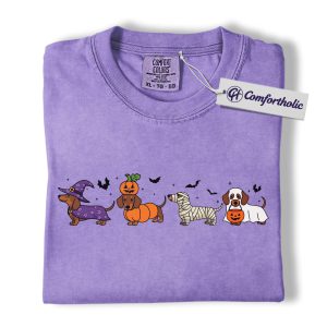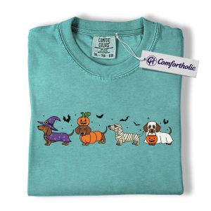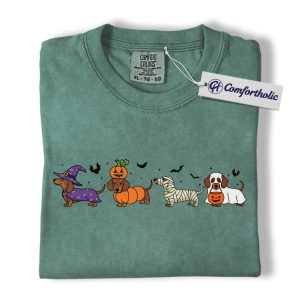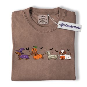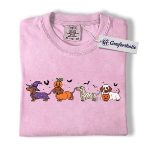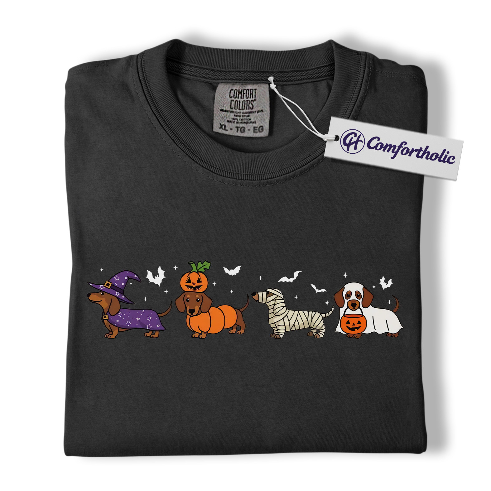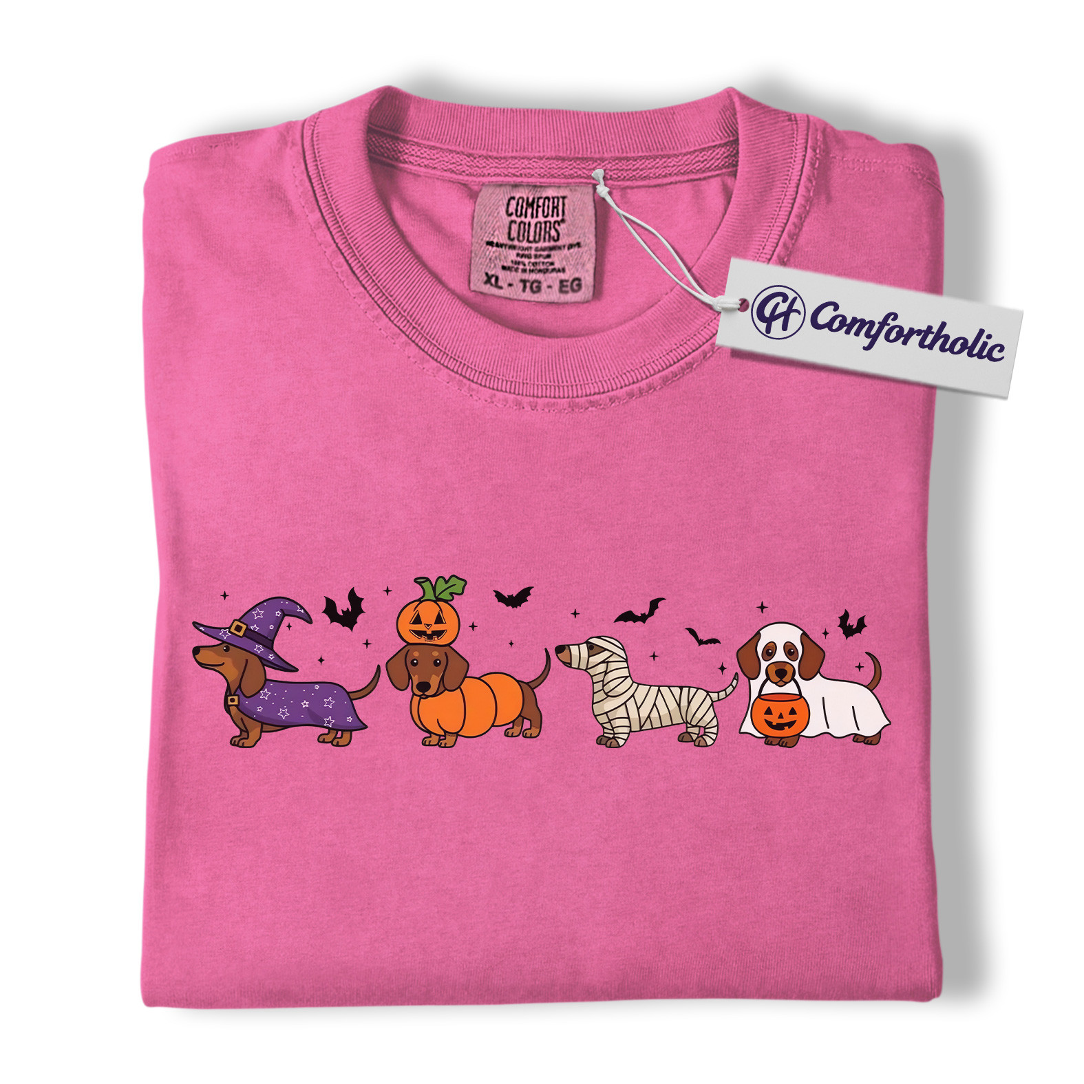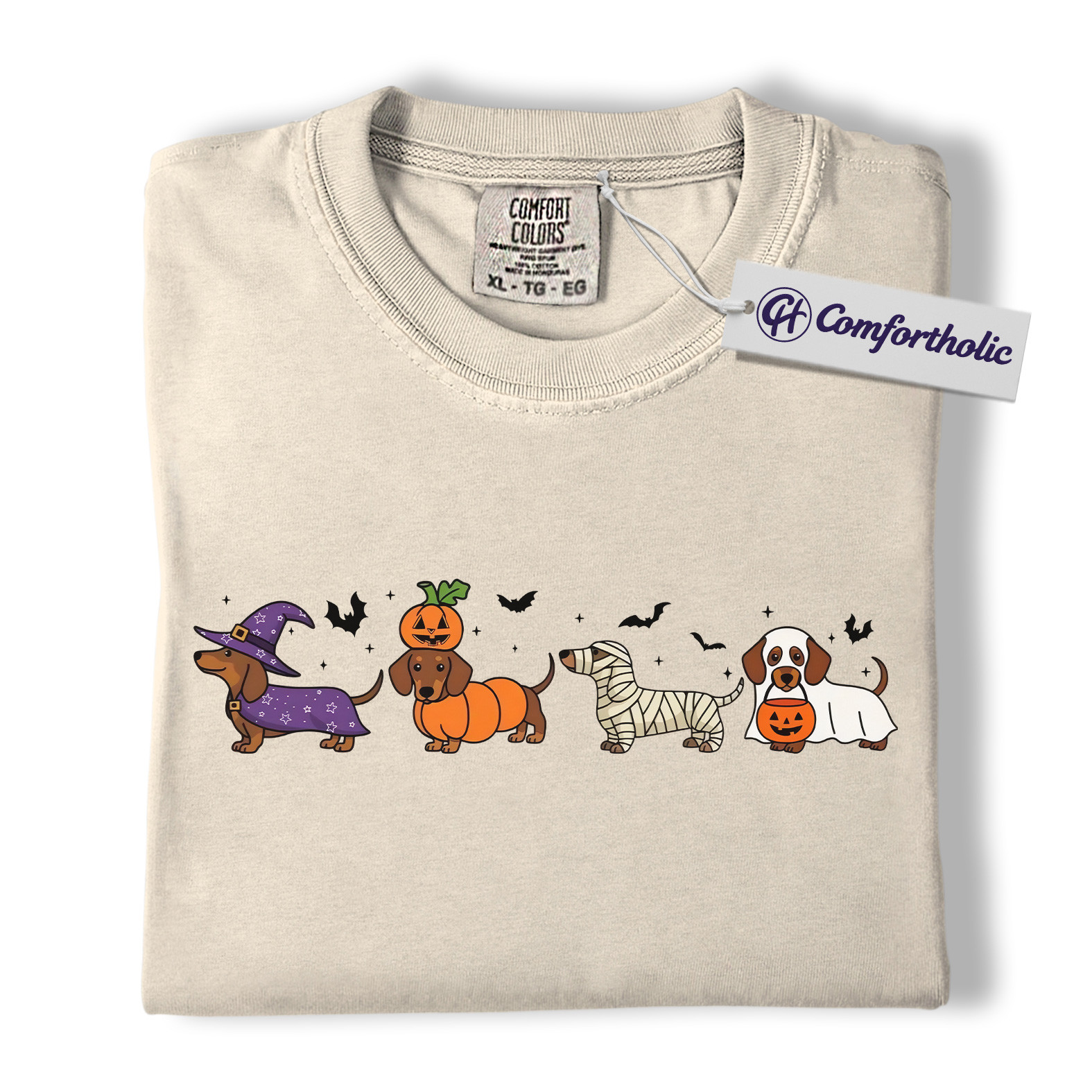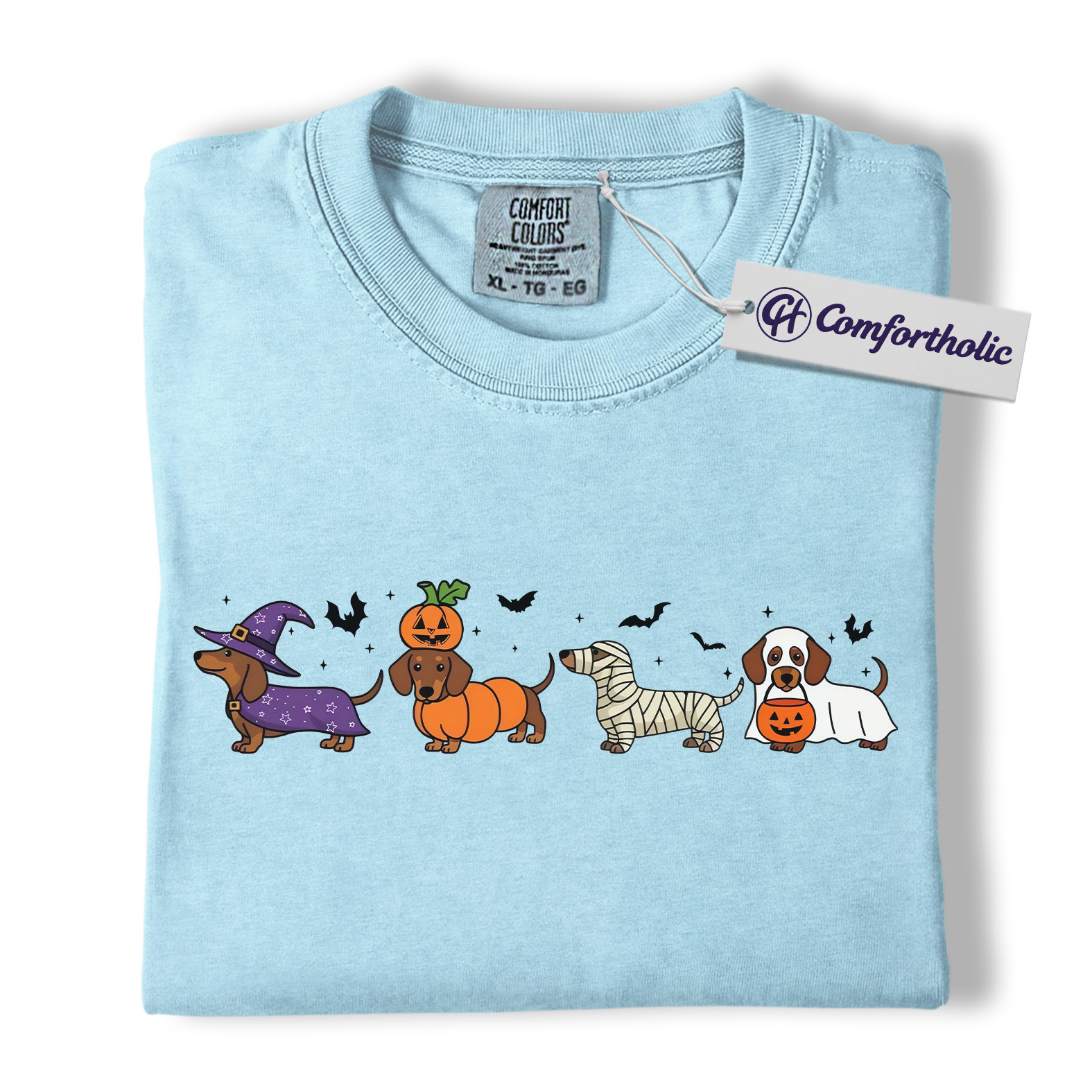 Halloween Dachshund Dog Shirt, Funny Wiener Dog Pumpkin Ghost T-Shirt, Cute Spooky Sausage Dog Graphic Tee, Fall Pet Lover Gift Top, Halloween Comfort Colors Shirt