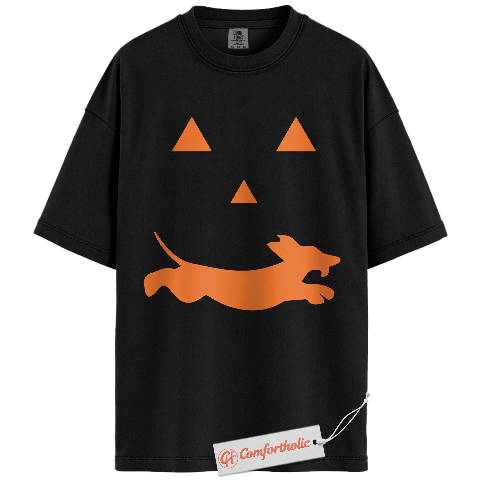 Halloween Dachshund Shirt, Funny Pumpkin Face Dog T-Shirt, Spooky Fall Graphic Tee, Cute Wiener Dog Costume Comfort Colors Shirt