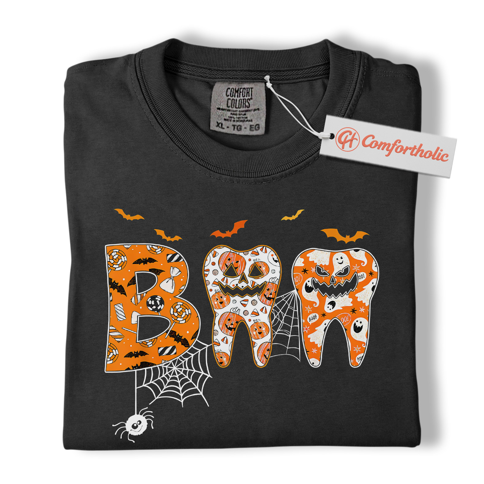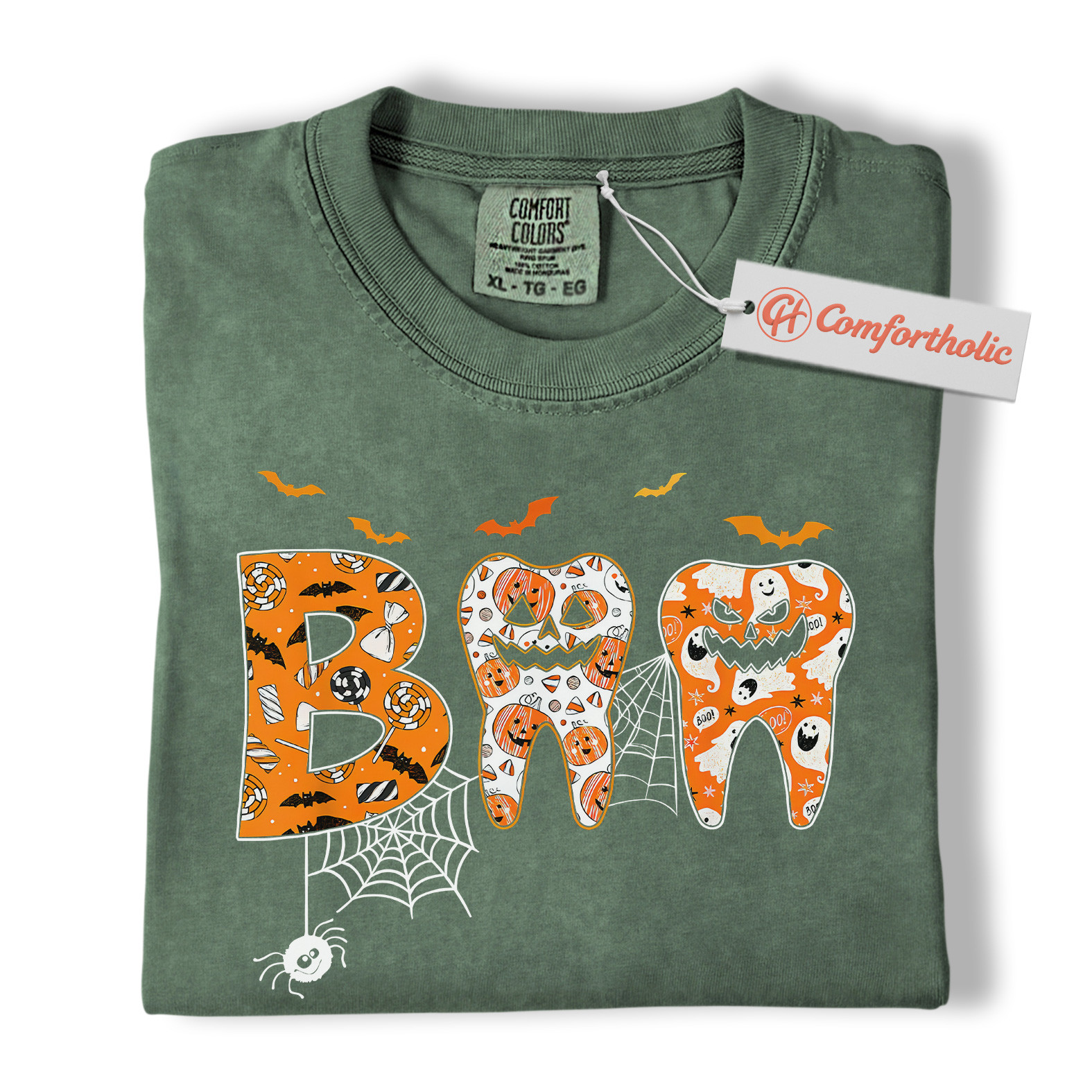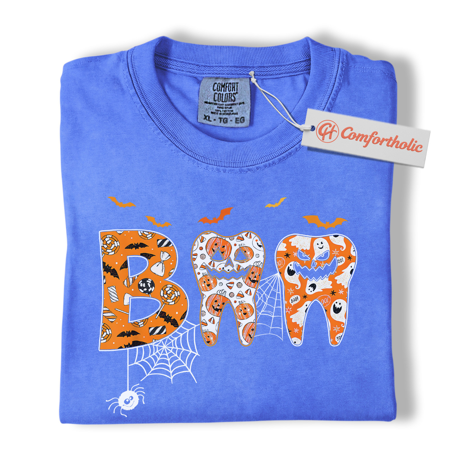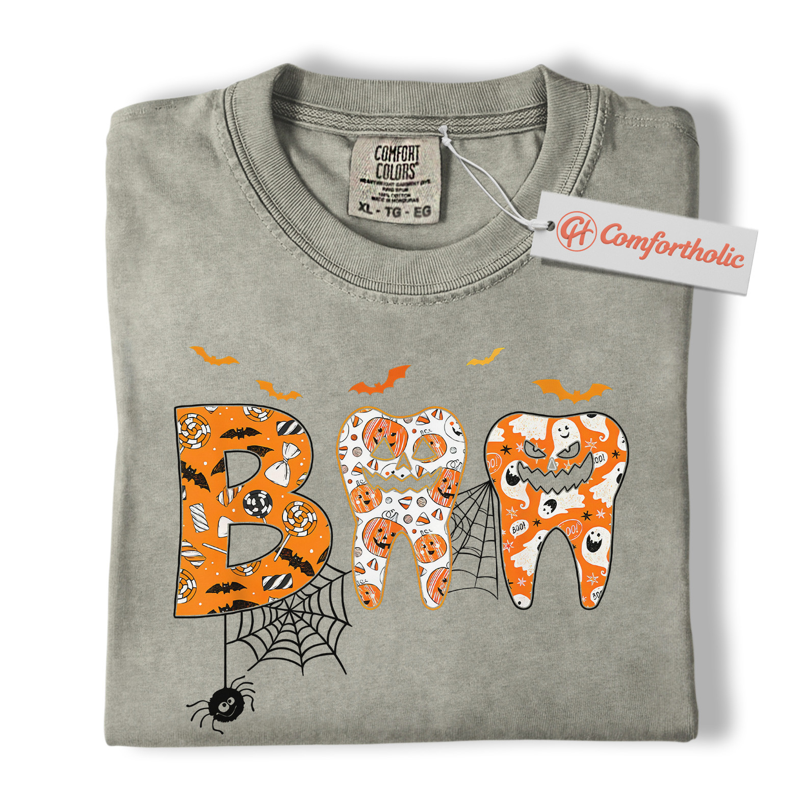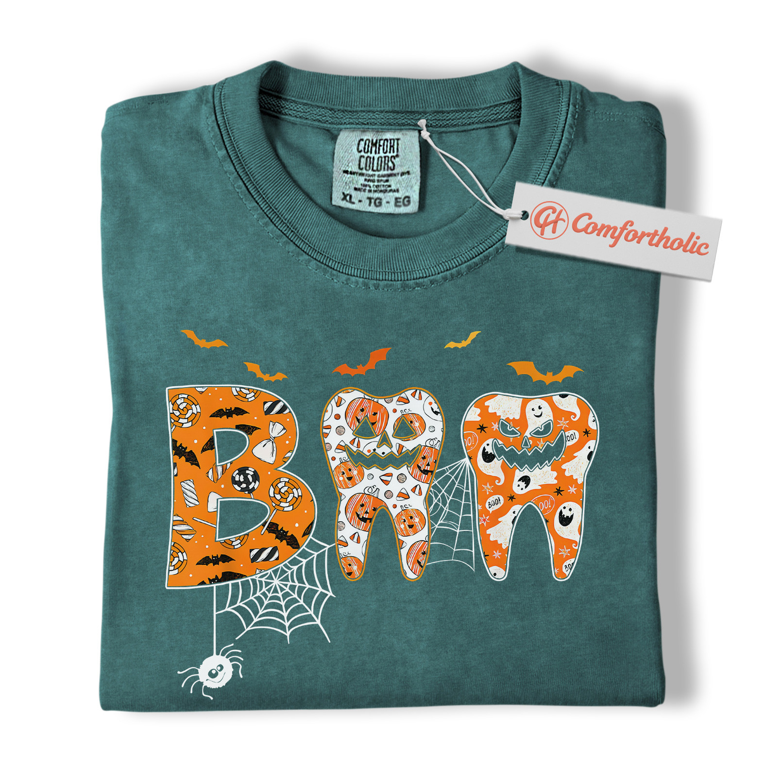 Halloween Dentist Shirt, Funny Boo Teeth T-Shirt, Cute Spooky Dental Graphic Tee, Fall Gift for Dental Hygienists & Orthodontists, Dental Comfort Colors Shirt