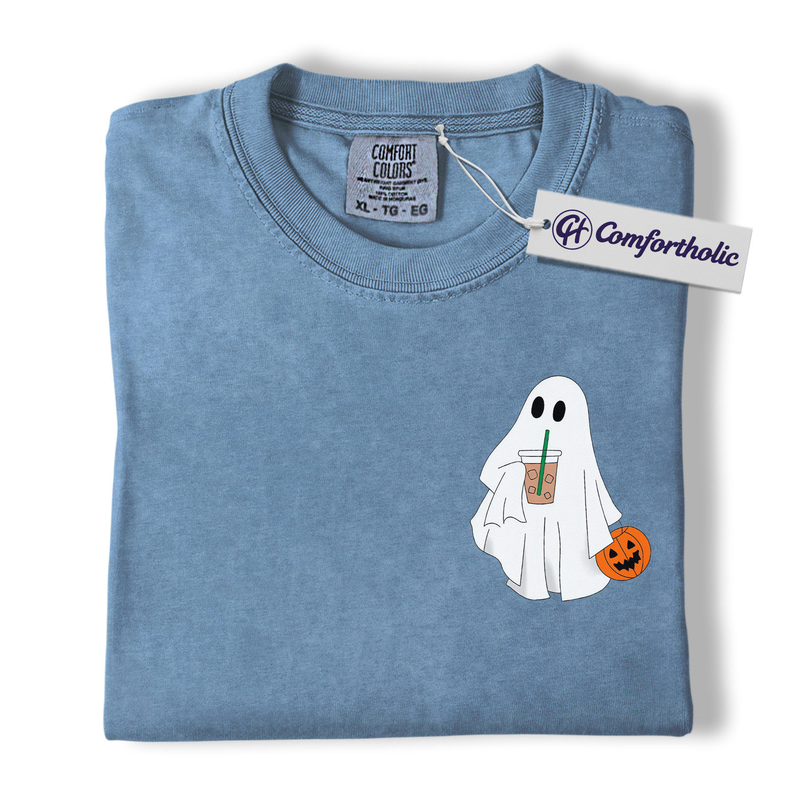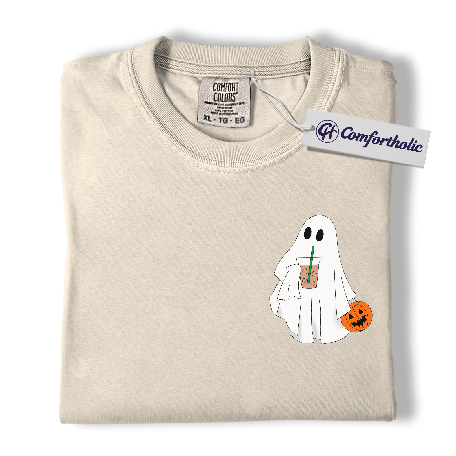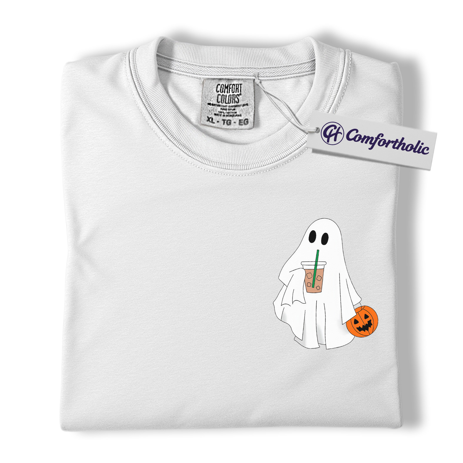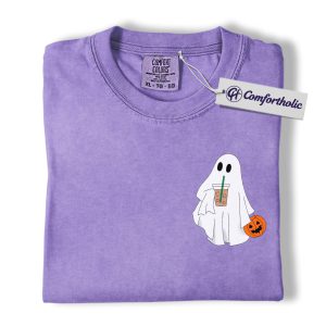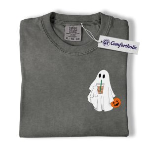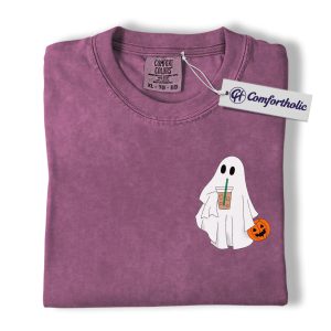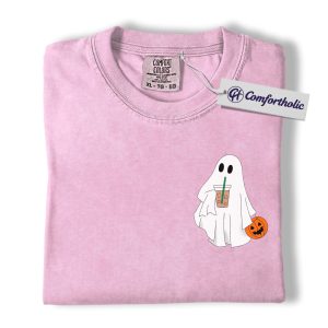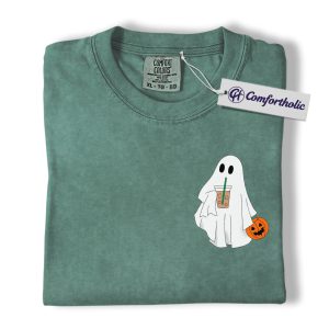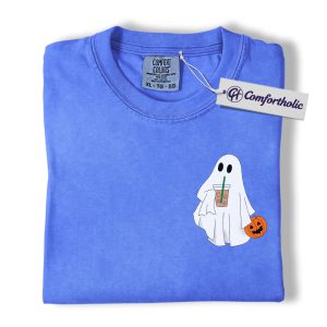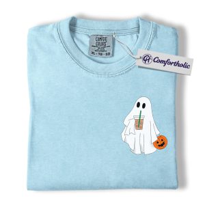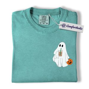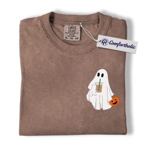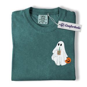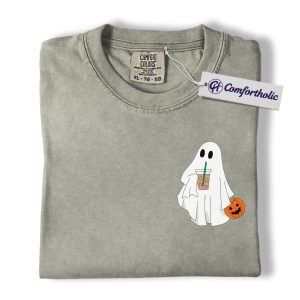 Halloween Ghost Coffee Shirt, Cute Spooky Pumpkin T-Shirt, Fall Aesthetic Graphic Tee, Funny Autumn Outfit for Women, Halloween Comfort Colors Shirt