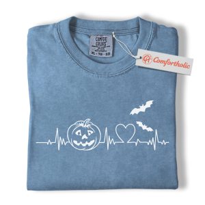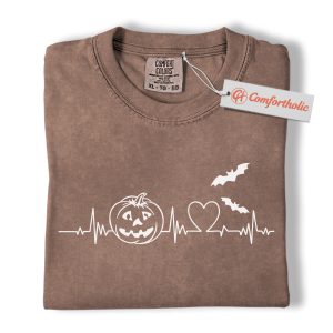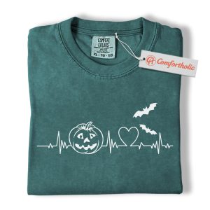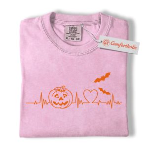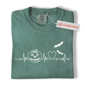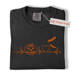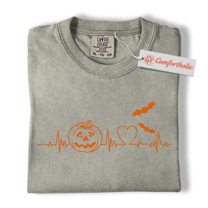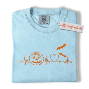 Halloween Heartbeat Shirt, Pumpkin Jack O’Lantern T-Shirt, Spooky ECG Graphic Tee, Cute Halloween Gift for Nurses & Fall Lovers, Medical Comfort Colors Shirt