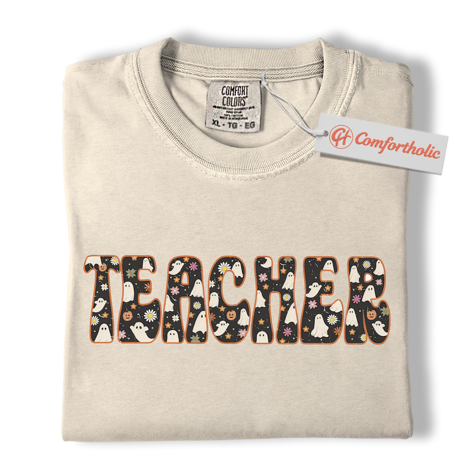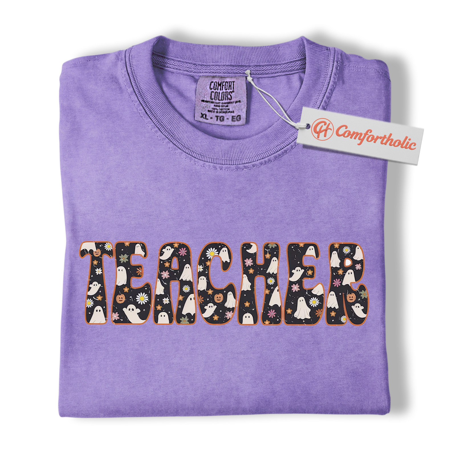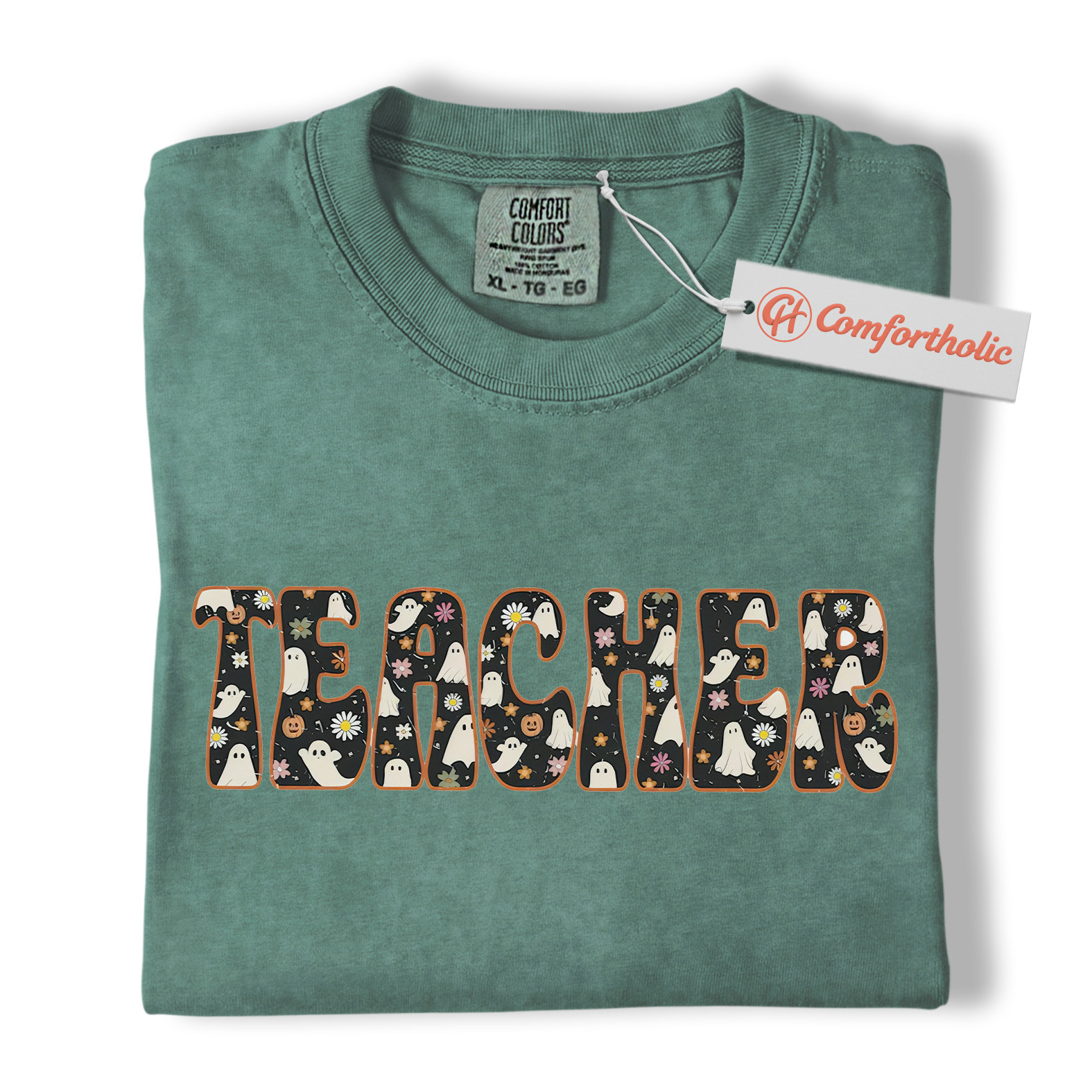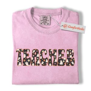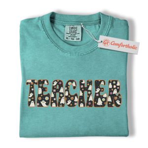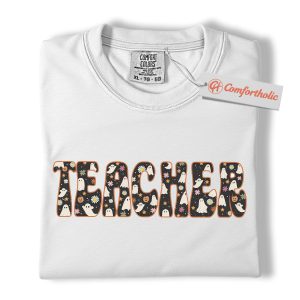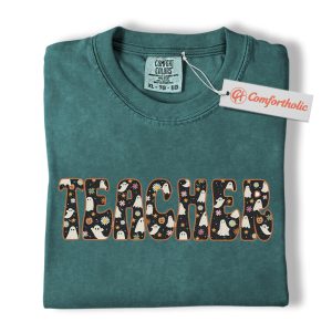 Halloween Teacher Shirt, Cute Ghost Floral T-Shirt, Spooky Fall Classroom Graphic Tee, Fun October Gift for Educators, Teacher Comfort Colors Shirt