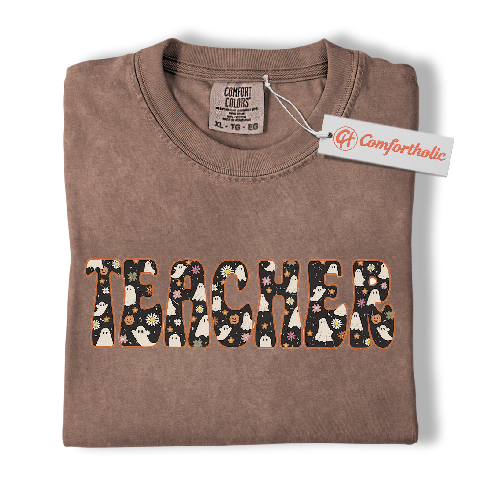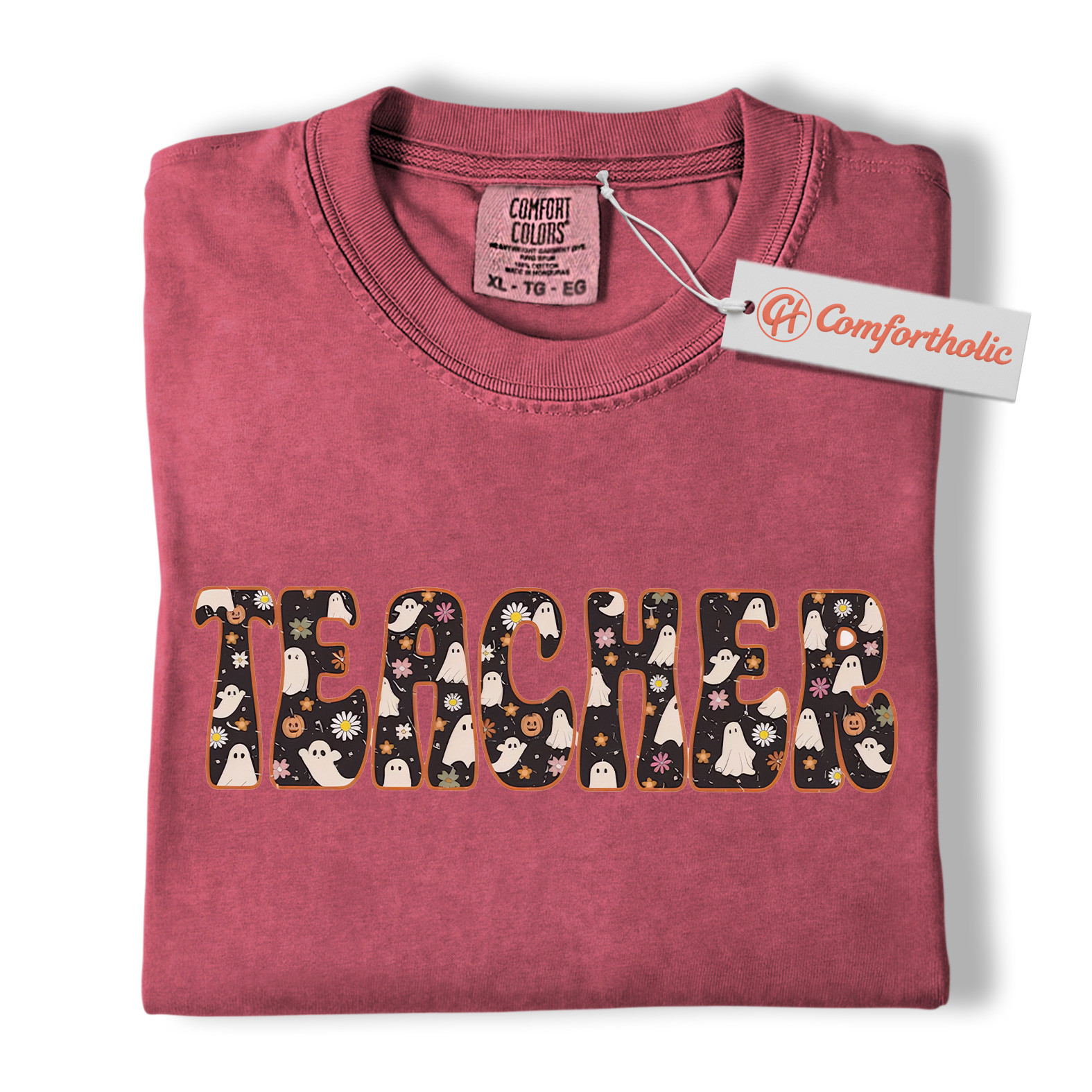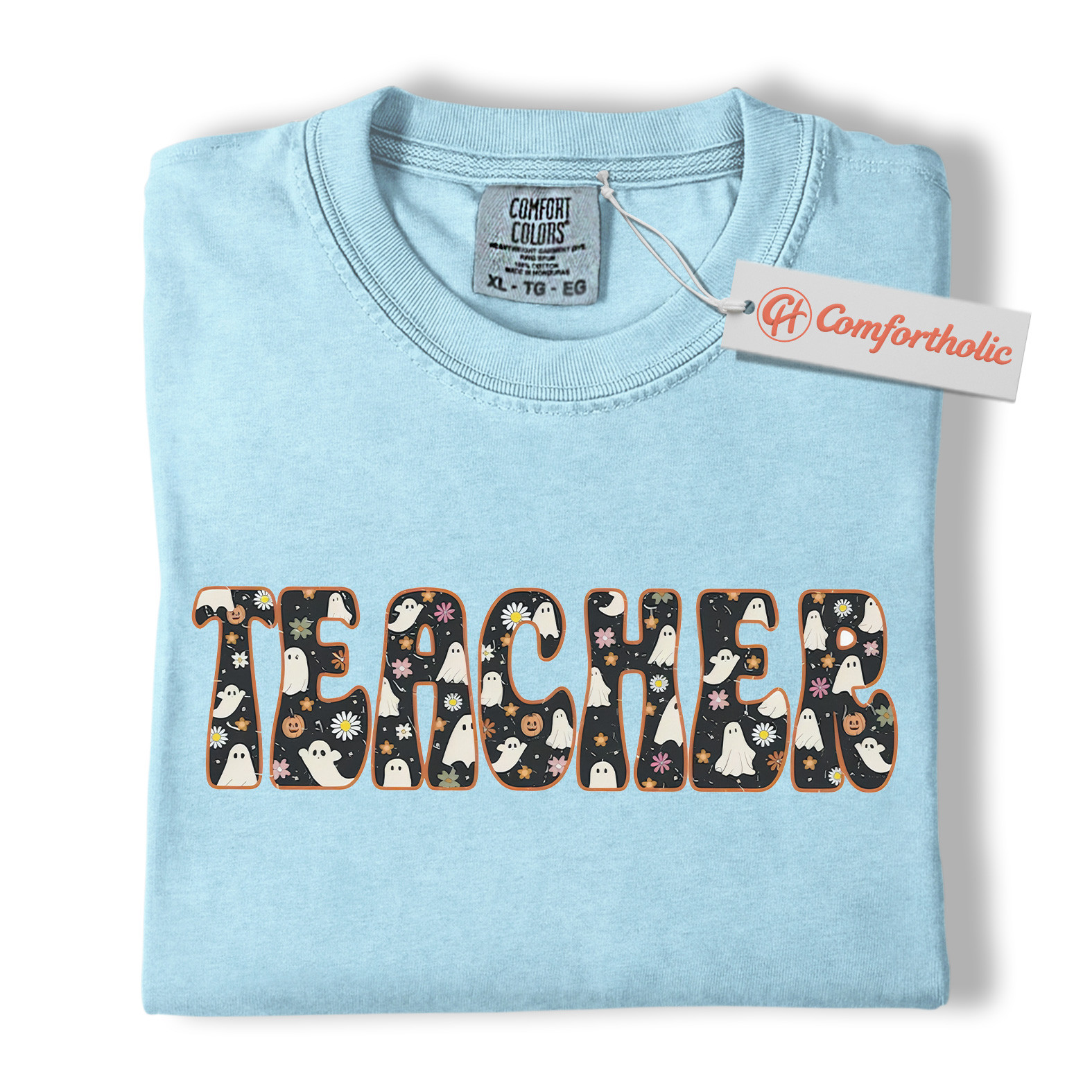 Halloween Teacher Shirt, Cute Ghost Floral T-Shirt, Spooky Fall Classroom Graphic Tee, Fun October Gift for Educators, Teacher Comfort Colors Shirt