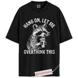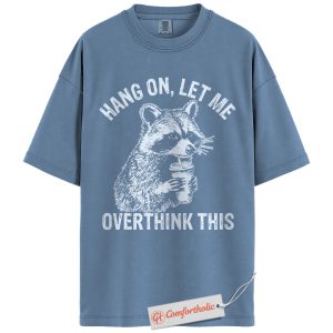 Hang On Let Me Overthink This Shirt, Funny Raccoon Coffee Shirt, Anxiety Humor Tee, Overthinking Meme T-Shirt, Sarcastic Comfort Colors Shirt