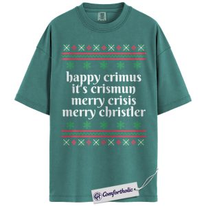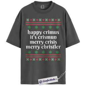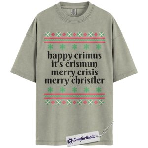 Happy Crimus Christmas Shirt, Merry Crisis Meme T-Shirt, Funny Holiday Quote Graphic Tee, Christmas Comfort Colors Shirt