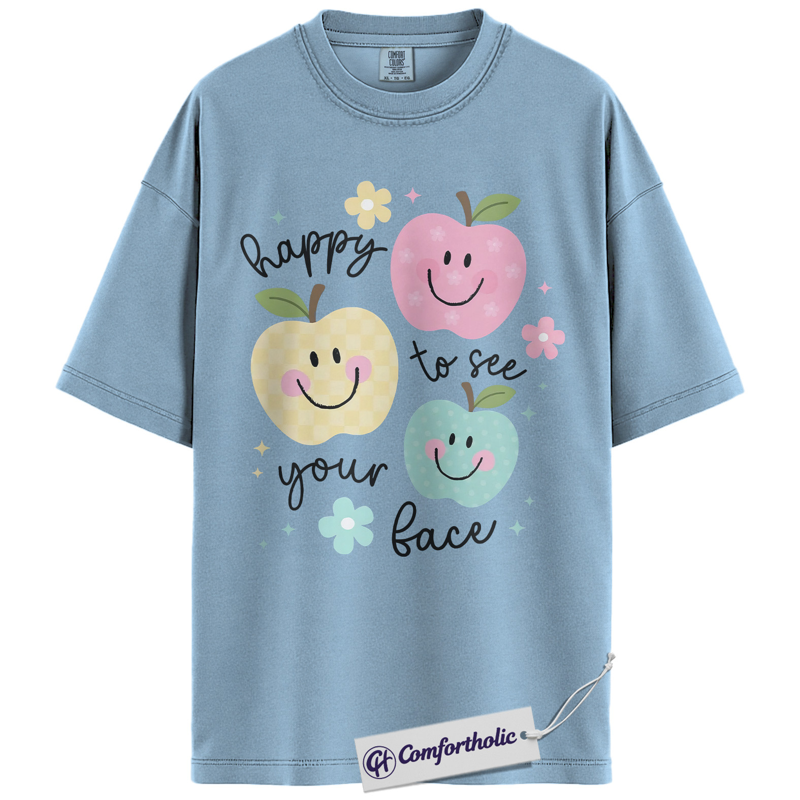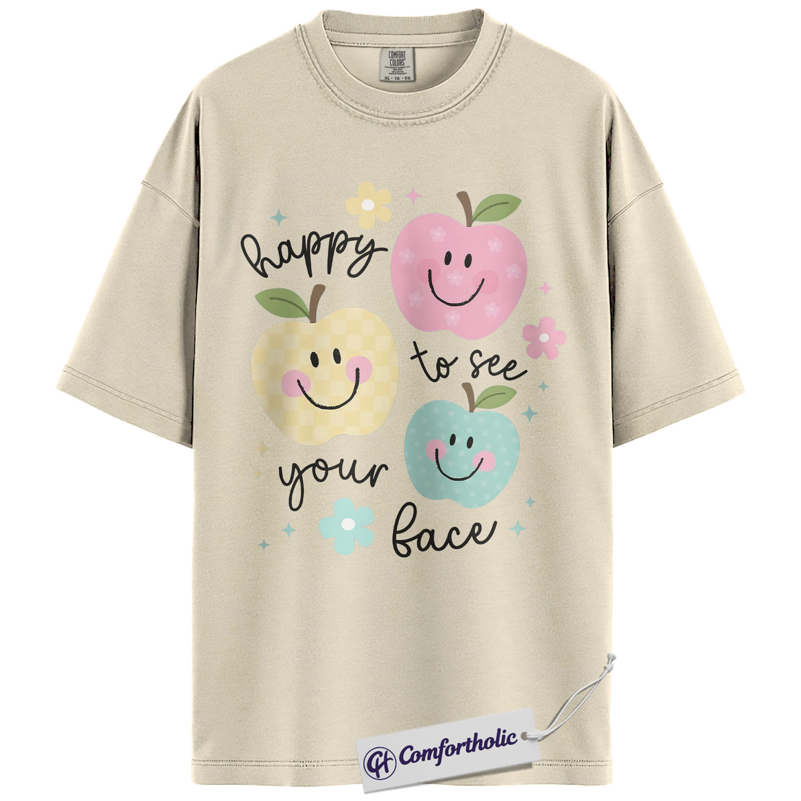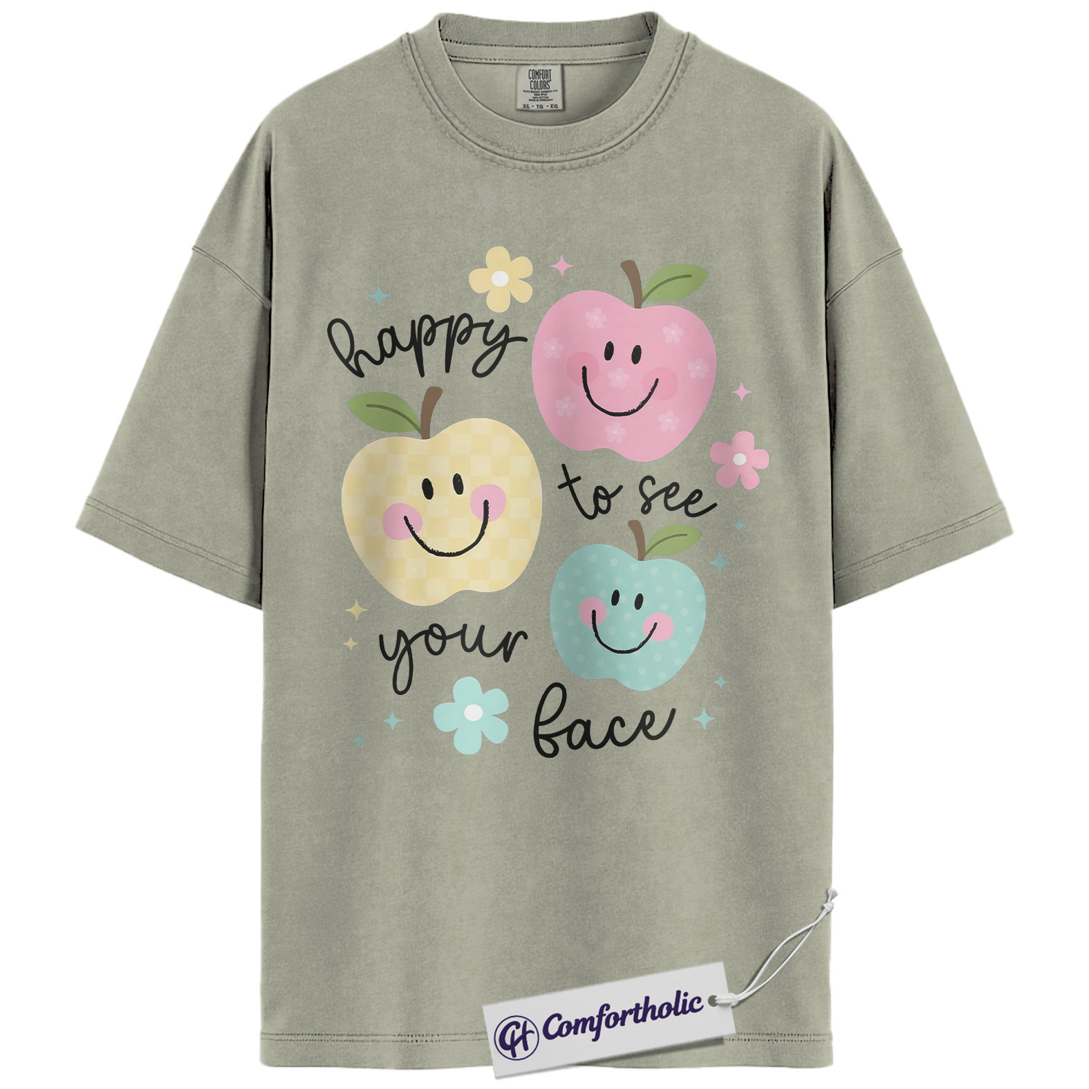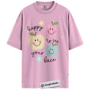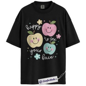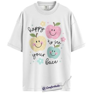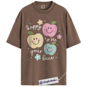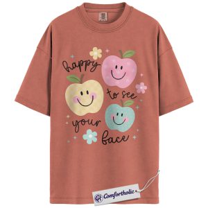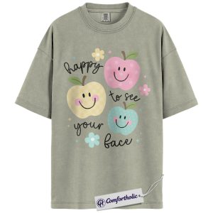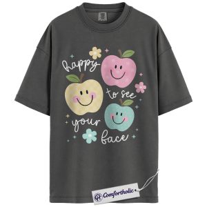 Happy to See Your Face Shirt, Cute Smiley Apple T-Shirt, Positive Teacher Appreciation Tee, Kindness Classroom Graphic Gift, Comfort Colors Shirt