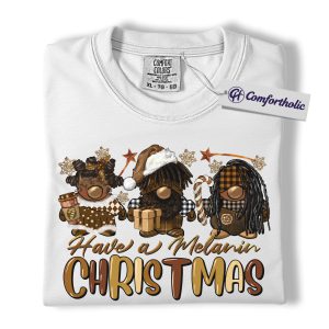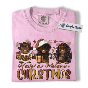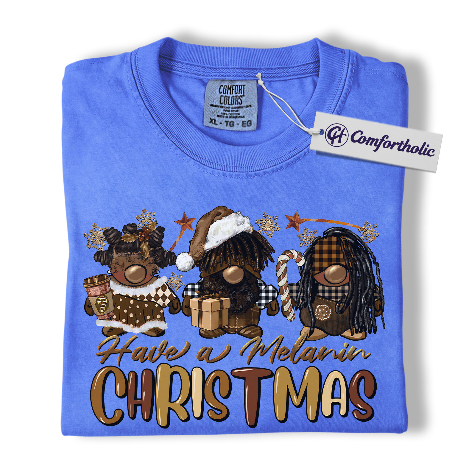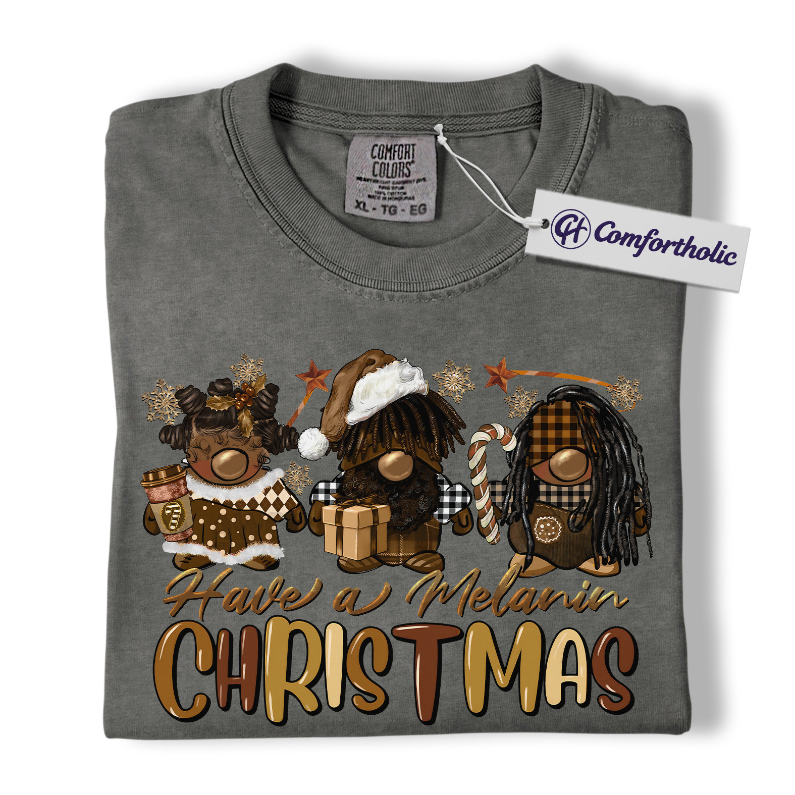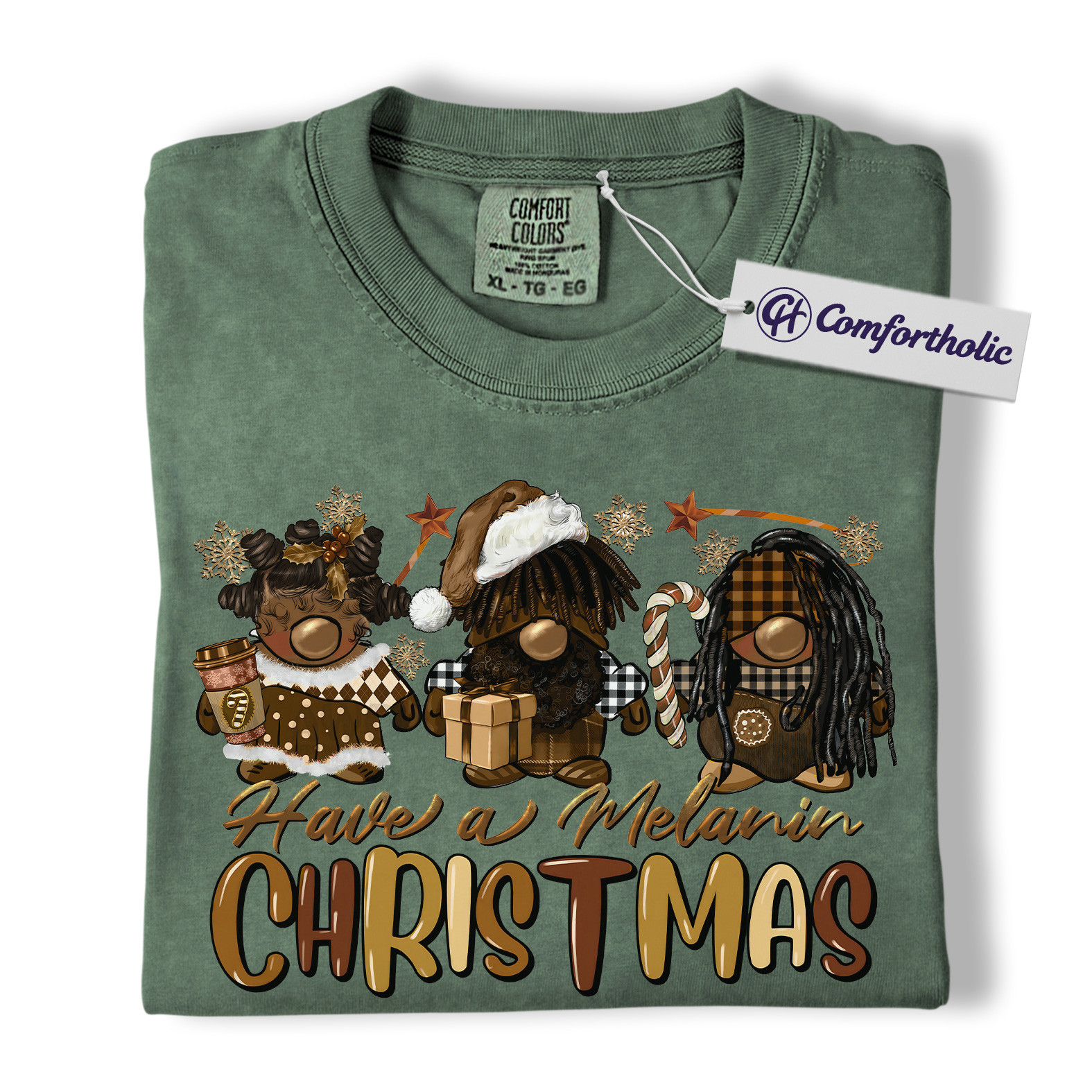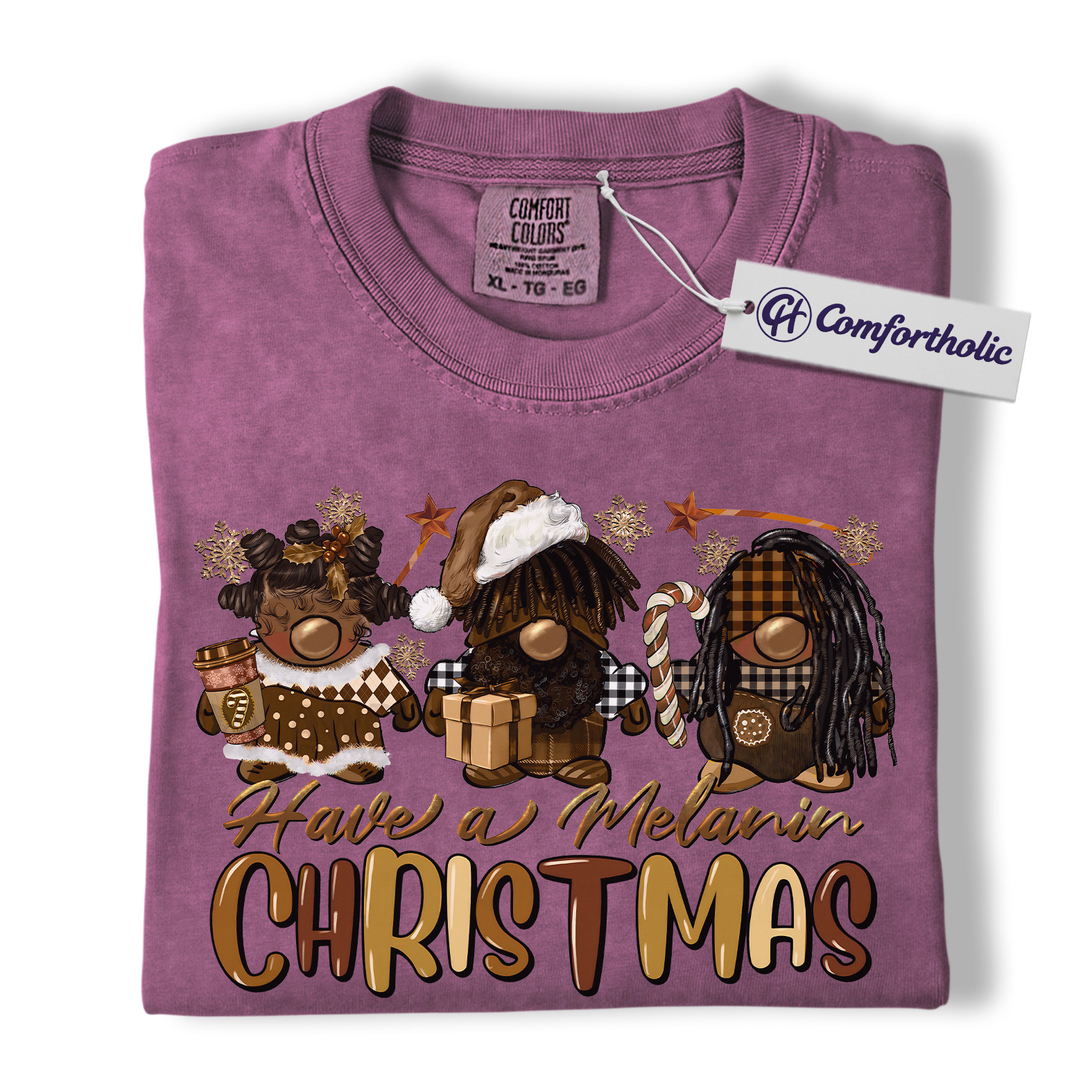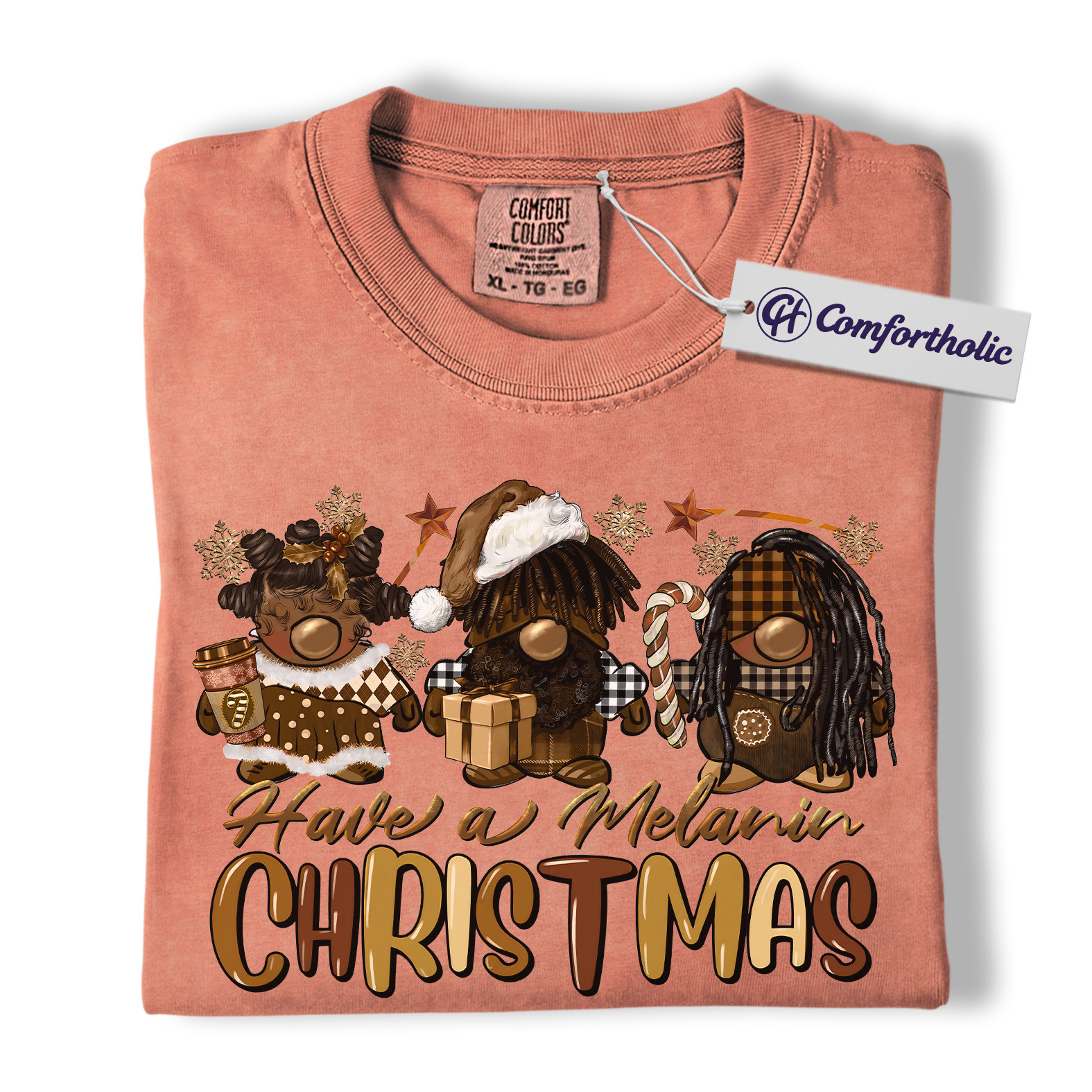 Have a Melanin Christmas Shirt, Black Gnome Holiday T-Shirt, Inclusive Festive Graphic Tee, Cultural Christmas Gift for Women, Christmas Comfort Colors Shirt
