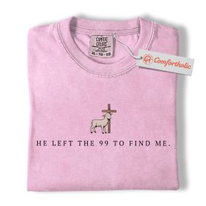 He Left the 99 to Find Me Shirt, Christian Bible Verse T-Shirt, Lost Sheep and Cross Graphic Tee, Religious Gift, Faith Comfort Colors Shirt