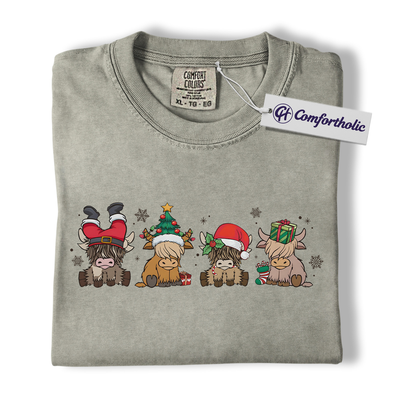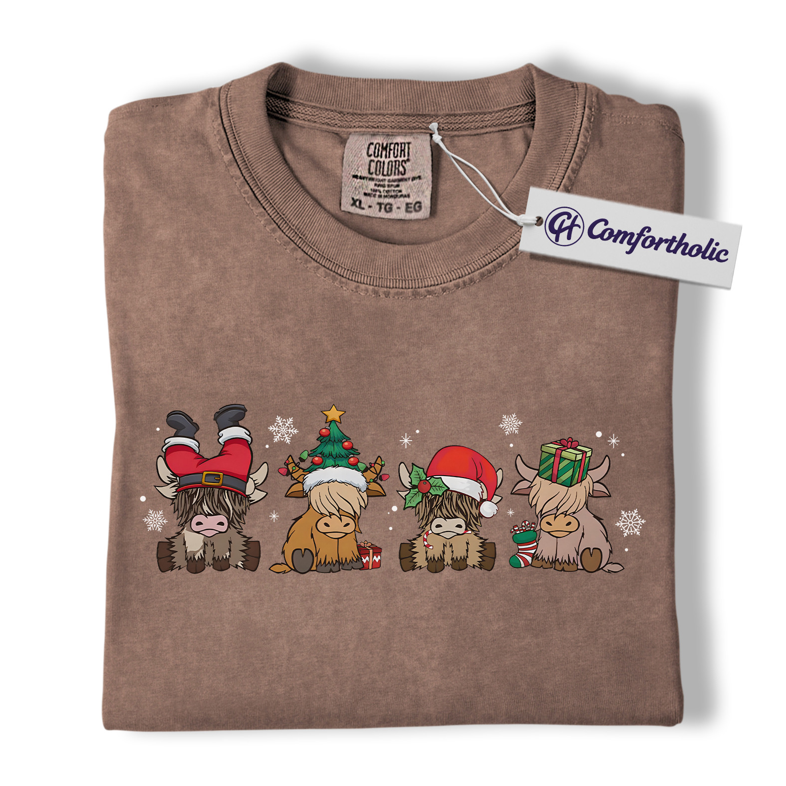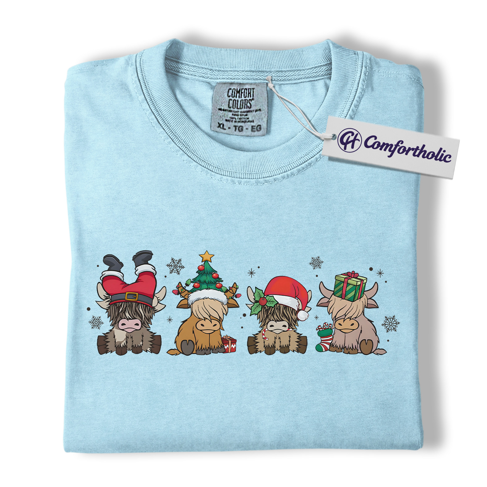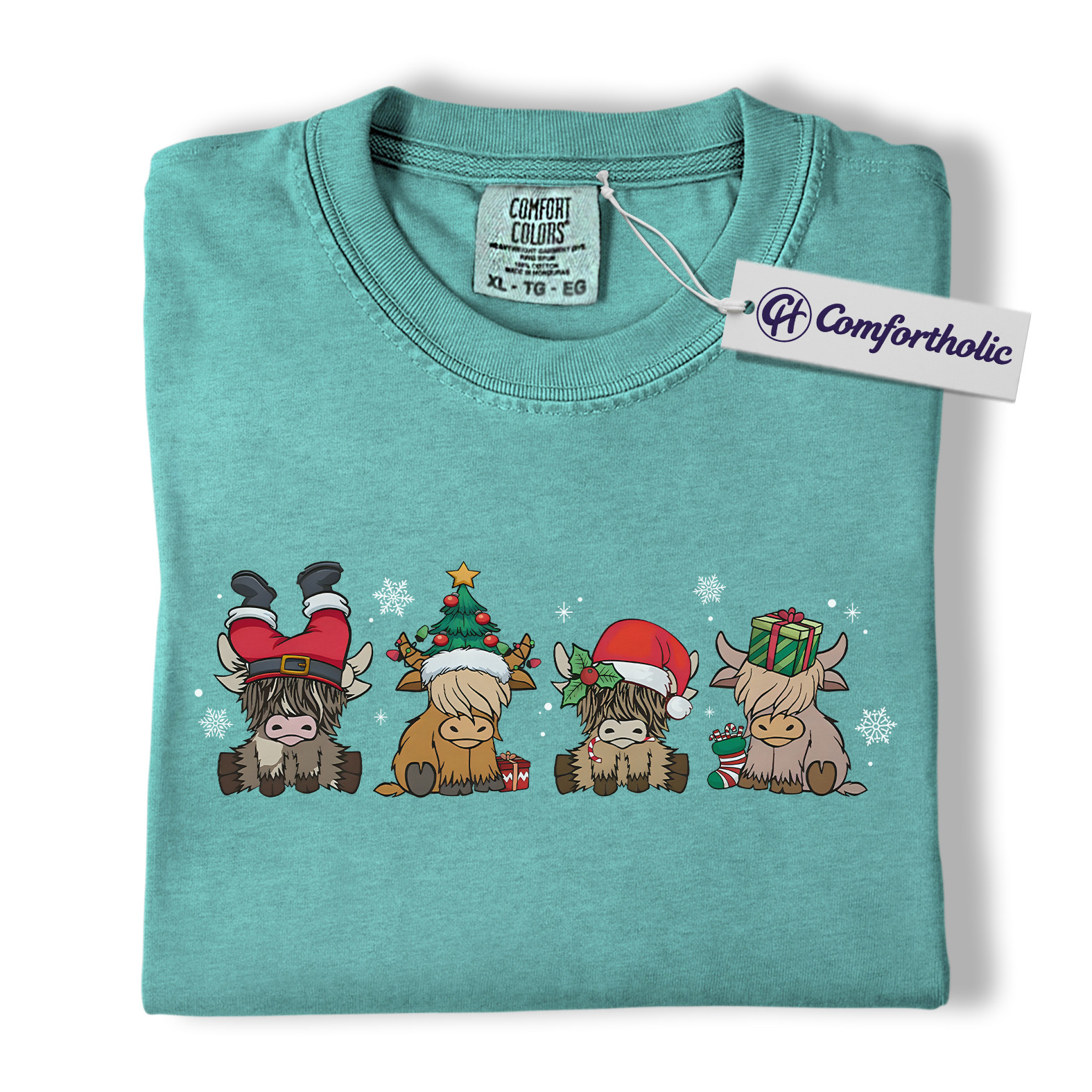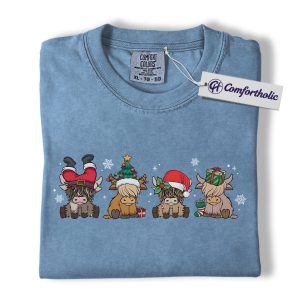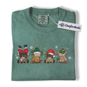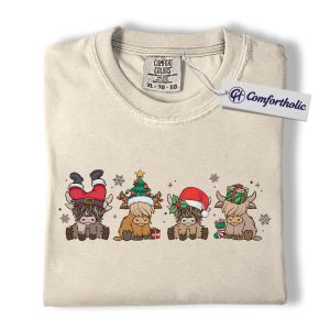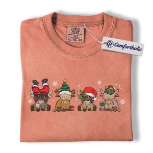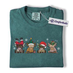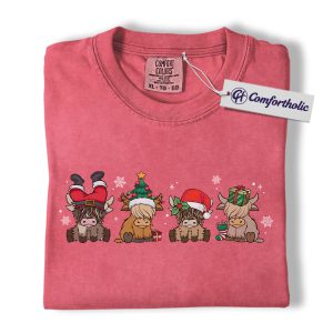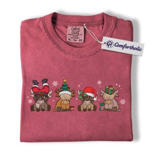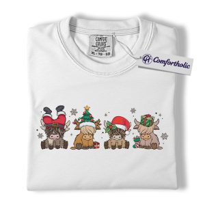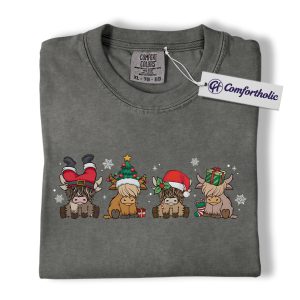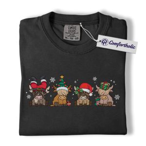 Highland Cow Christmas Shirt, Cute Holiday Cow T-Shirt, Funny Santa Hat Graphic Tee, Farm Animal Winter Gift, Christmas Comfort Colors Shirt