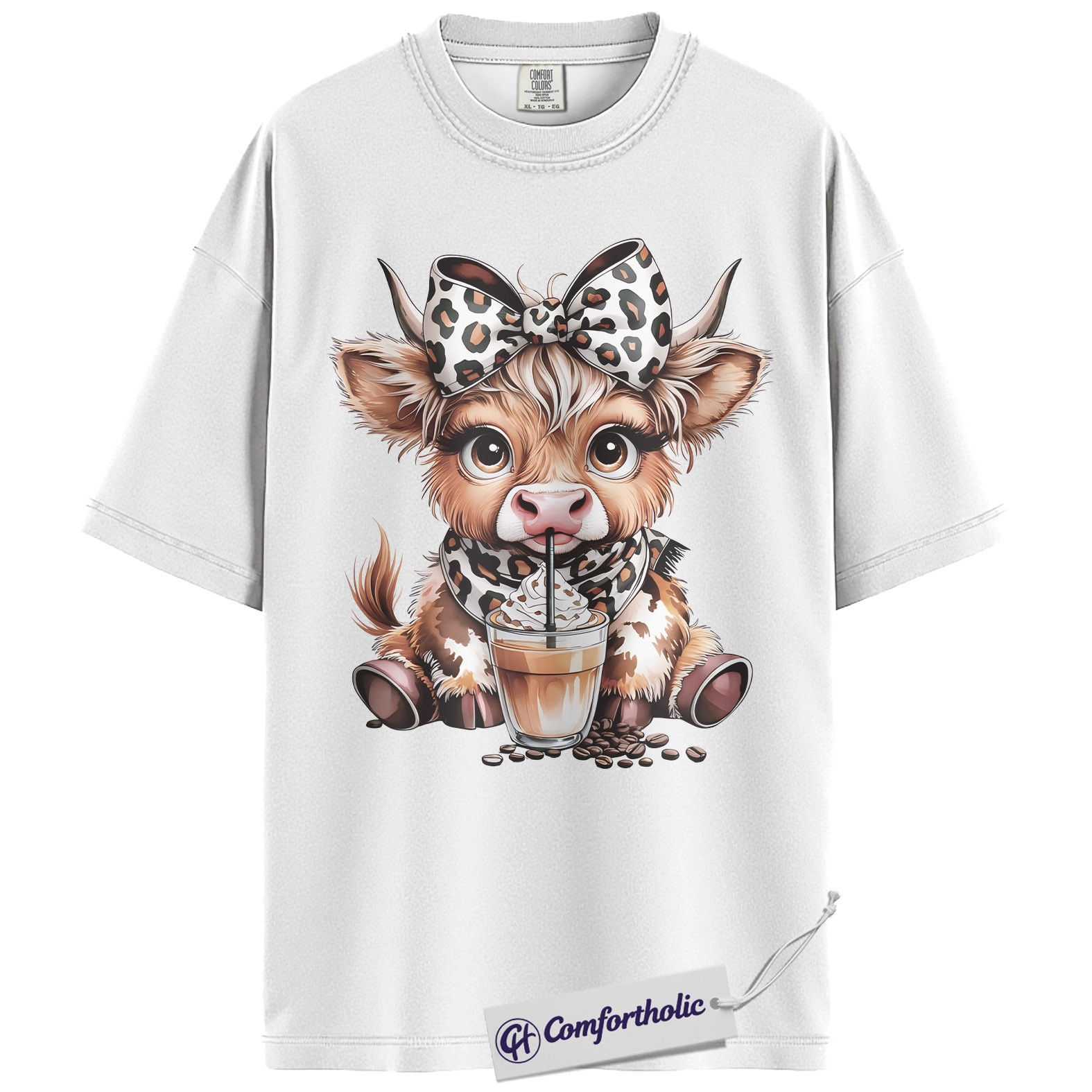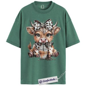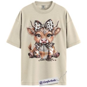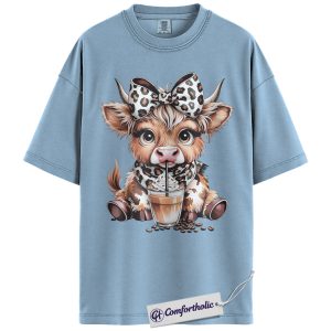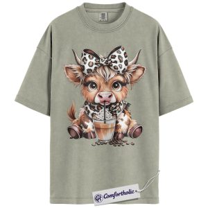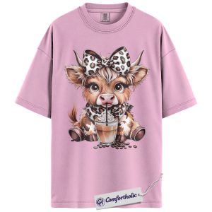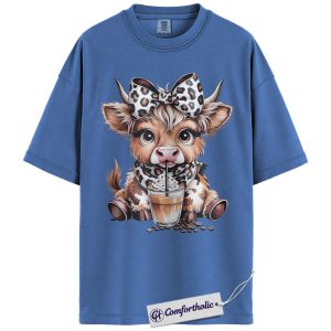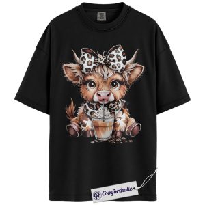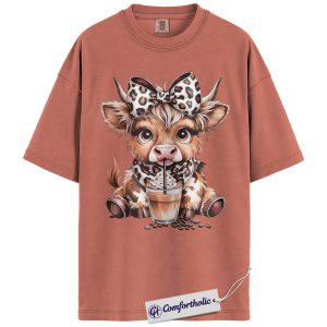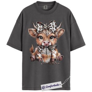 Highland Cow Coffee Shirt, Cute Western Animal Graphic Tee, Cow Lover Iced Coffee T-Shirt, Gift for Farmhouse Cowgirls, Comfort Colors Shirt