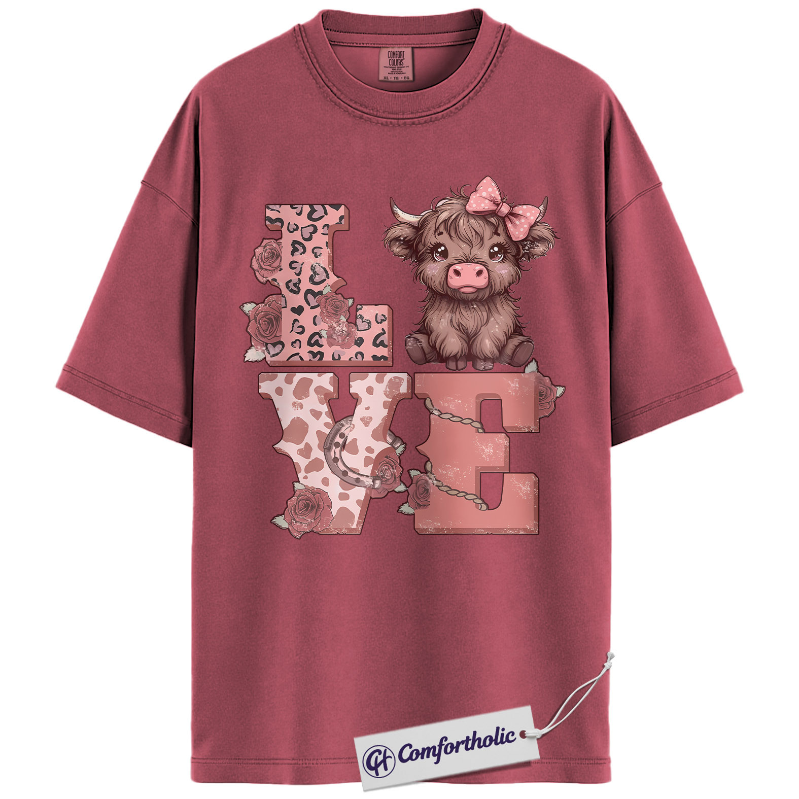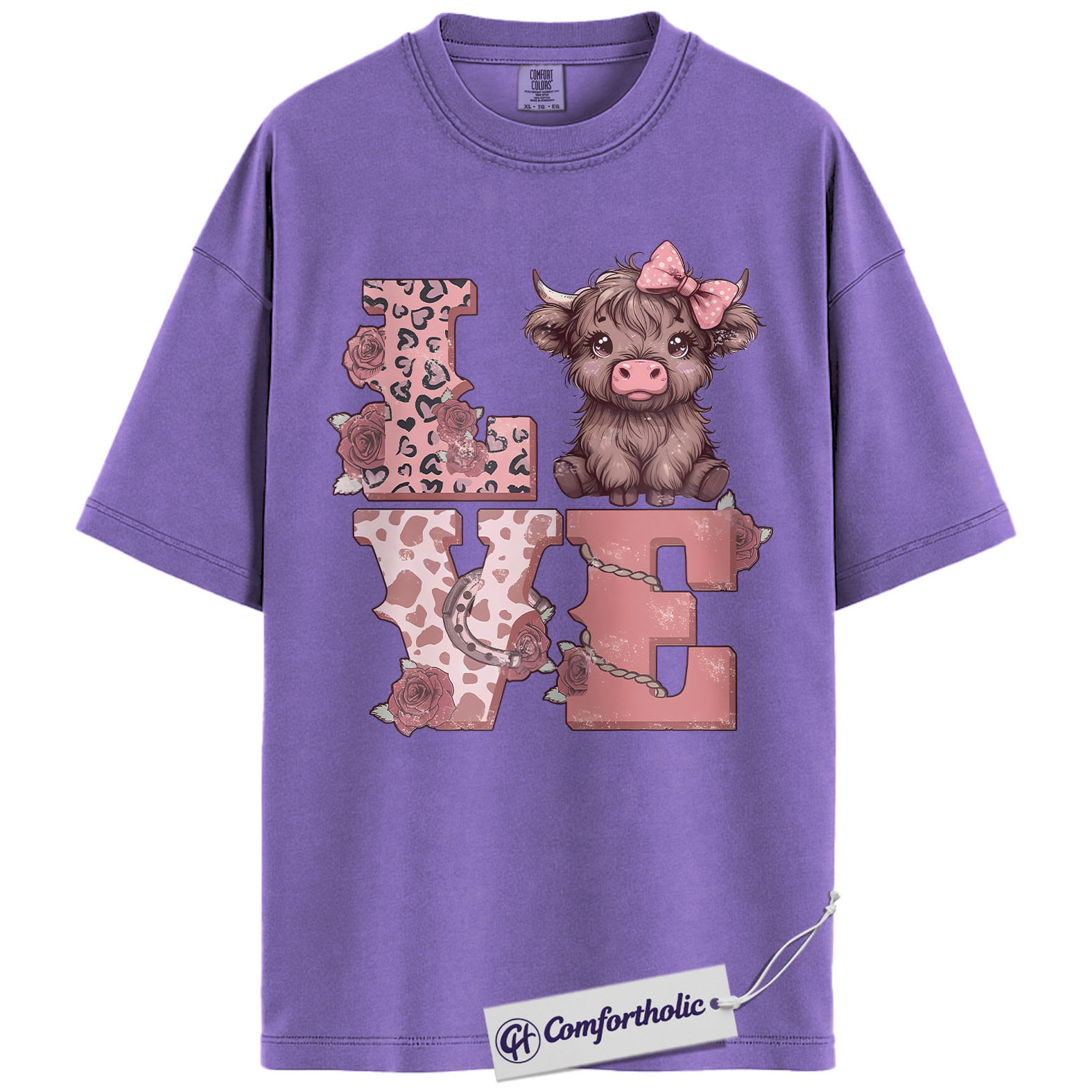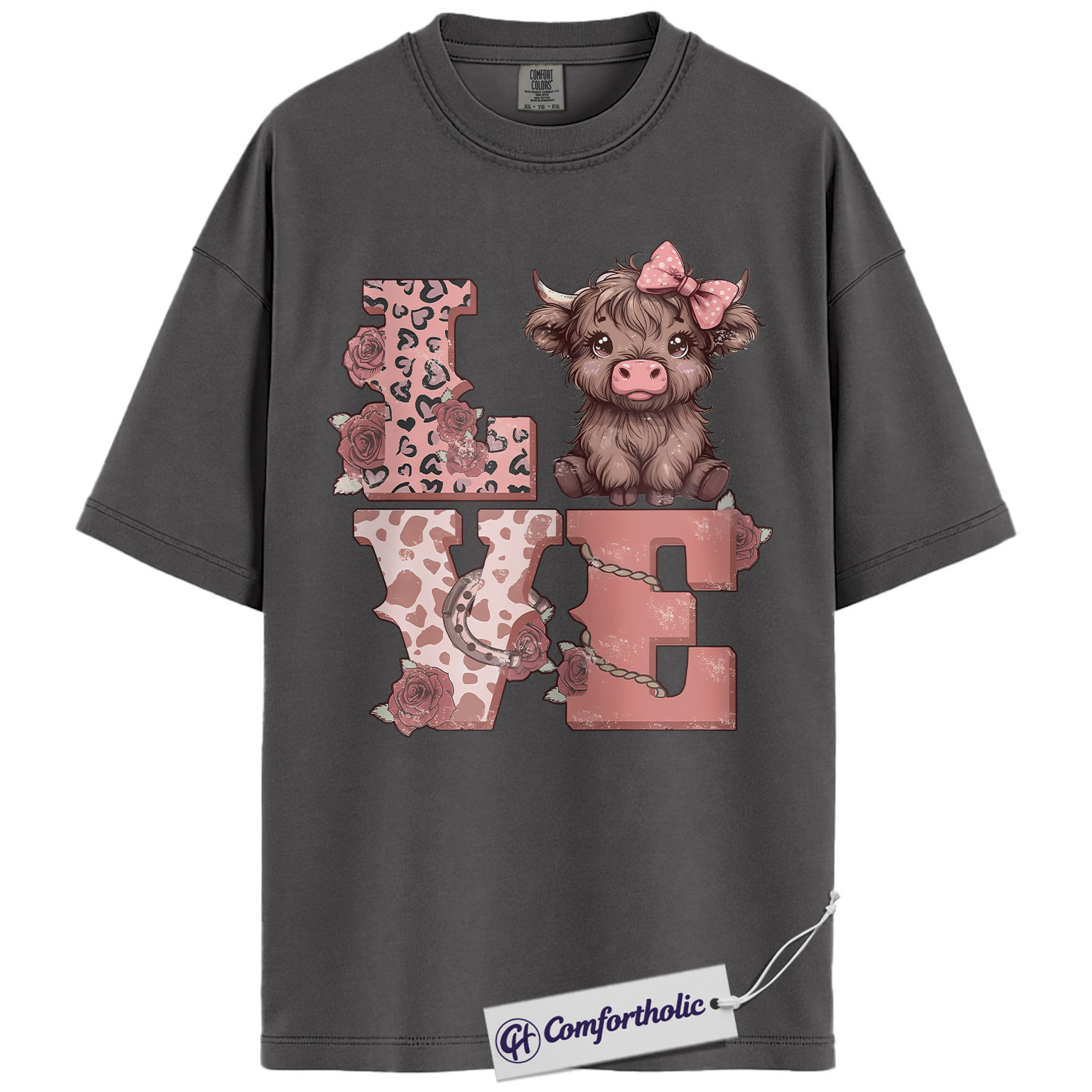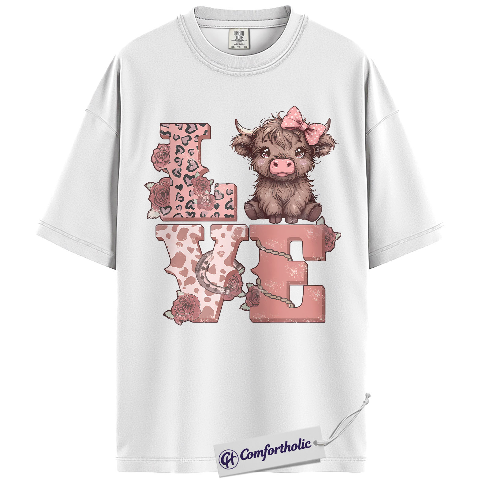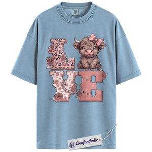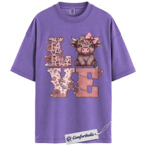 Highland Cow Love Shirt, Cute Valentine Farm Animal Graphic Tee, Western Cowgirl Aesthetic T-Shirt, Sweet Gift for Cow Lovers, Comfort Colors Shirt