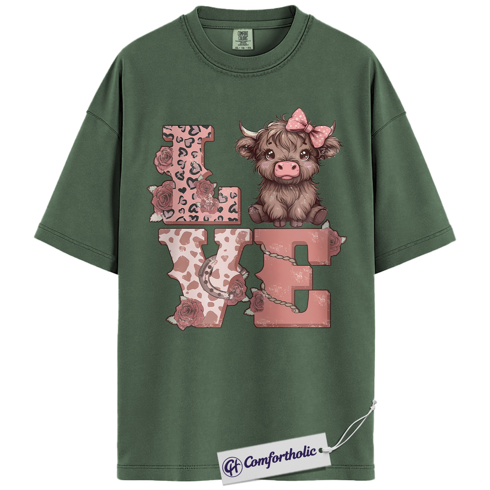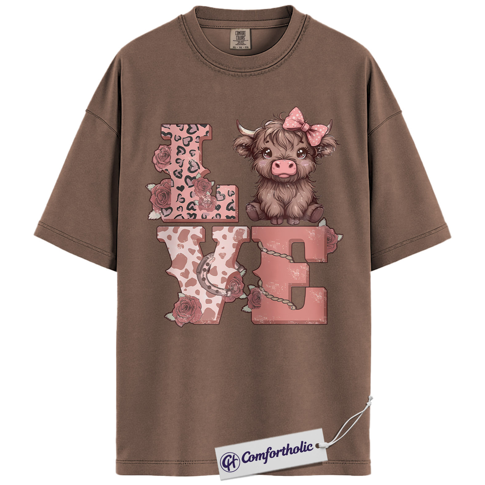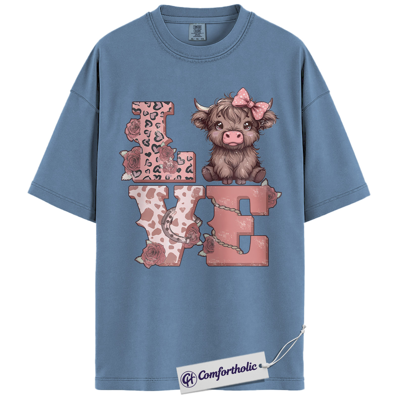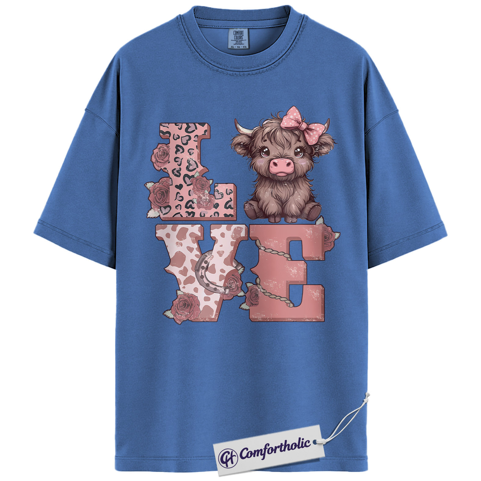Highland Cow Love Shirt, Cute Valentine Farm Animal Graphic Tee, Western Cowgirl Aesthetic T-Shirt, Sweet Gift for Cow Lovers, Comfort Colors Shirt