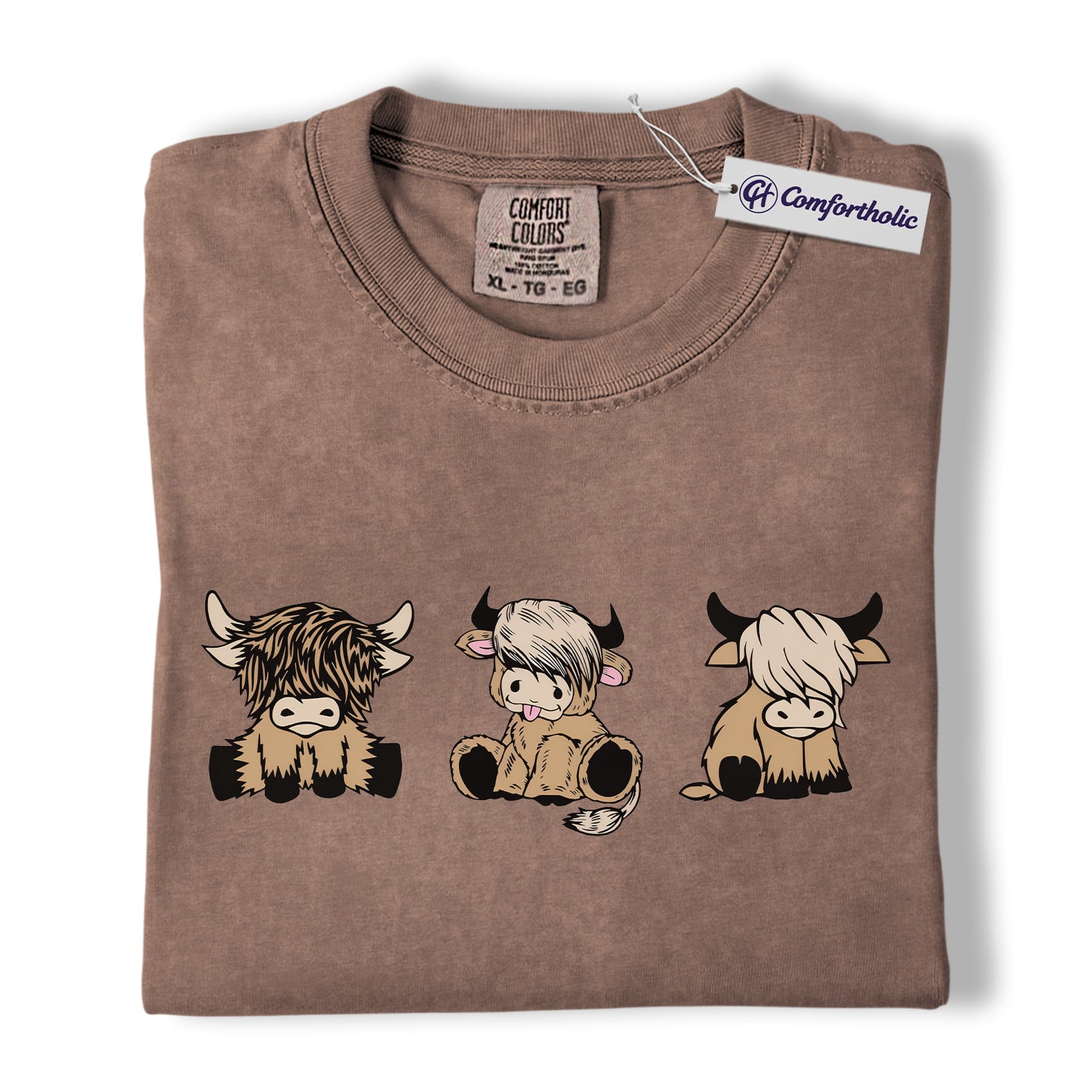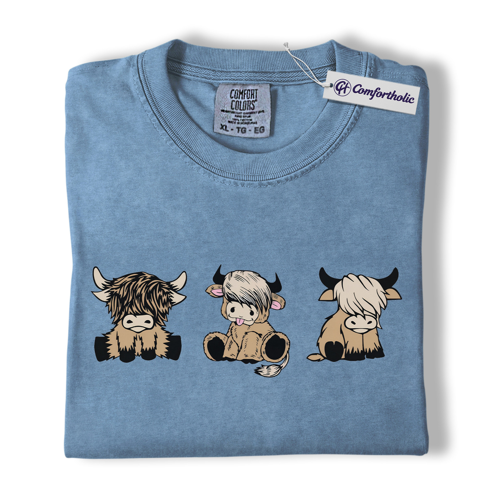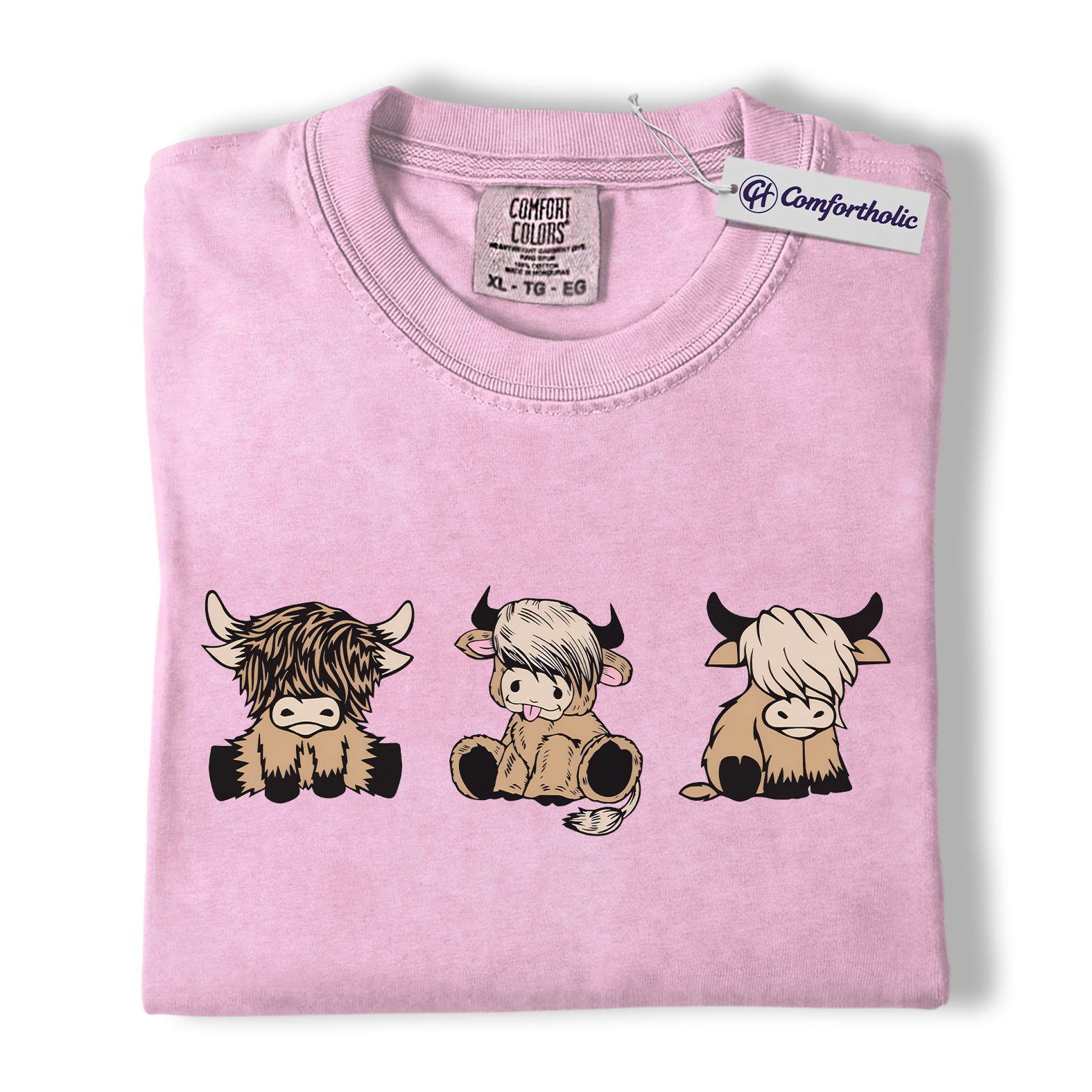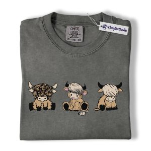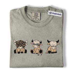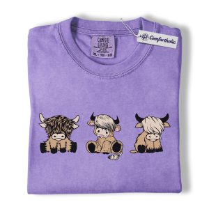 Highland Cow Shirt, Cute Farm Animal Cartoon Graphic Tee, Kawaii Highland Cows T-Shirt for Country Girls, Funny Ranch Lover Gift, Comfort Colors Shirt