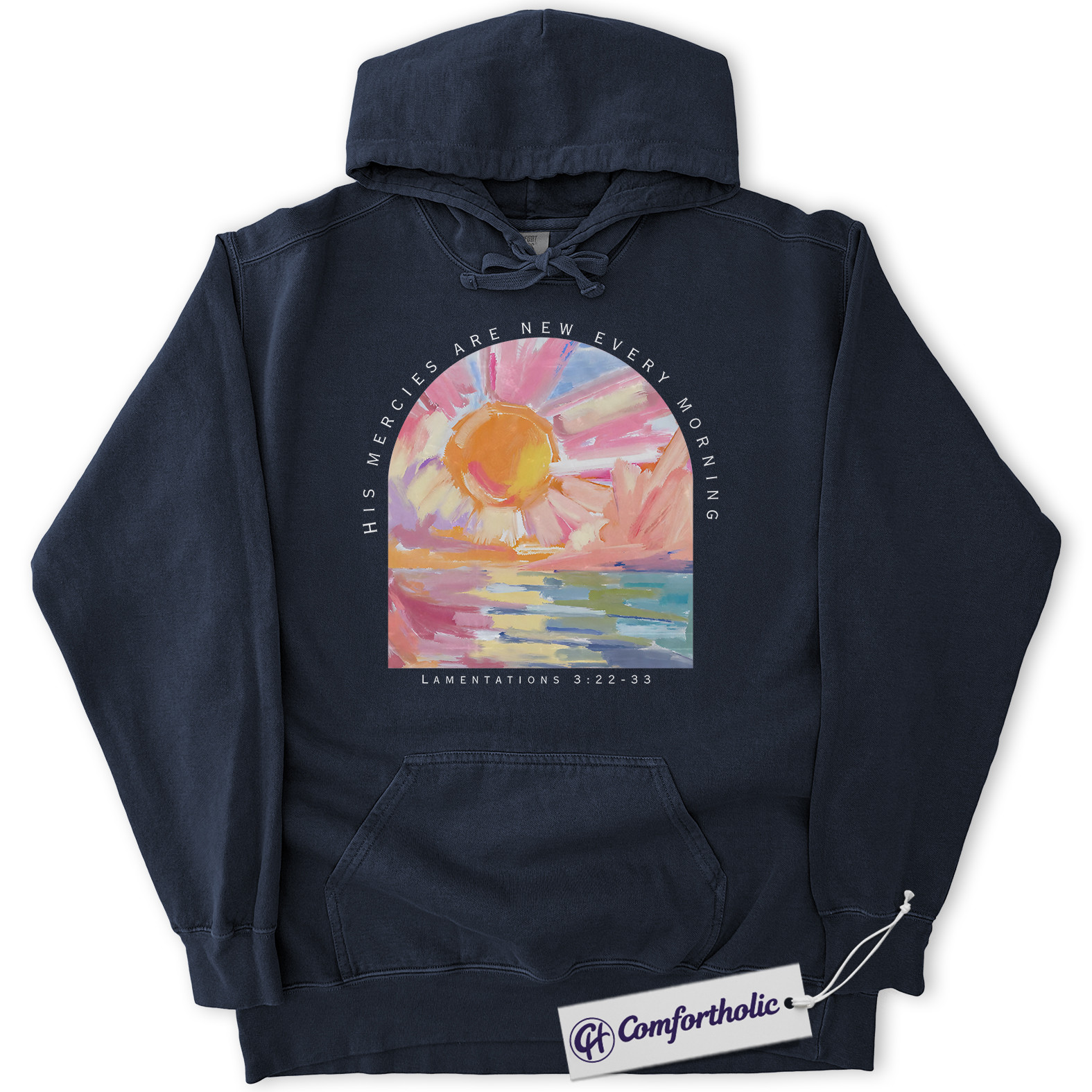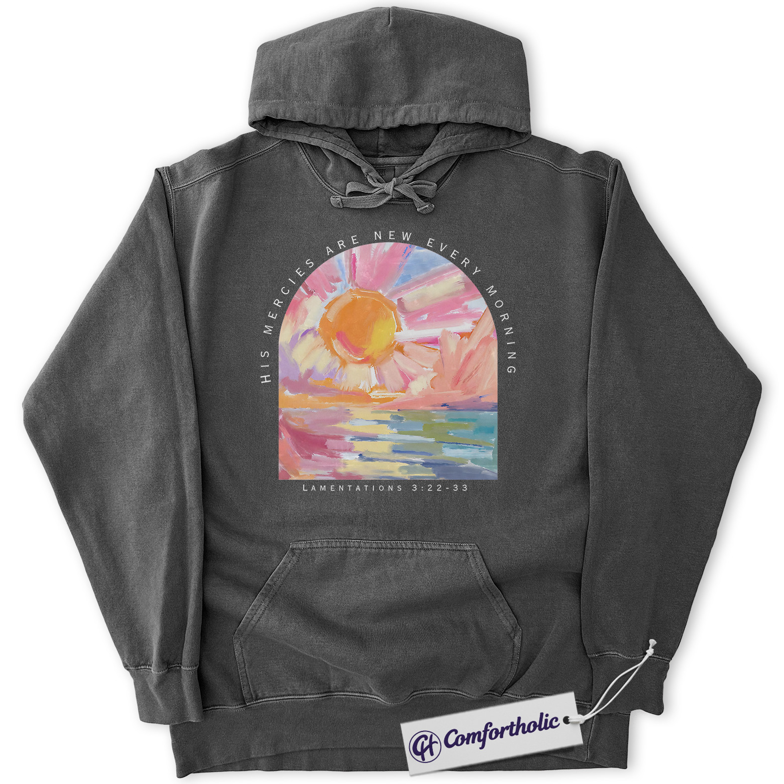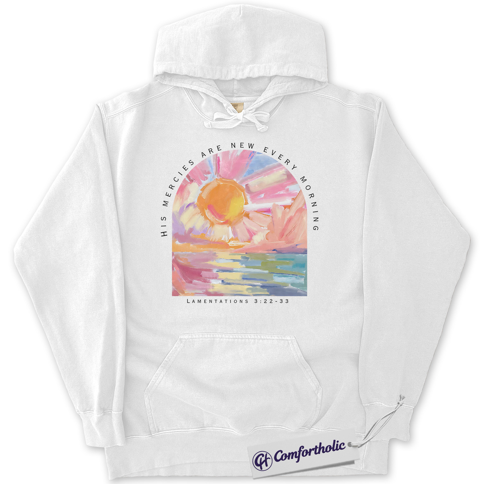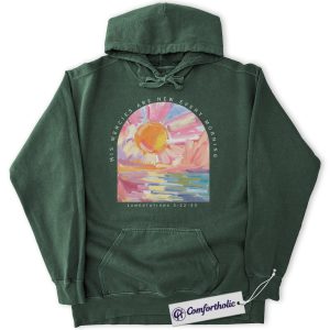 His Mercies Are New Every Morning Hoodie, Lamentations 3:22-33 Bible Verse Hoodie, Sunrise Faith Graphic Pullover, Inspirational Scripture Gift, Christian Comfort Colors Hoodie