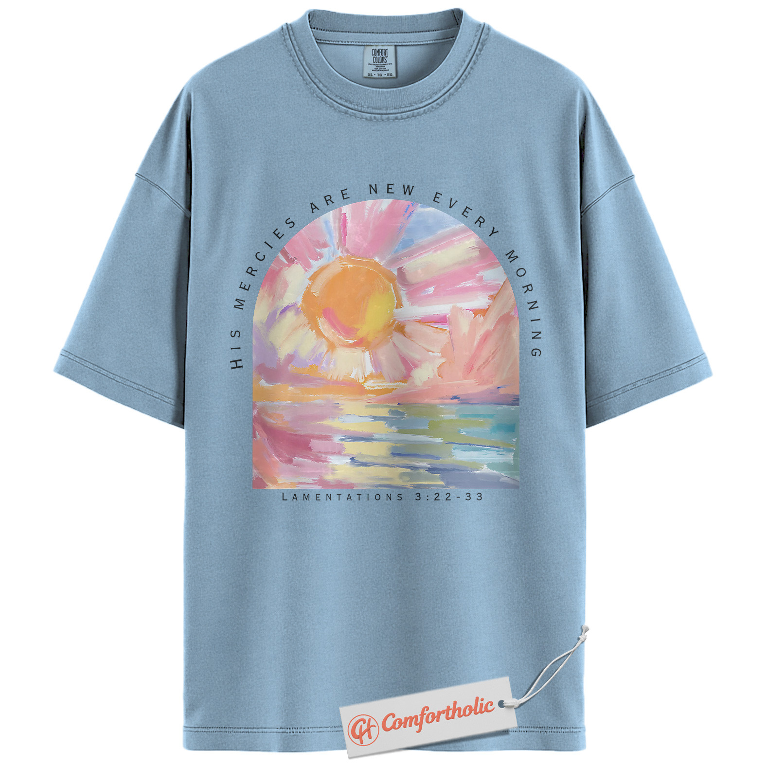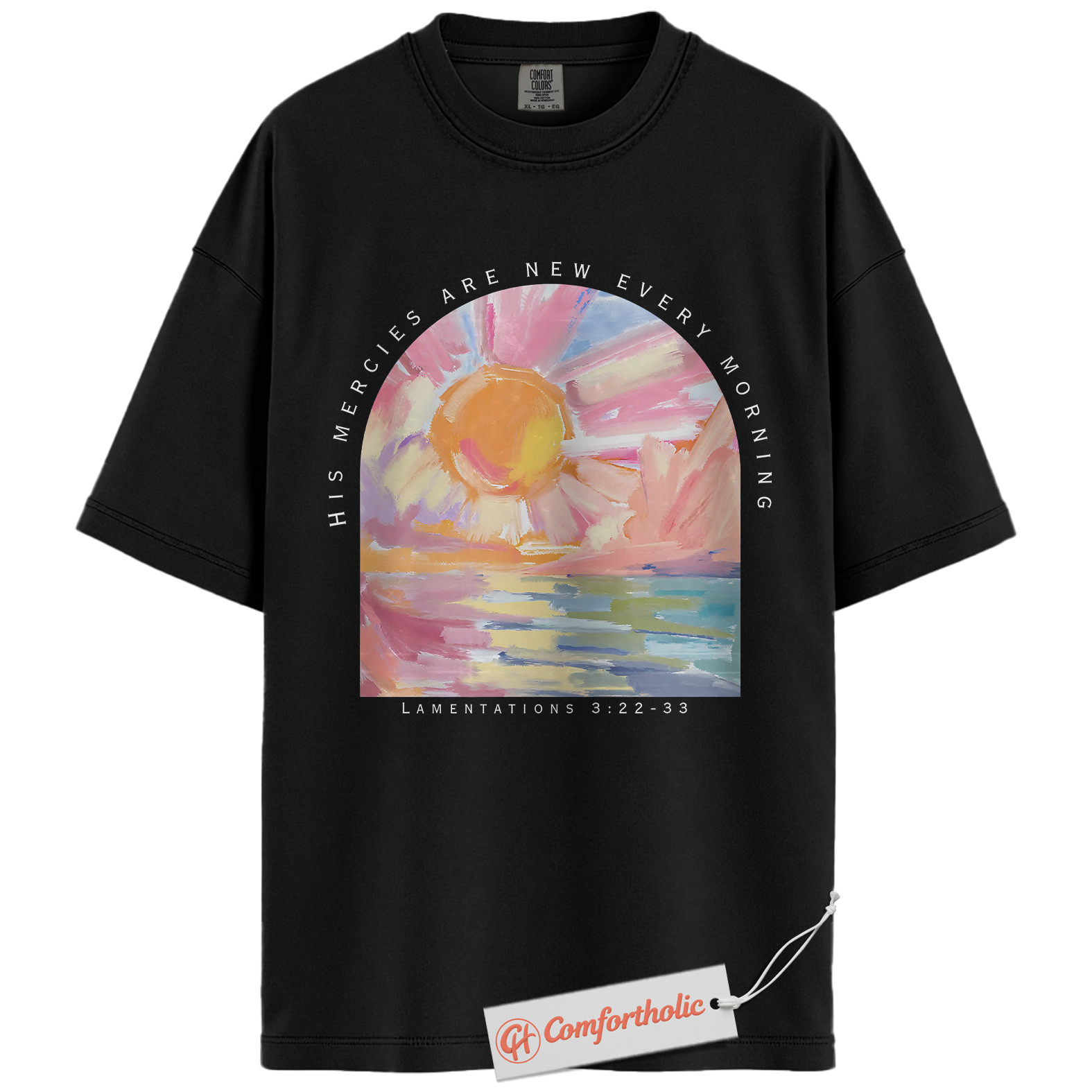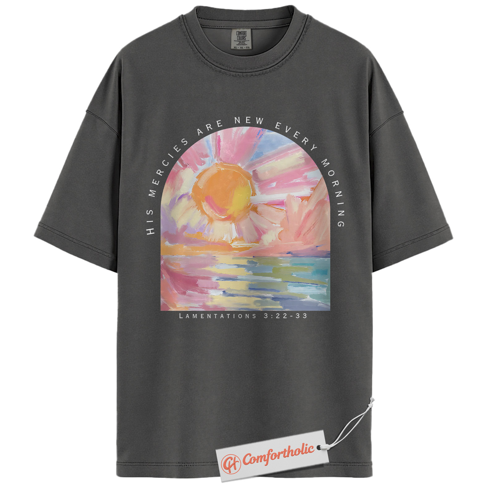 His Mercies Are New Every Morning Shirt, Christian Shirt, Sunrise Faith Shirt, Lamentations Bible Verse Shirt, Scripture Comfort Colors Shirt
