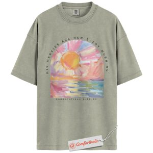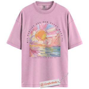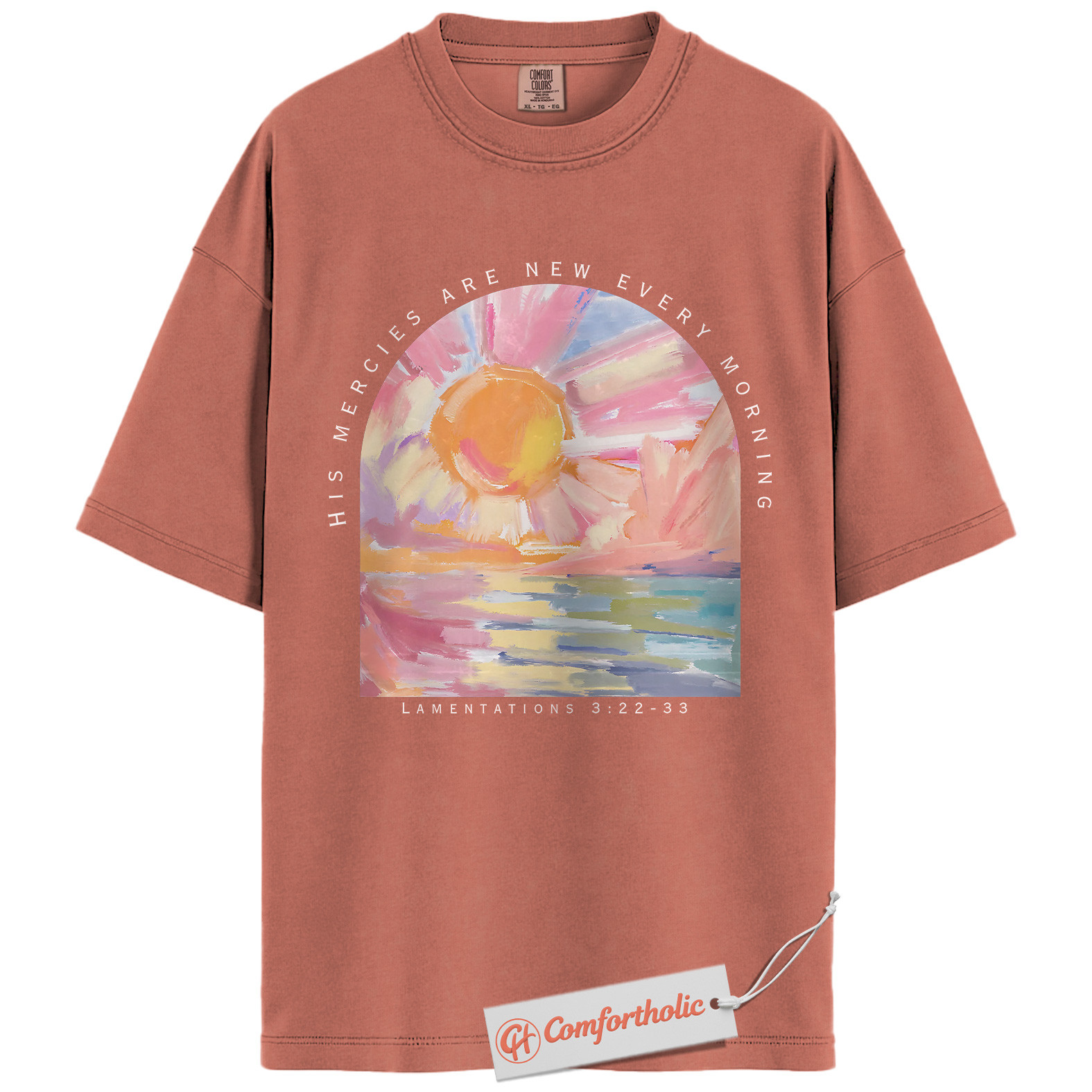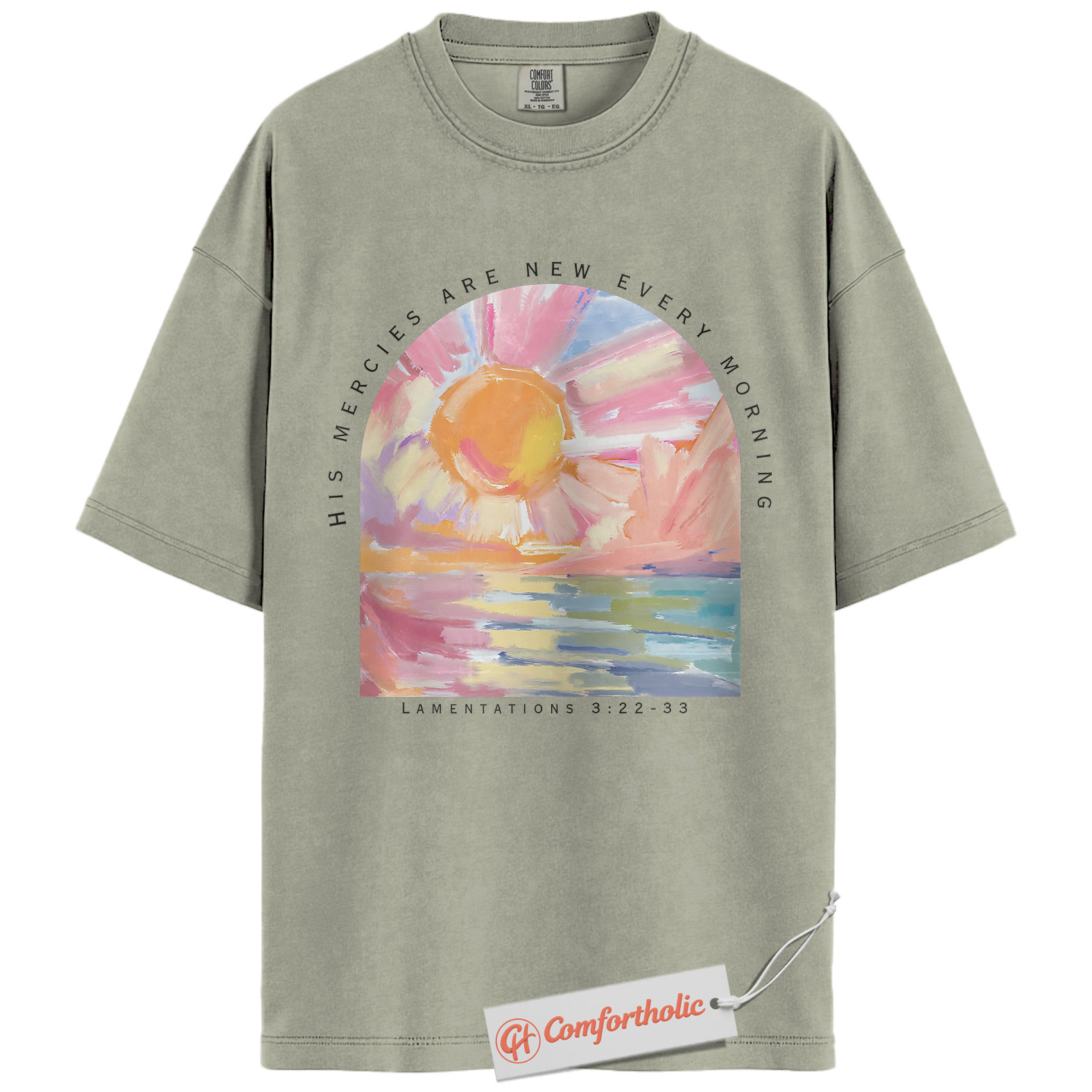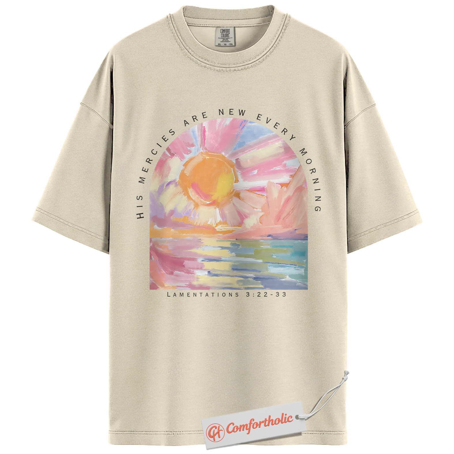 His Mercies Are New Every Morning Shirt, Christian Shirt, Sunrise Faith Shirt, Lamentations Bible Verse Shirt, Scripture Comfort Colors Shirt
