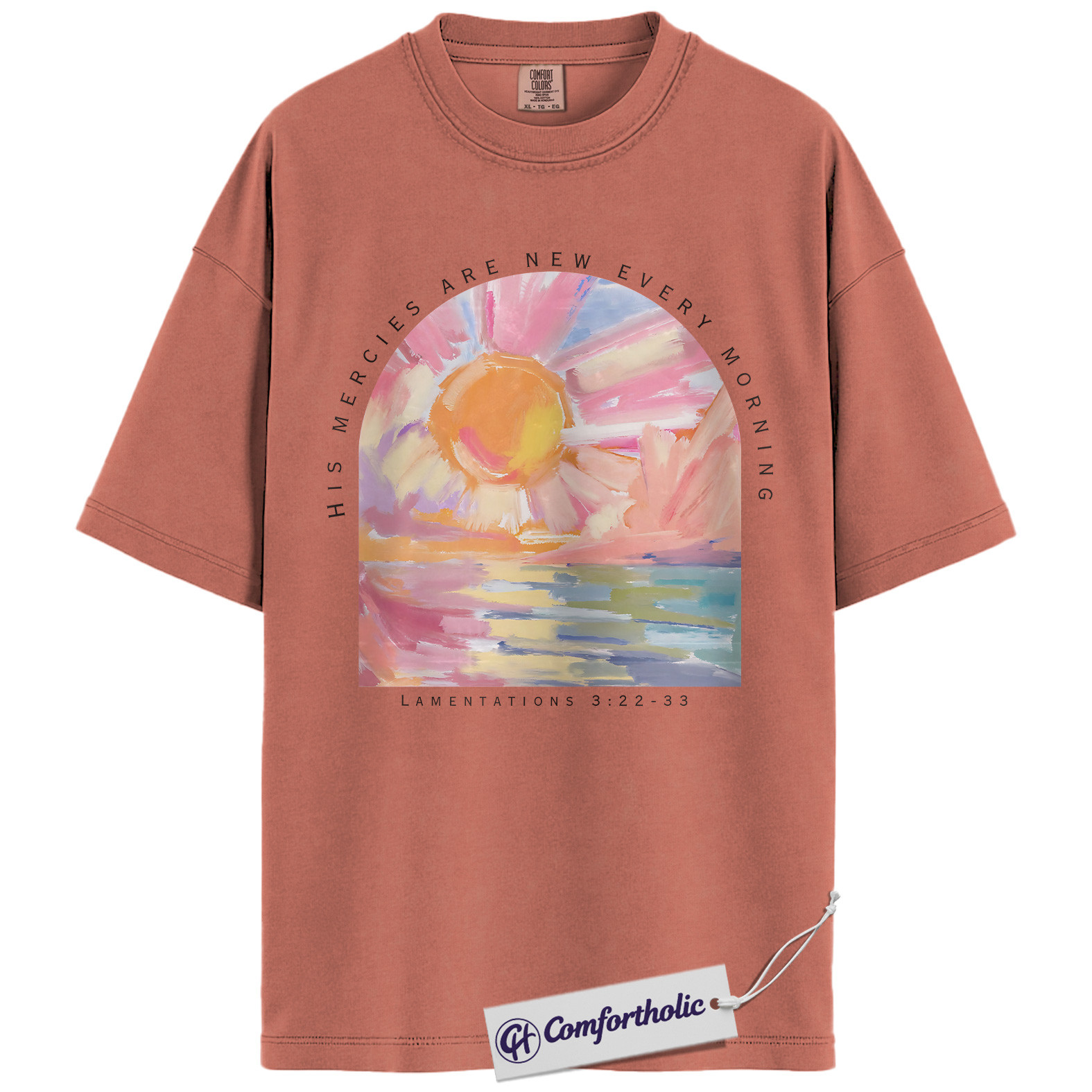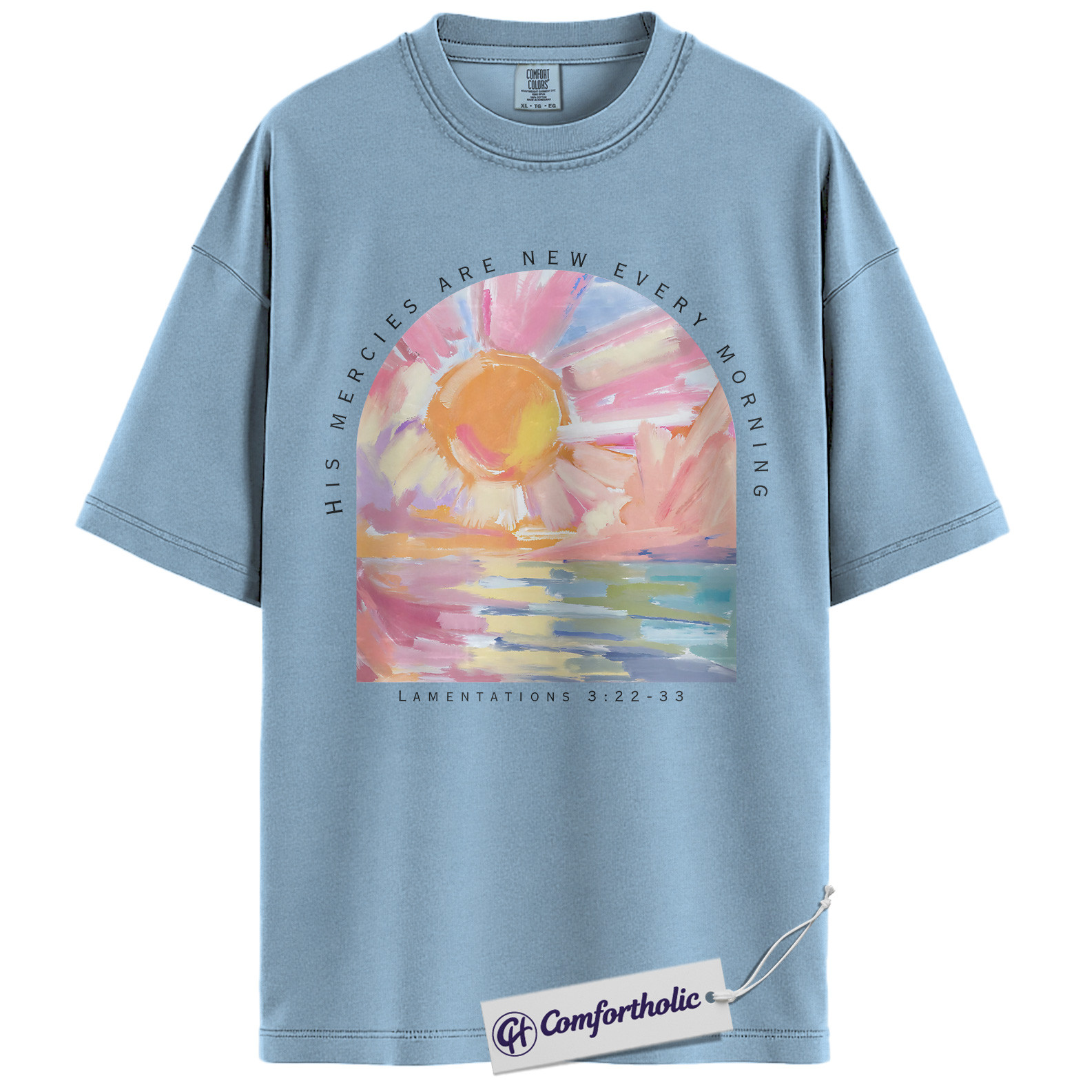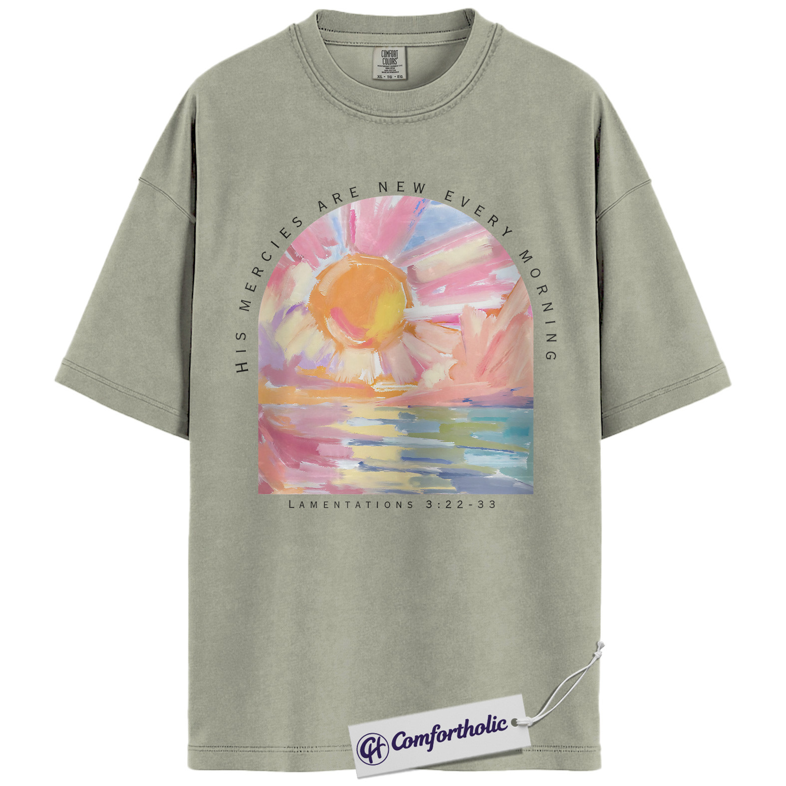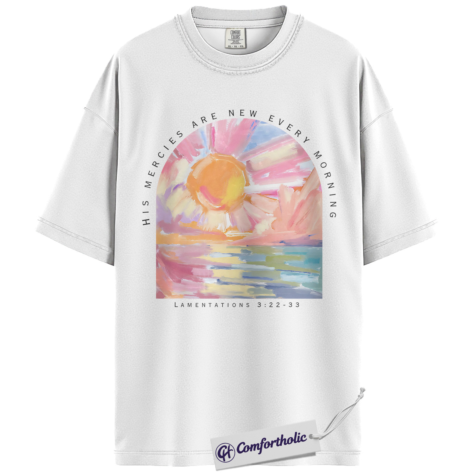 His Mercies Are New Every Morning Shirt, Lamentations 3:22–33 Bible Verse T-Shirt, Sunrise Faith Graphic Tee, Inspirational Scripture Gift, Christian Comfort Colors Shirt