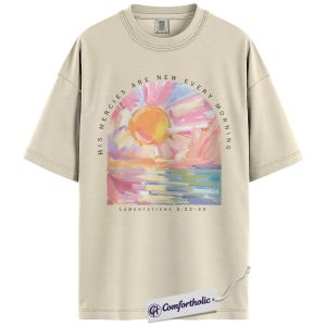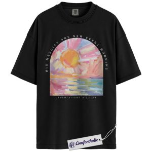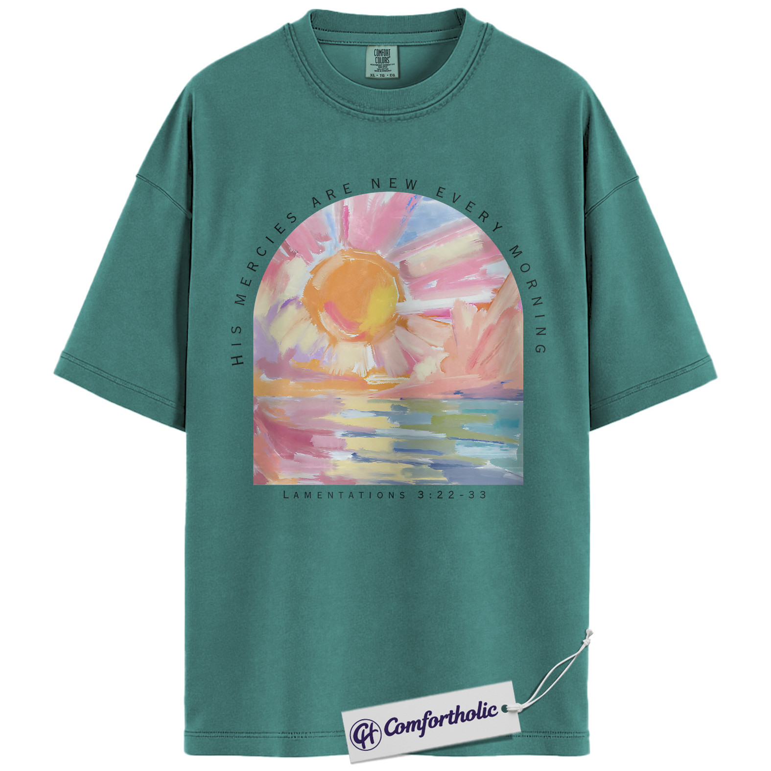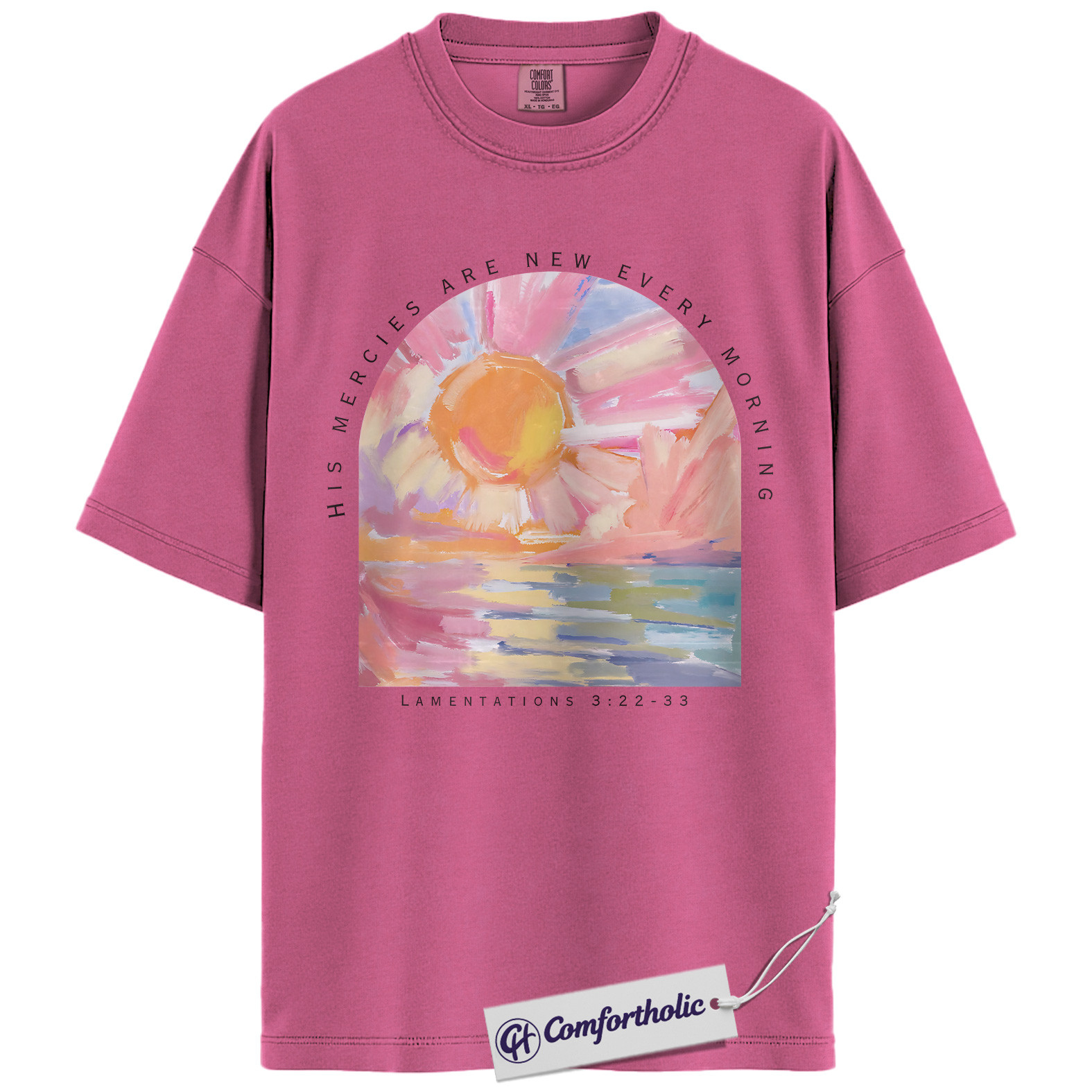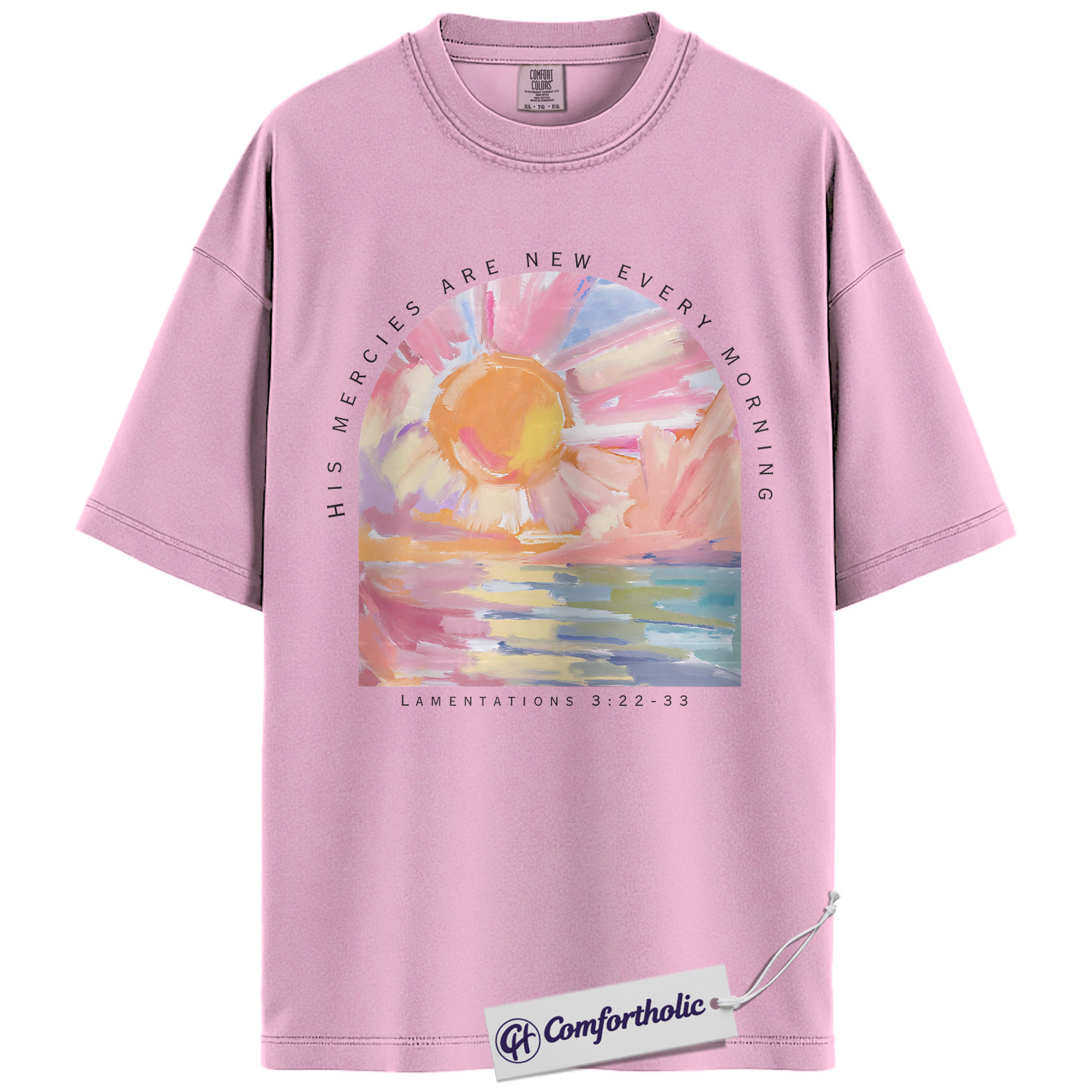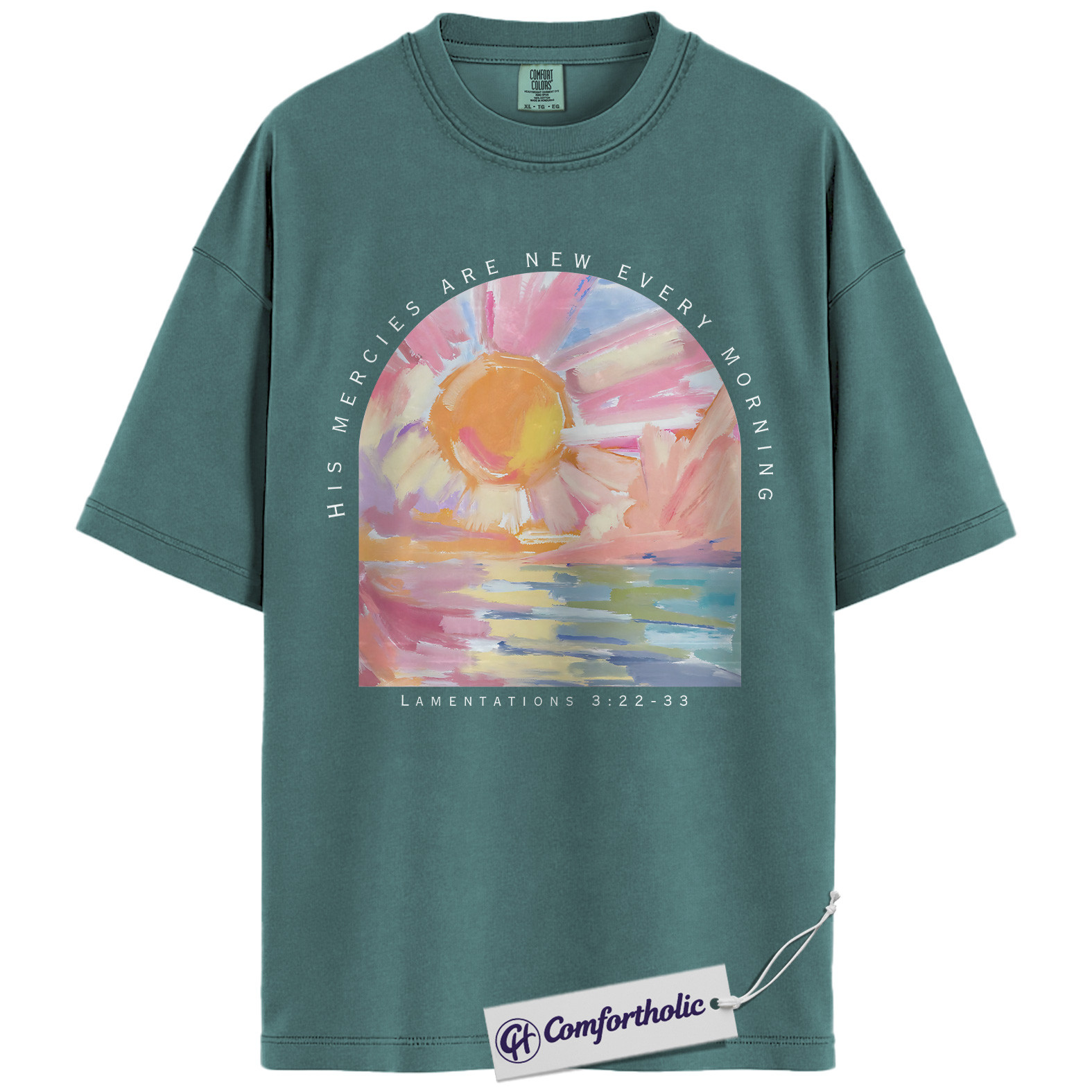 His Mercies Are New Every Morning Shirt, Lamentations 3:22–33 Bible Verse T-Shirt, Sunrise Faith Graphic Tee, Inspirational Scripture Gift, Christian Comfort Colors Shirt