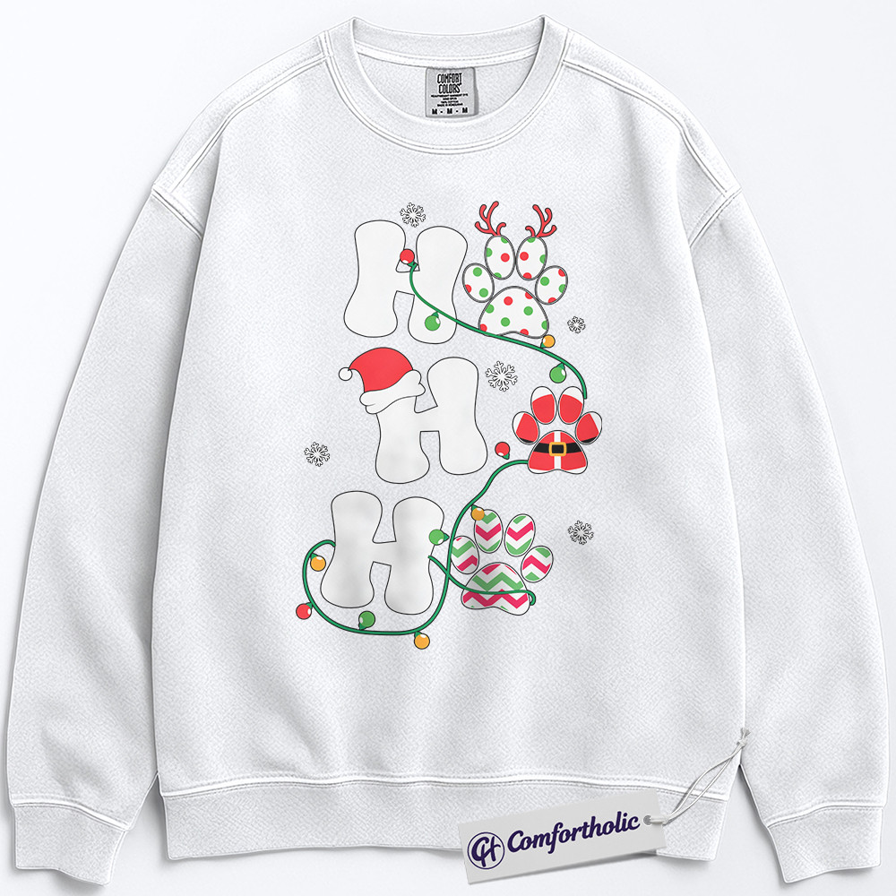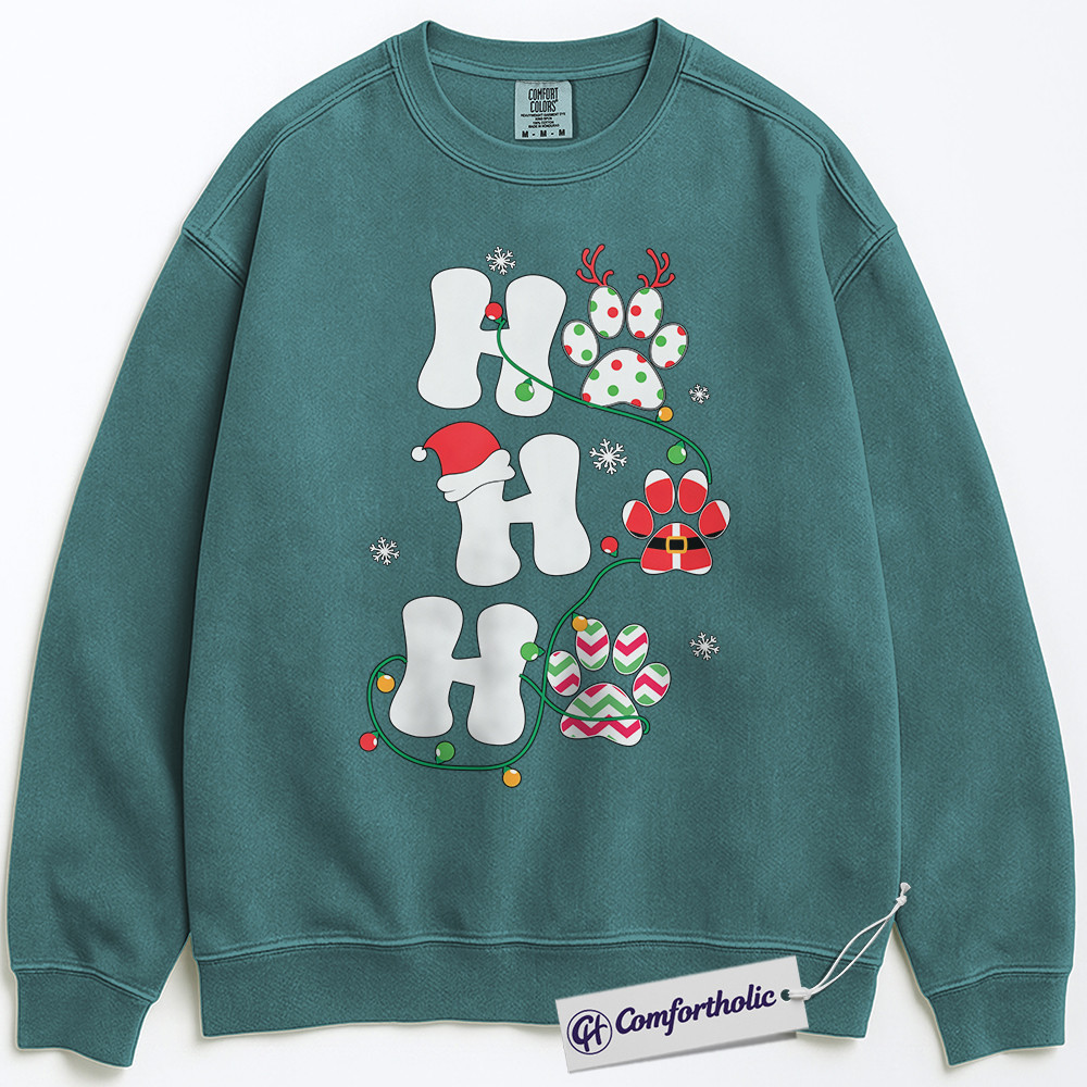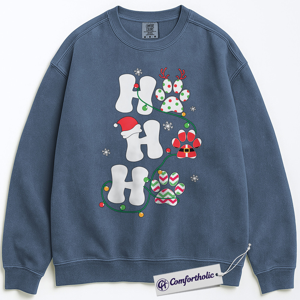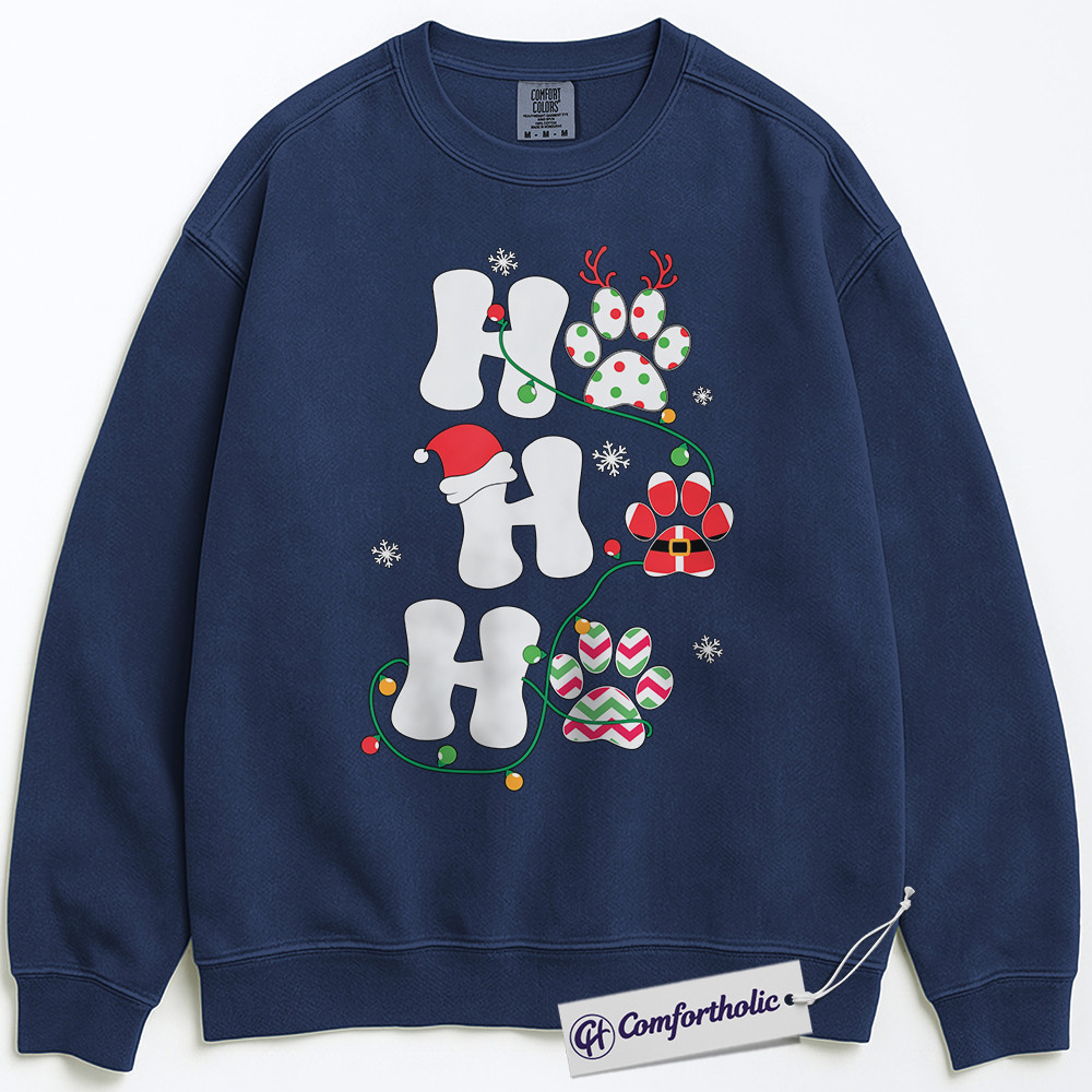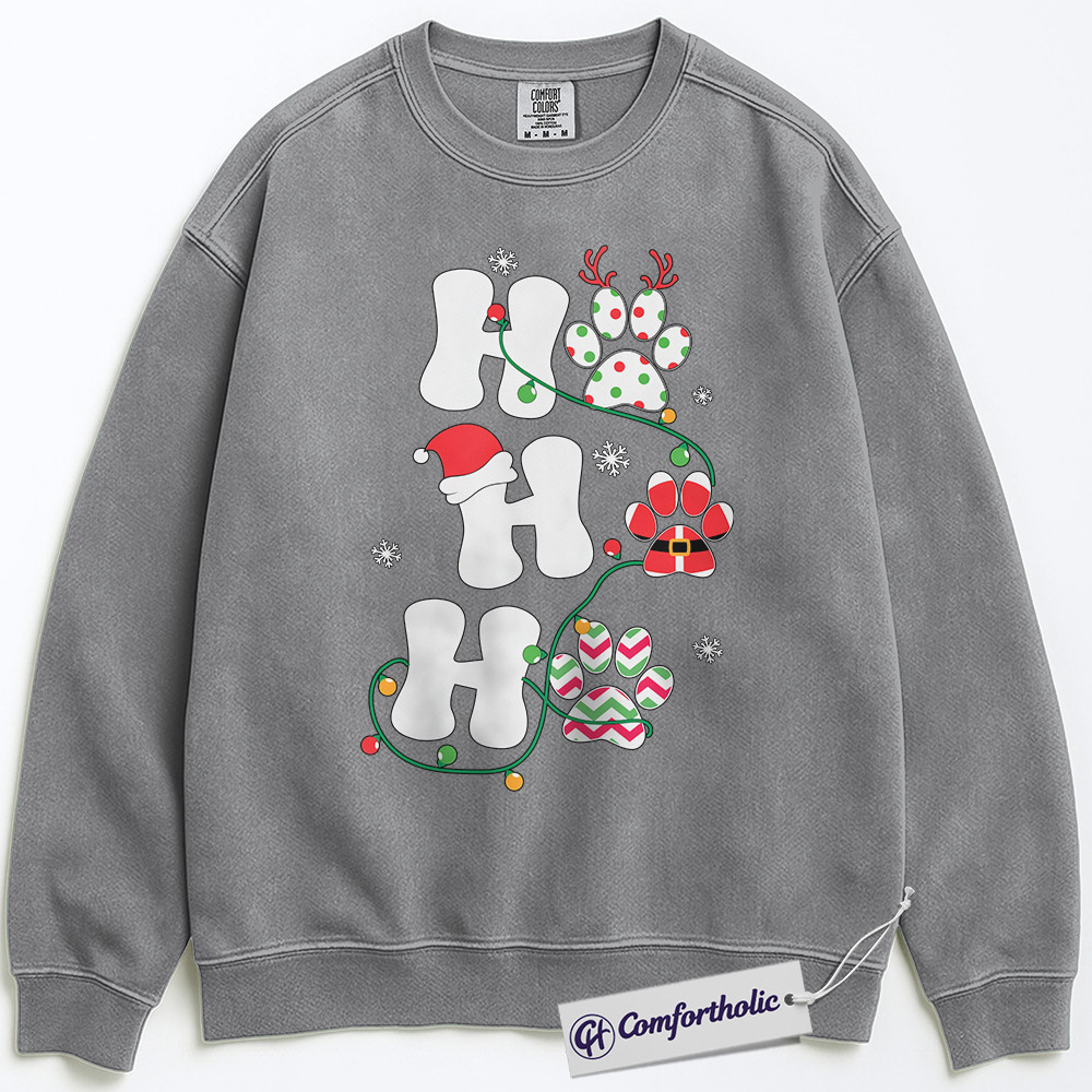 Ho Ho Ho Paw Print Christmas Sweatshirt, Cute Pet Lover Holiday Sweatshirt, Funny Dog and Cat Mom Graphic Sweatshirt, Festive Animal Lover Gift, Comfort Colors Sweatshirt