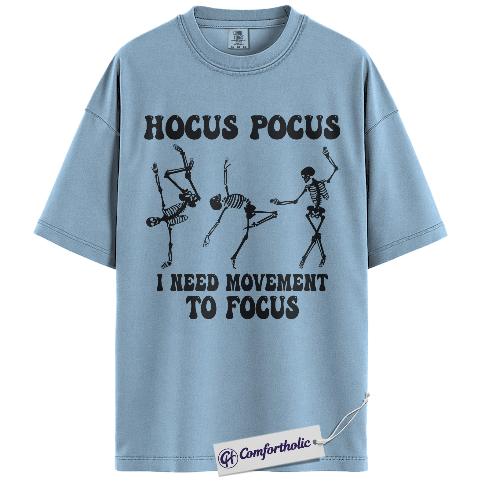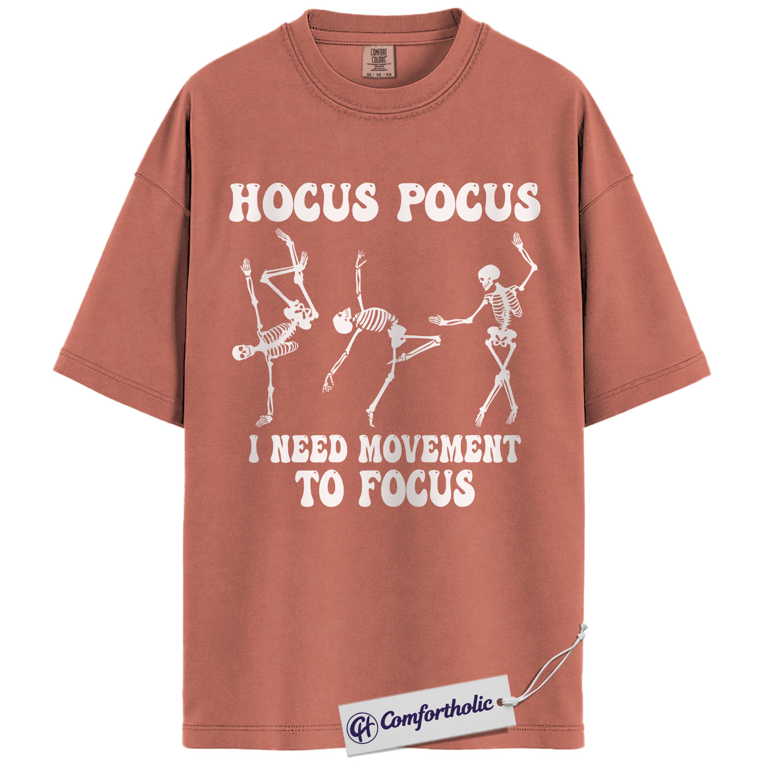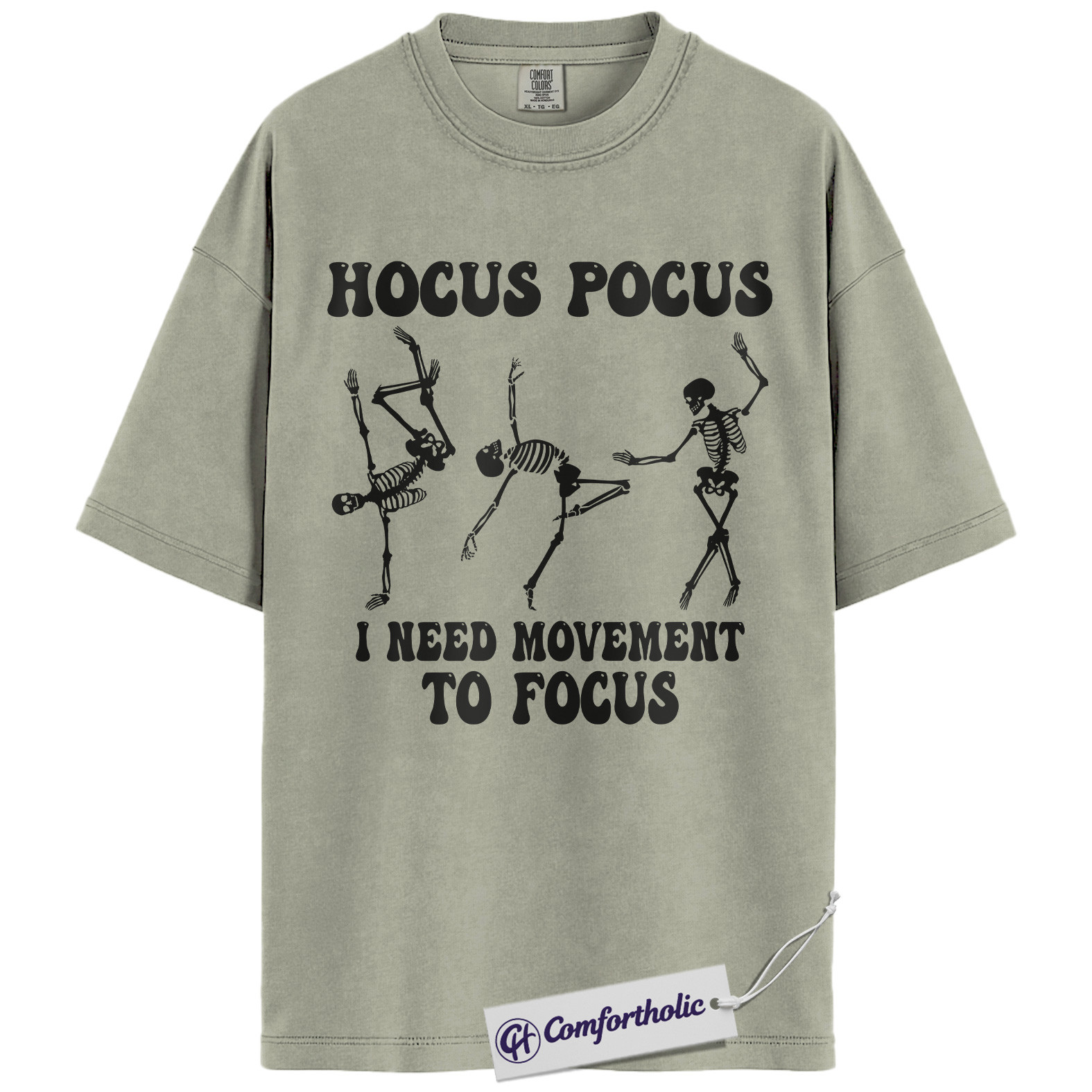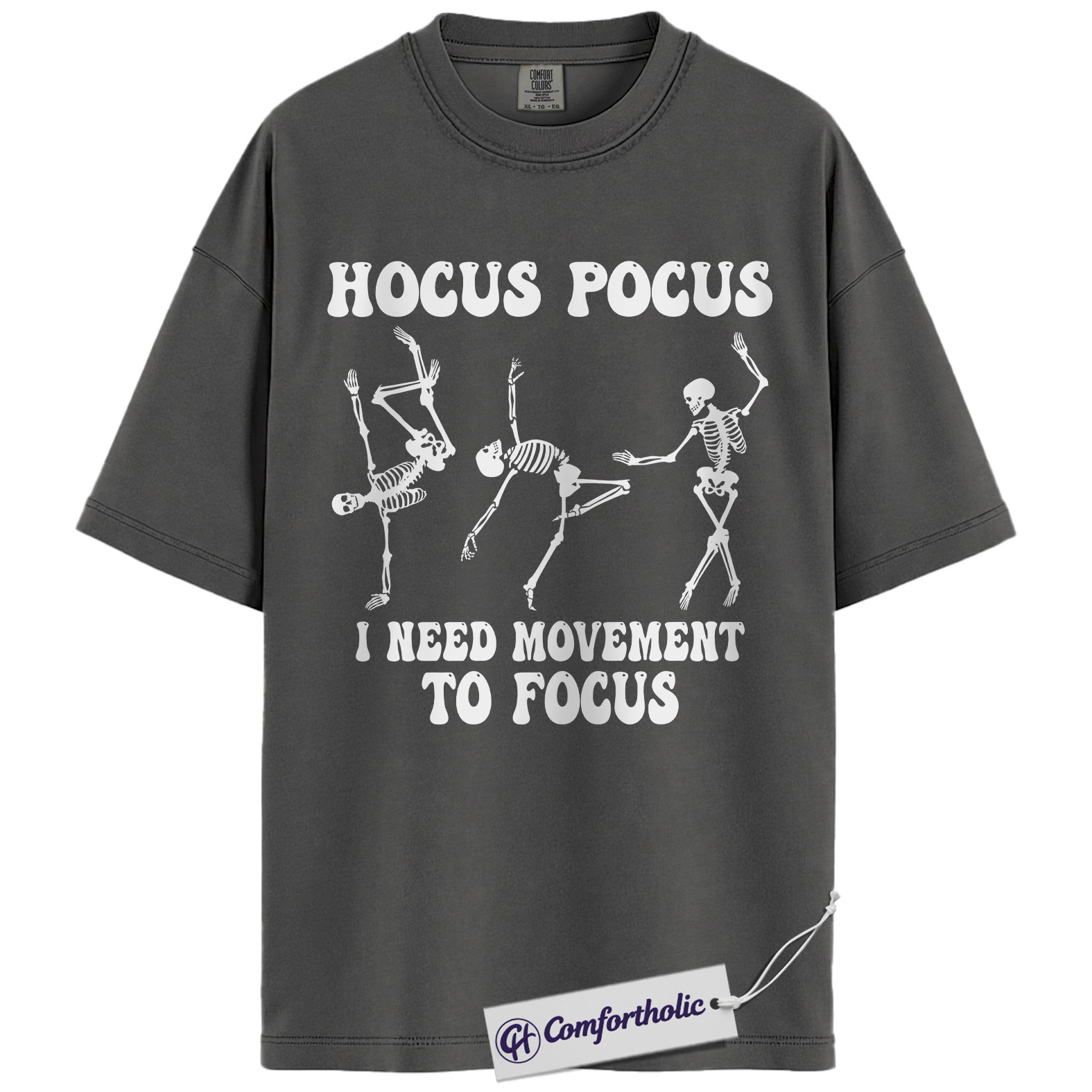 Hocus Pocus I Need Movement to Focus Shirt, Funny Skeleton Dance T-Shirt, Spooky Halloween Teacher Graphic Tee, Cute Fall Gift for Educators, Comfort Colors Shirt