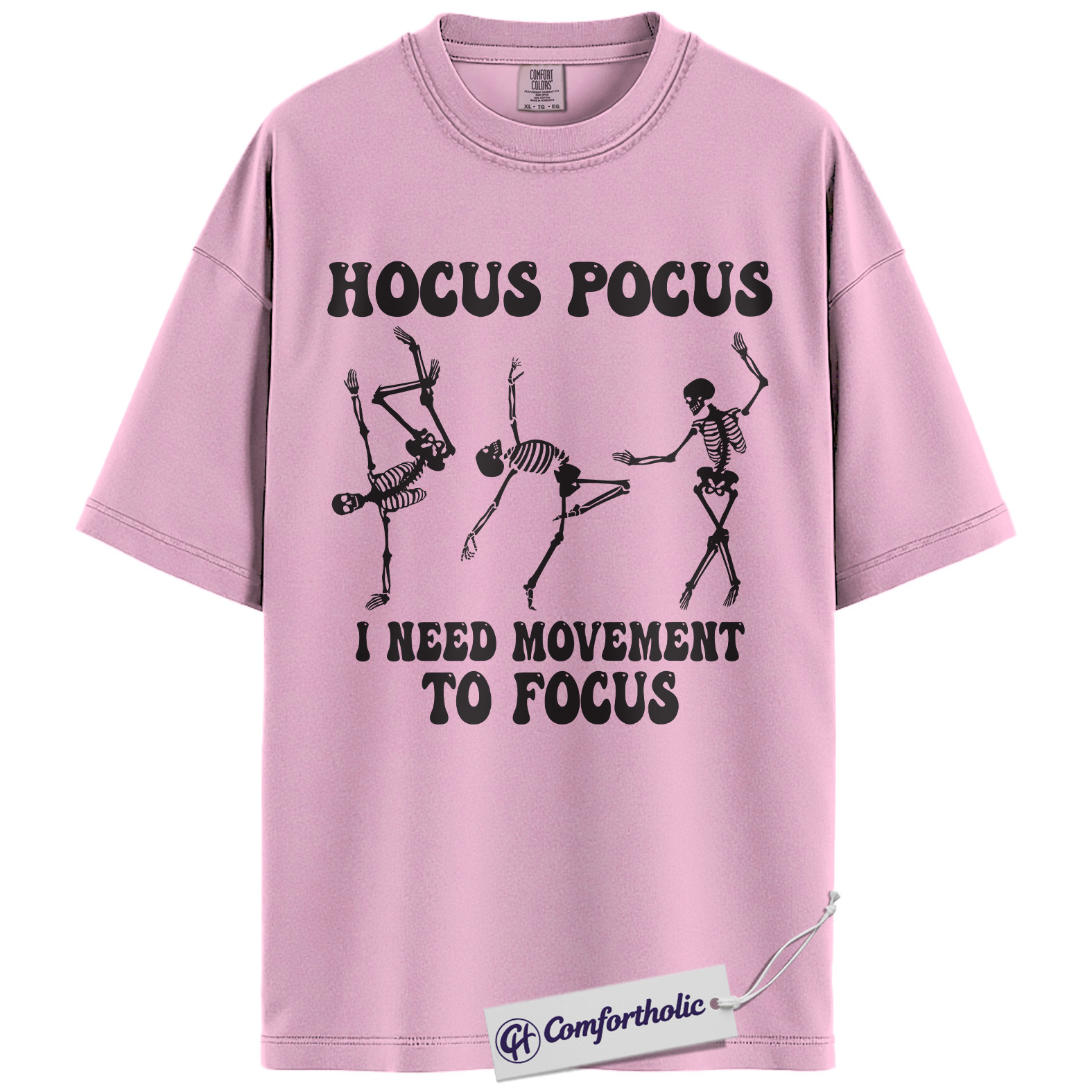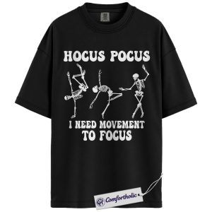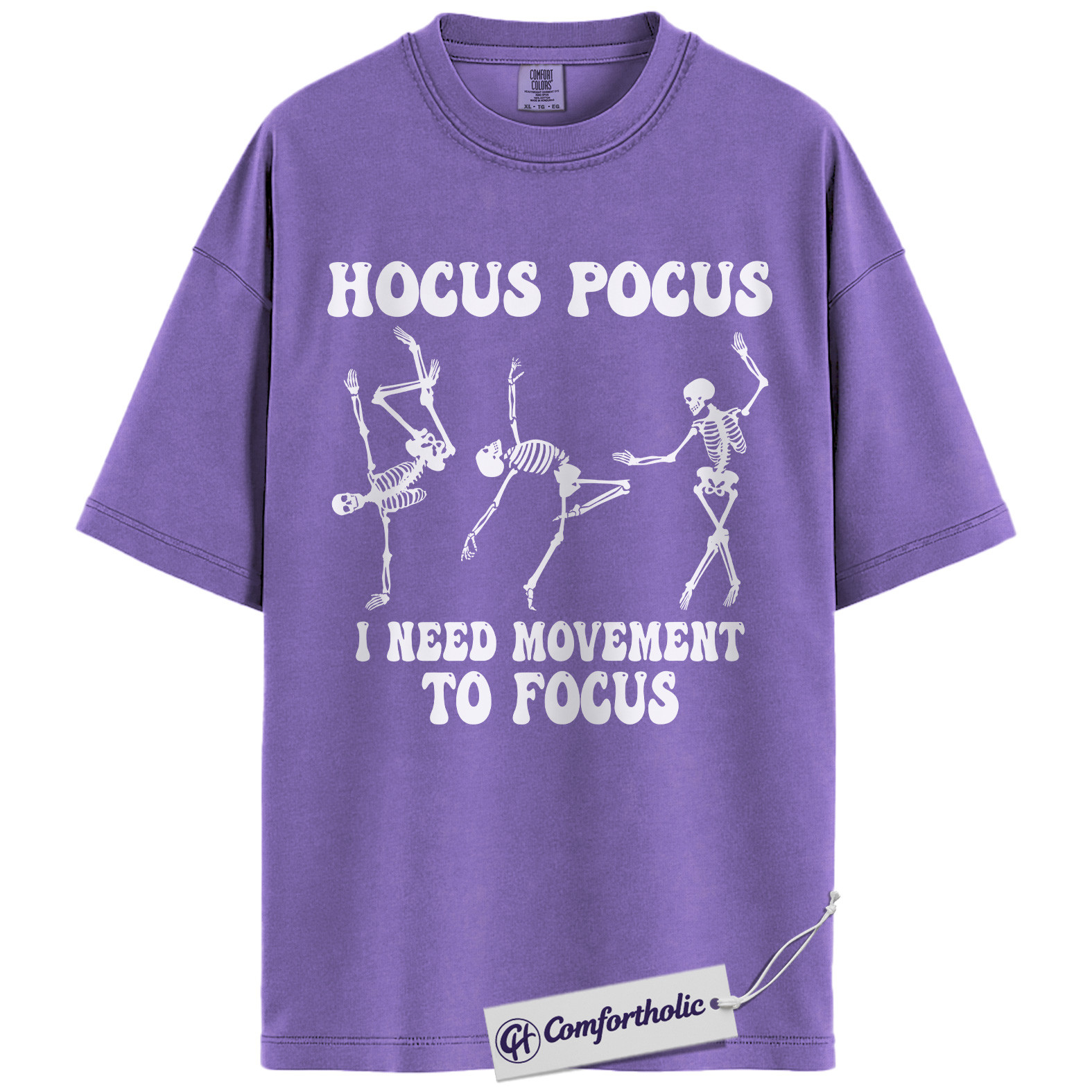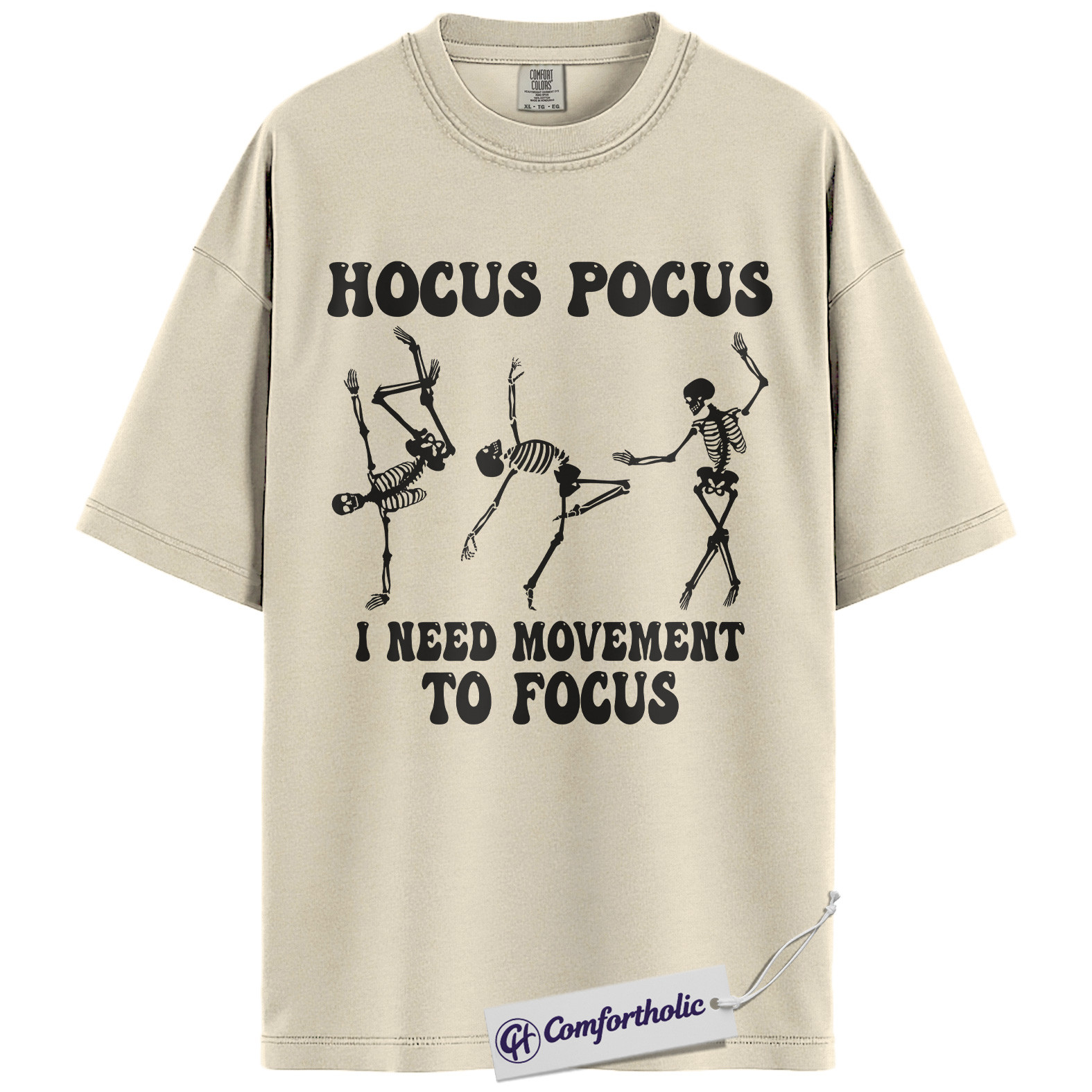 Hocus Pocus I Need Movement to Focus Shirt, Funny Skeleton Dance T-Shirt, Spooky Halloween Teacher Graphic Tee, Cute Fall Gift for Educators, Comfort Colors Shirt