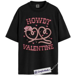 Howdy Valentine Shirt, Western Rope Heart Graphic Tee, Cute Country Cowgirl T-Shirt, Southern Valentine Gift for Her, Comfort Colors Shirt