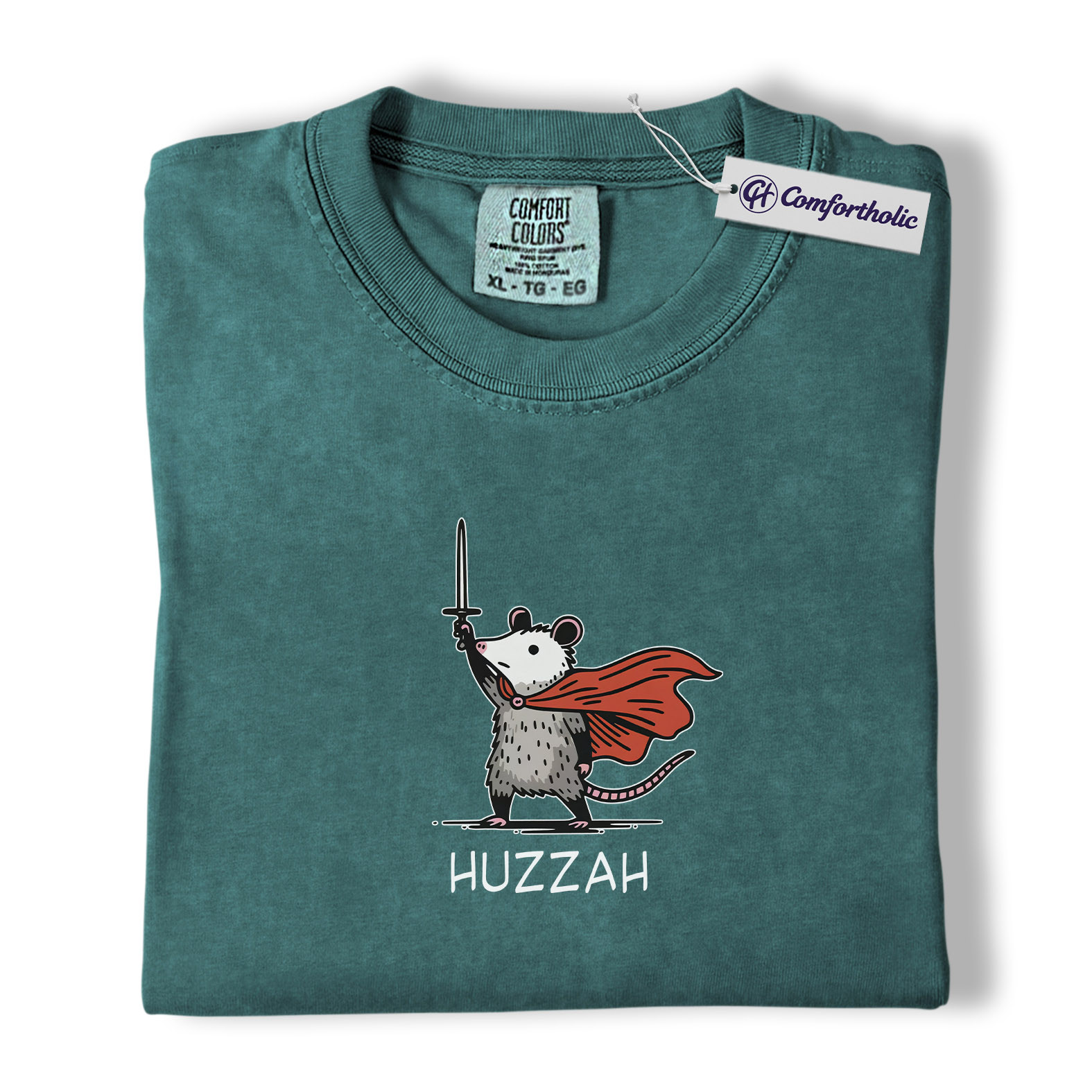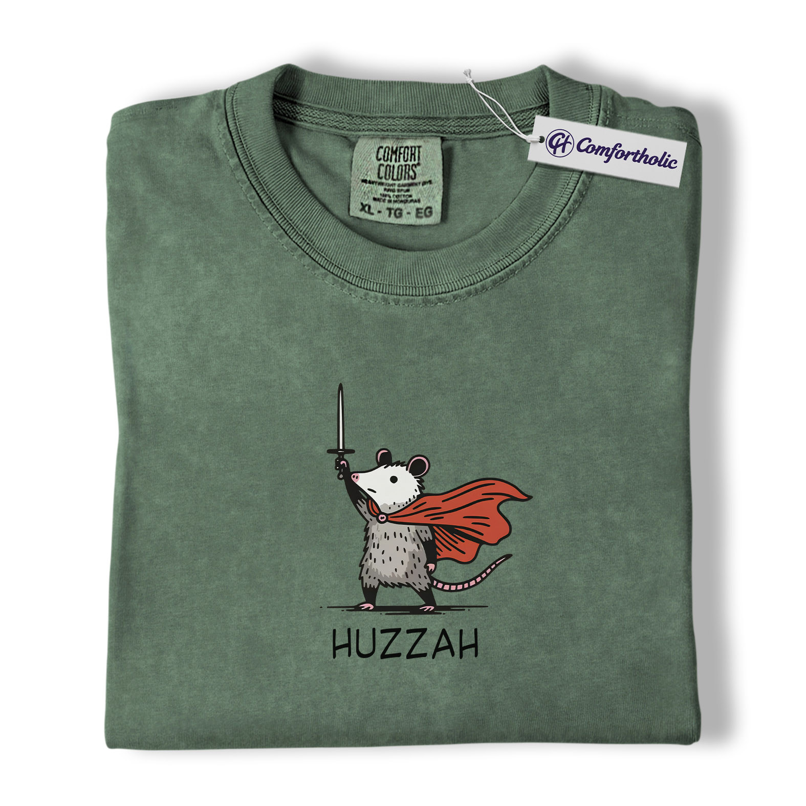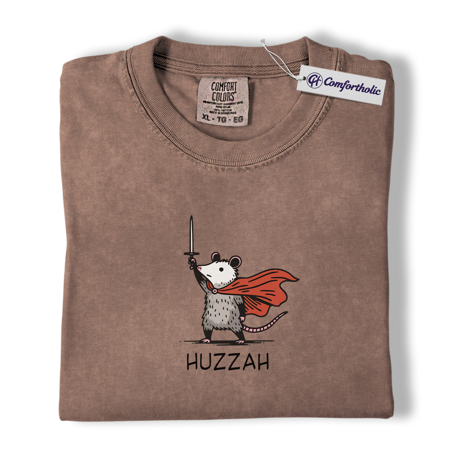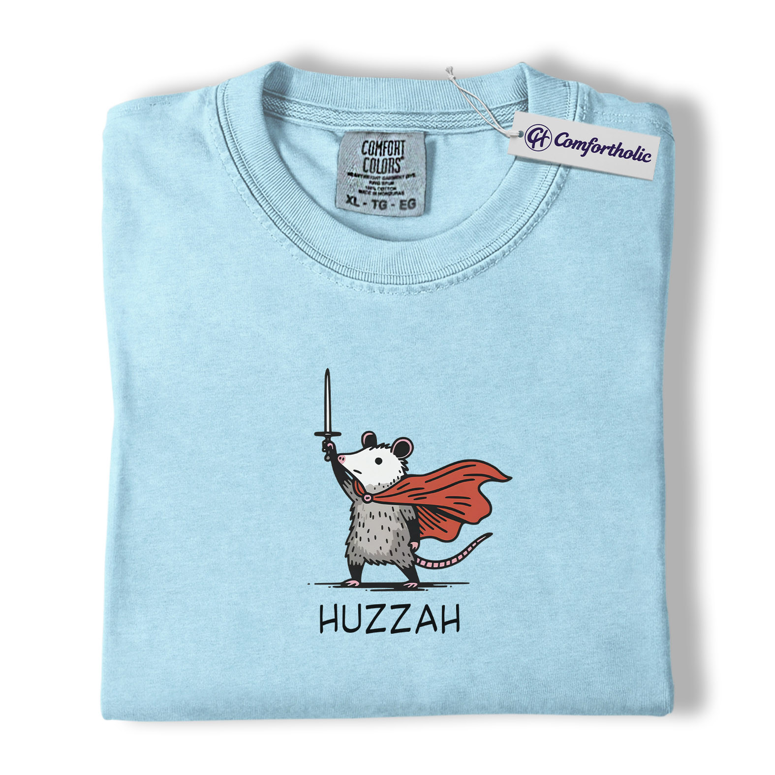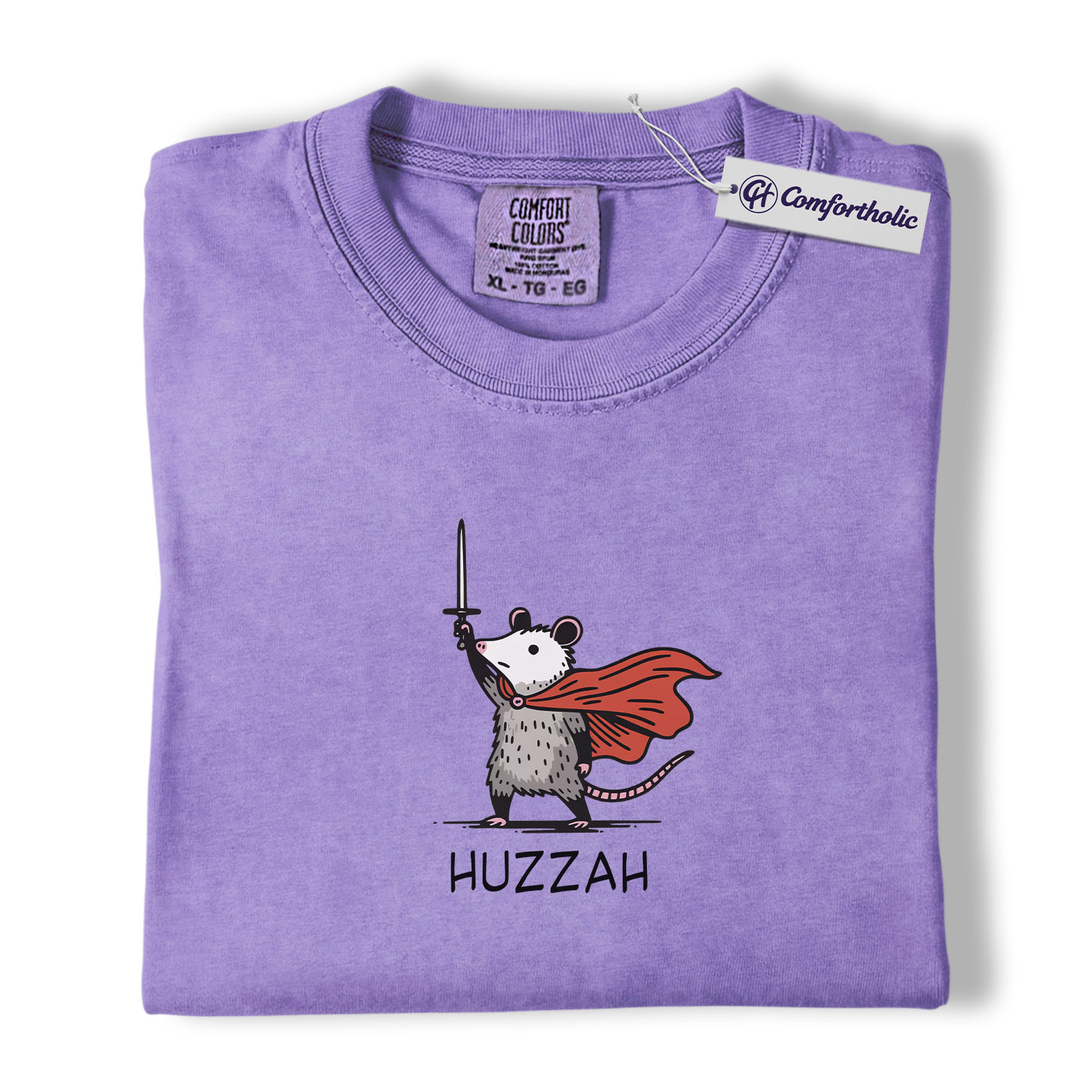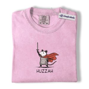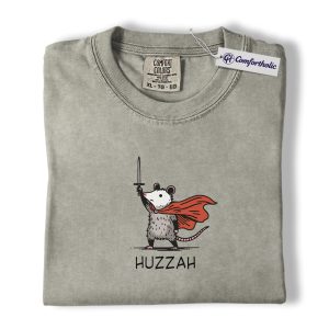 Huzzah Possum Shirt, Funny Medieval Fantasy Animal Graphic Tee, Cute Possum Lover T-Shirt, Renaissance Faire Gift, Comfort Colors Shirt