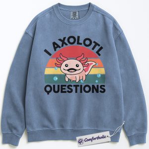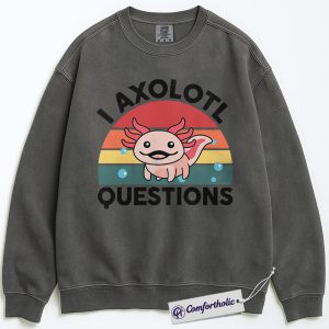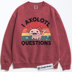 I Axolotl Questions Sweatshirt, Funny Axolotl Pullover for Animal Lovers, Cute Aquatic Salamander Graphic Crewneck, Pun Gift for Kids and Adults, Comfort Colors Sweatshirt