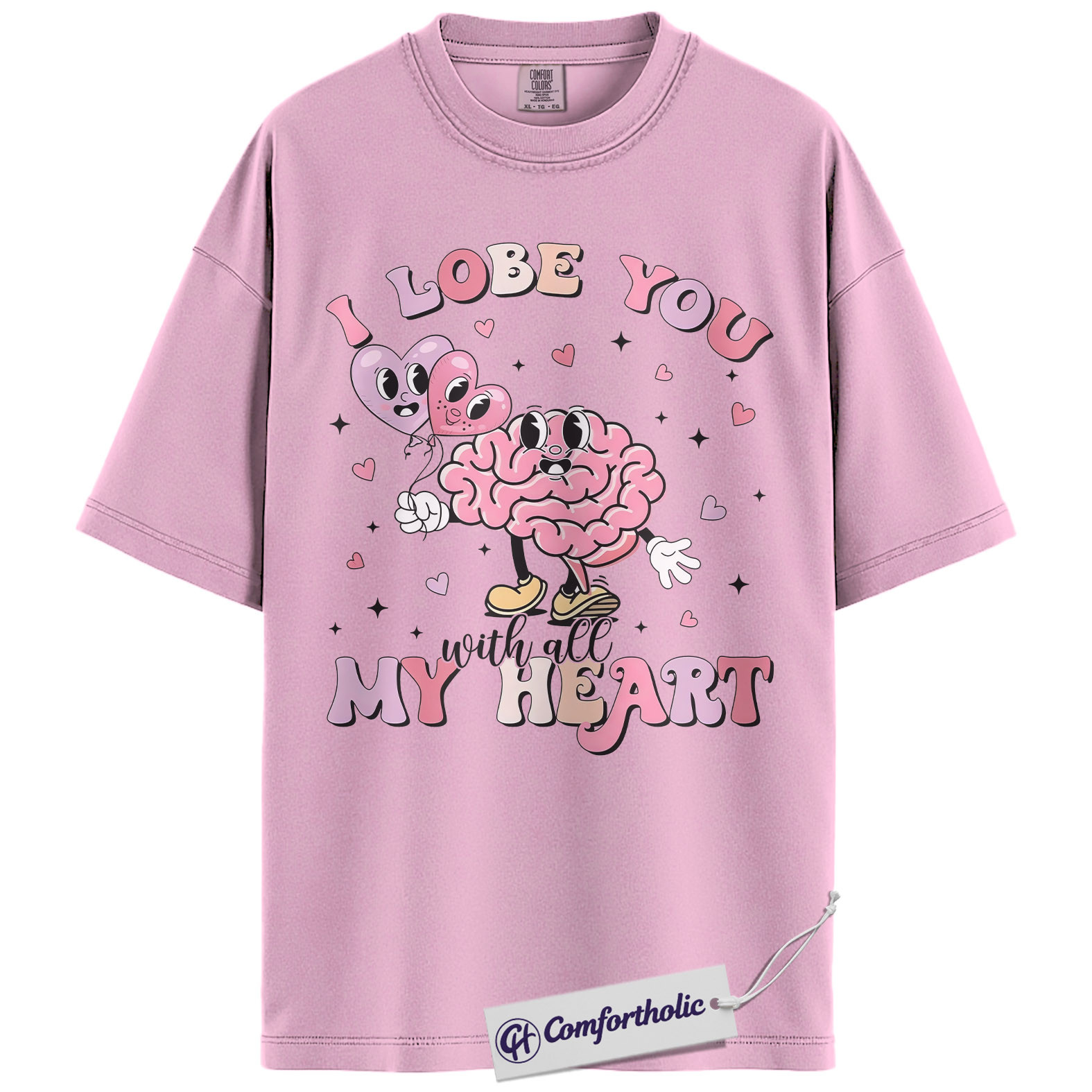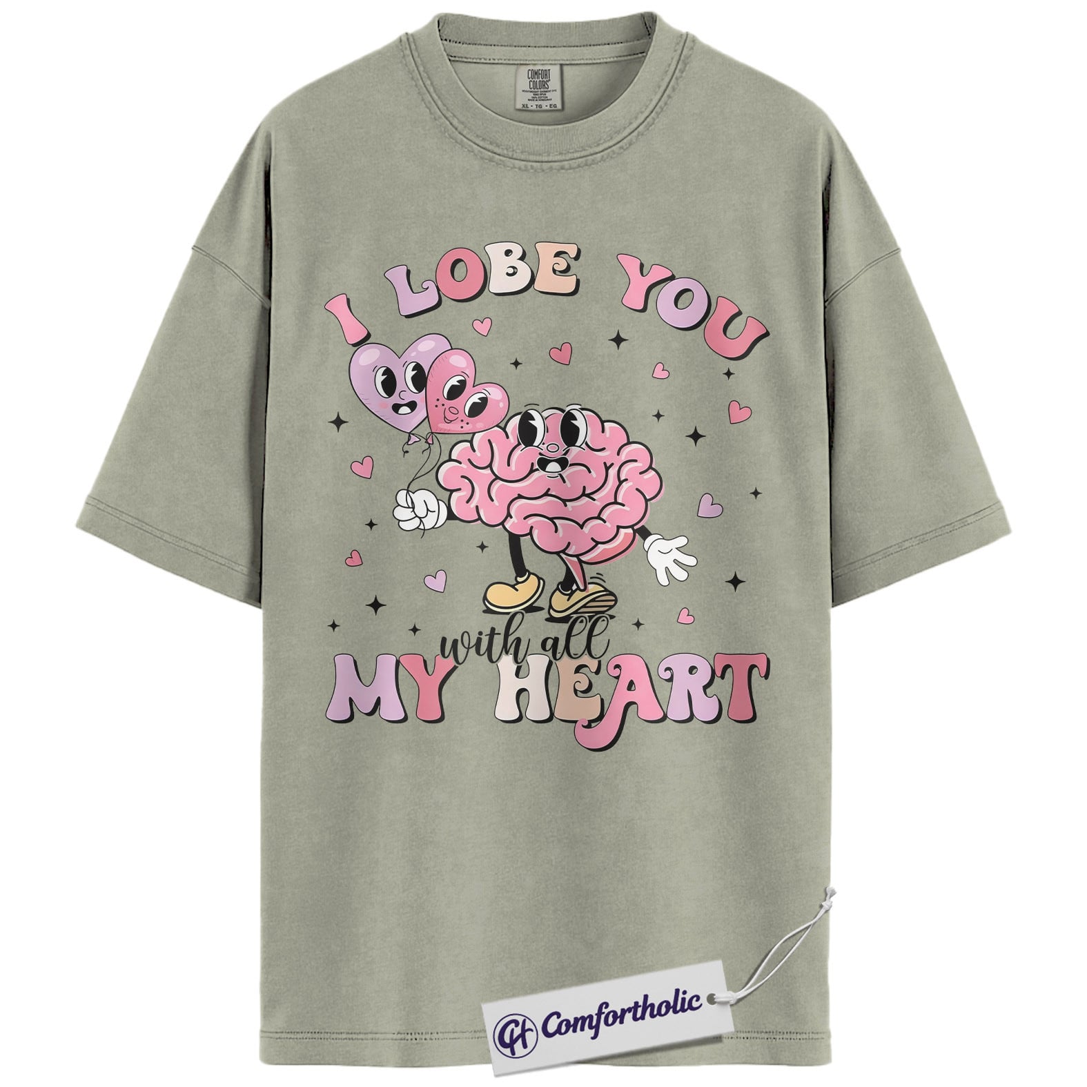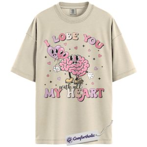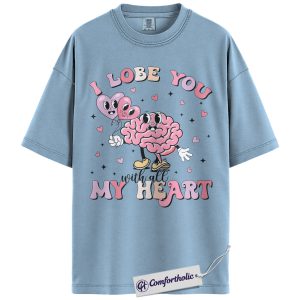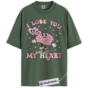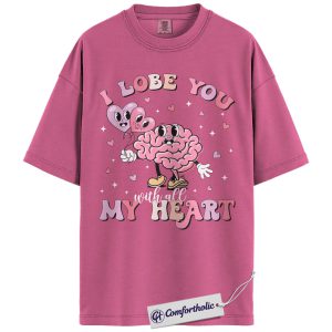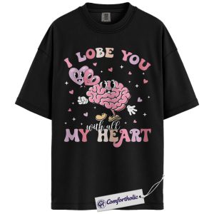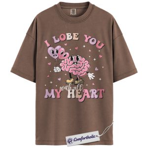 I Lobe You Valentine Shirt, Cute Brain Pun Graphic Tee, Funny Neuroscience T-Shirt, Valentine’s Day Gift for Nurses & Med Students, Comfort Colors Shirt