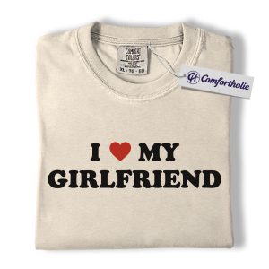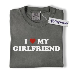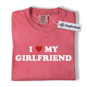 I Love My Girlfriend Shirt, Cute Couple Matching T-Shirt, Typography Quote Graphic Tee, Romantic Valentine’s Day Gift for Boyfriend, Comfort Colors Shirt