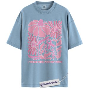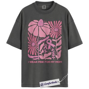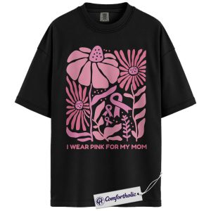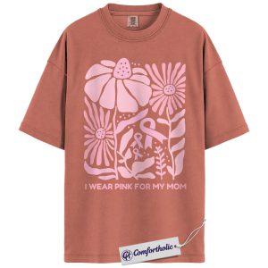 I Wear Pink for My Mom Shirt, Breast Cancer Awareness T-Shirt, Floral Pink Ribbon Graphic Tee, Support Gift for Mother, Comfort Colors Shirt