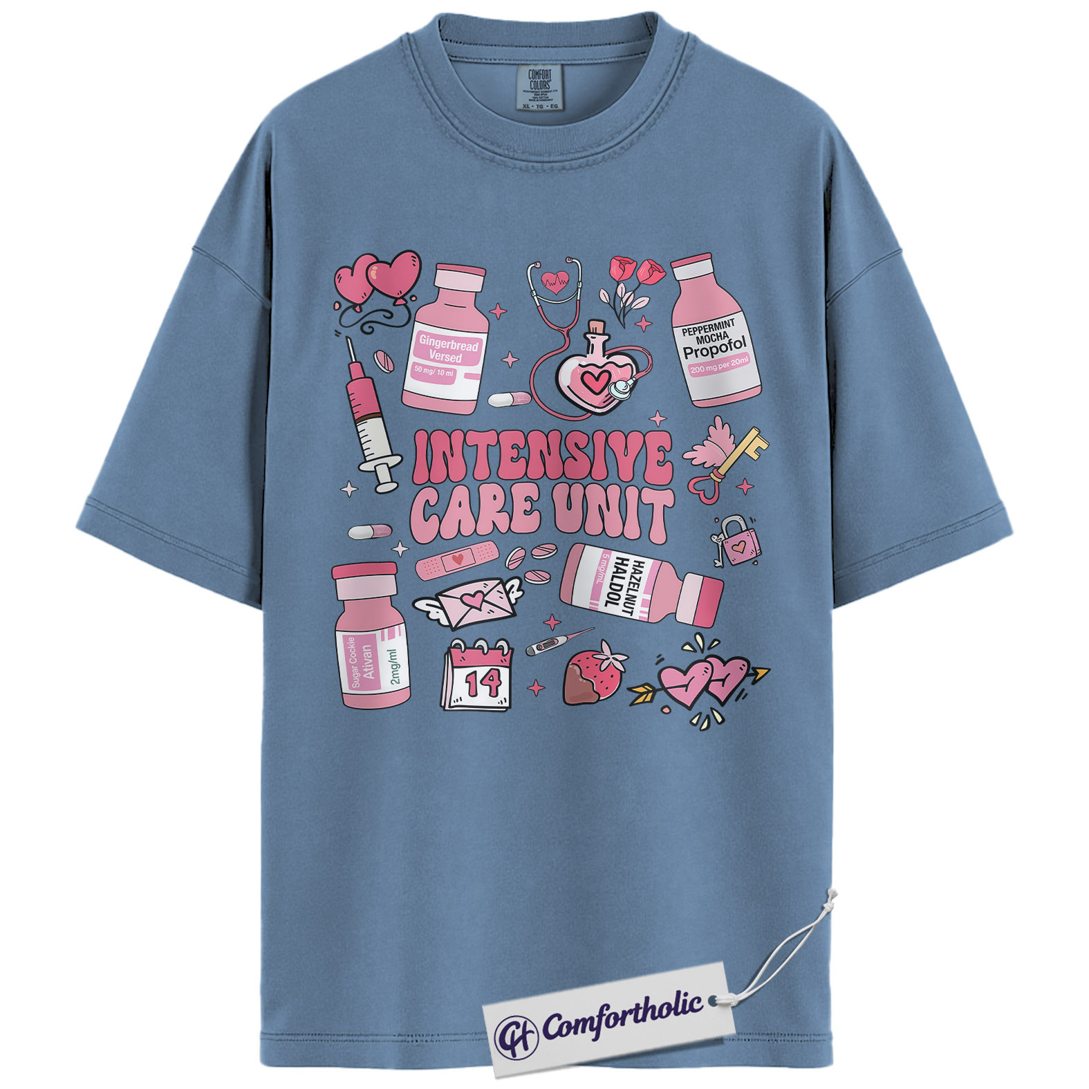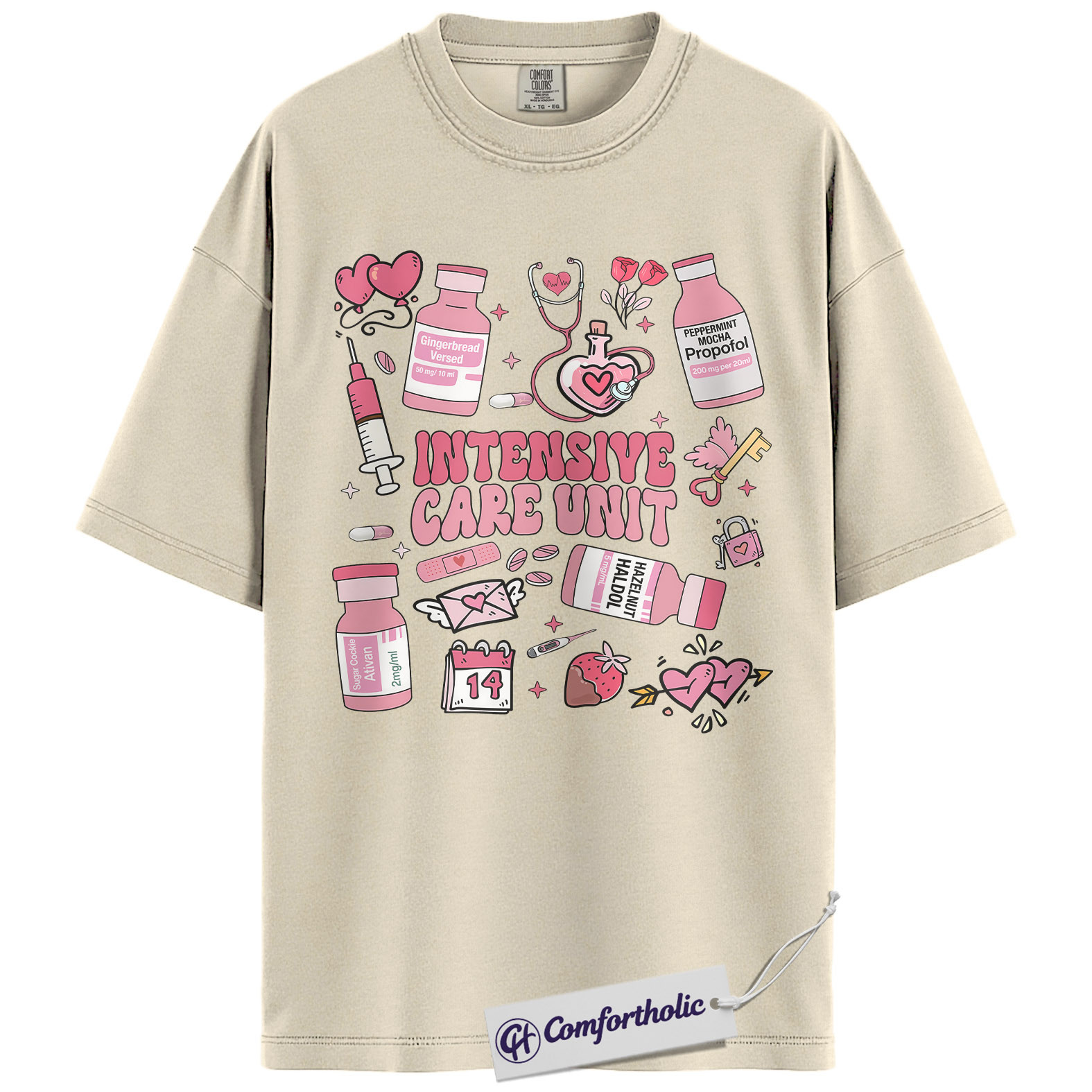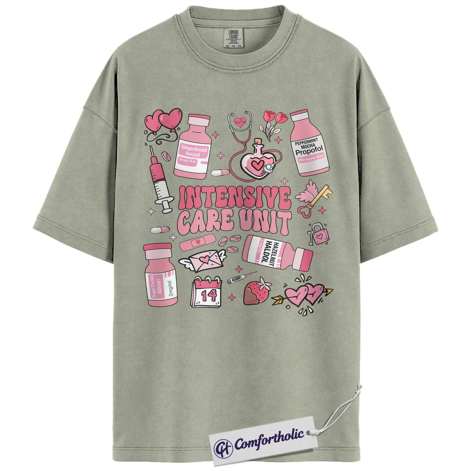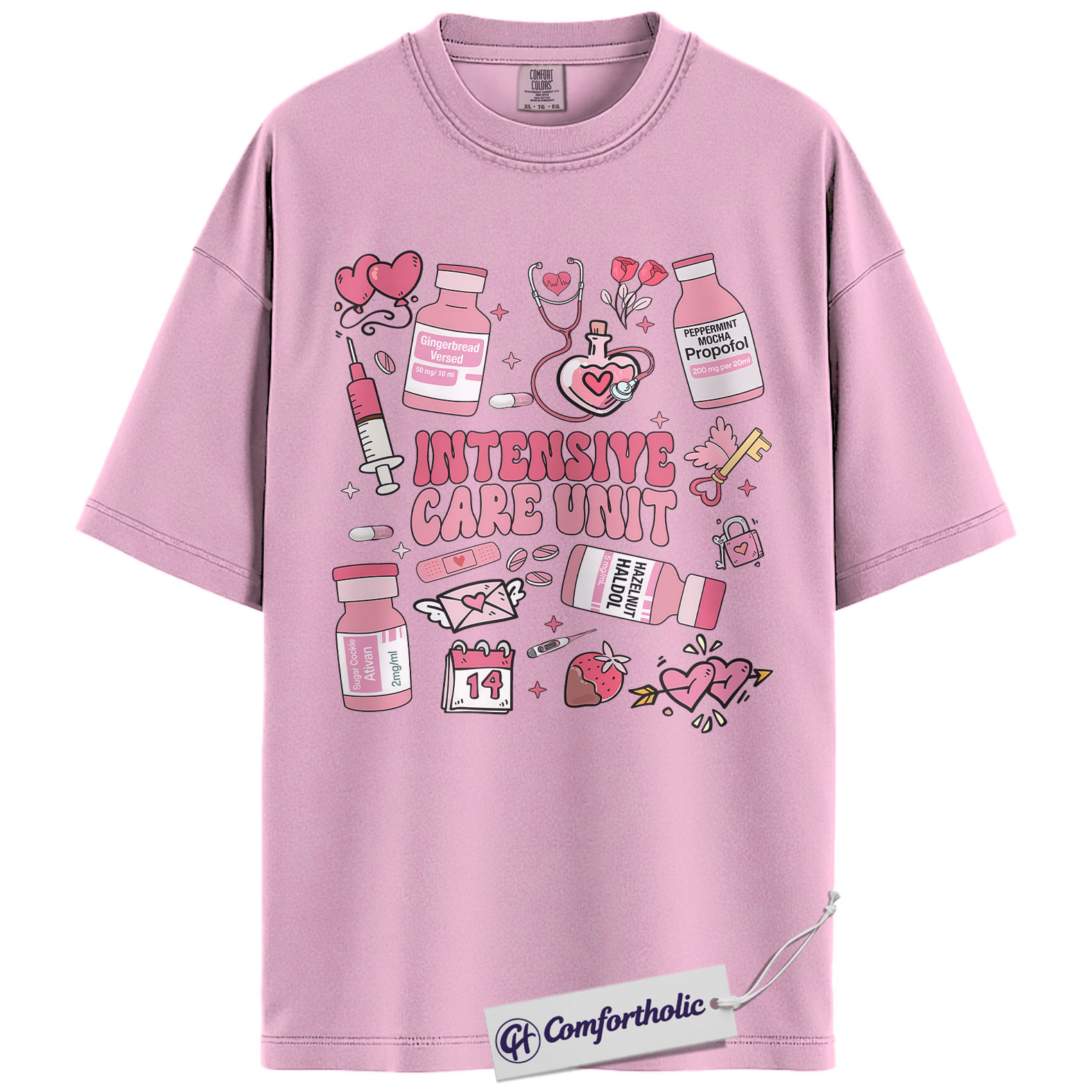ICU Valentine Nurse Shirt, Cute Medical Doodle Graphic Tee, Critical Care & Healthcare Worker Love T-Shirt, Sweet Gift for ICU Nurses, Comfort Colors Shirt