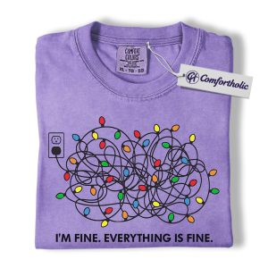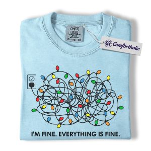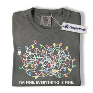 I’m Fine Everything Is Fine Christmas Shirt, Funny Holiday Lights T-Shirt, Tangled String Graphic Tee, Sarcastic Relatable Quote Comfort Colors Shirt
