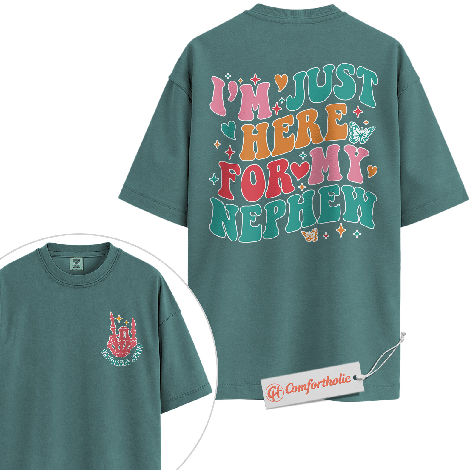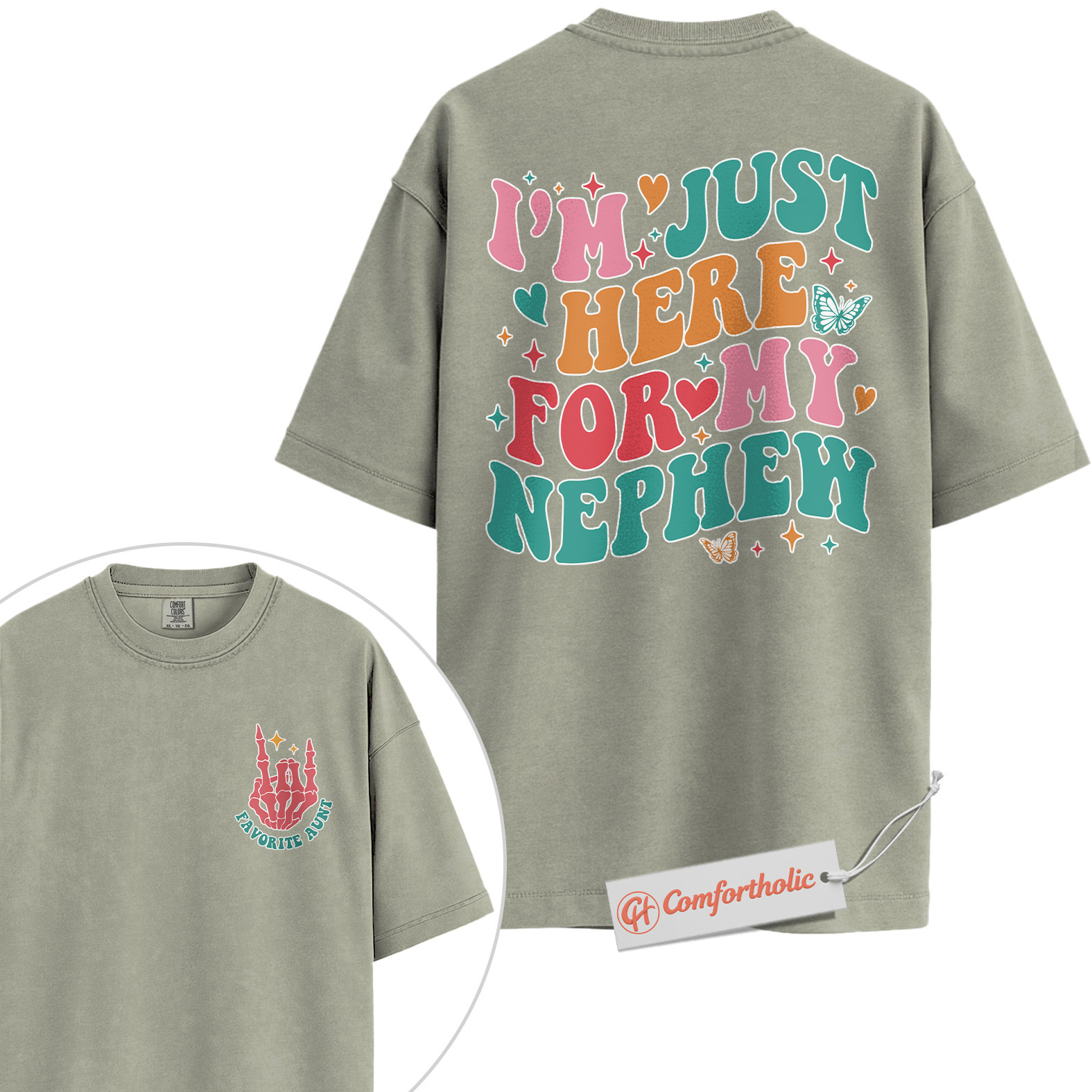 I’m Just Here for My Nephew Shirt, Favorite Aunt Shirt, Funny Family Shirt, Cool Aunt Comfort Colors Shirt 2-Sided