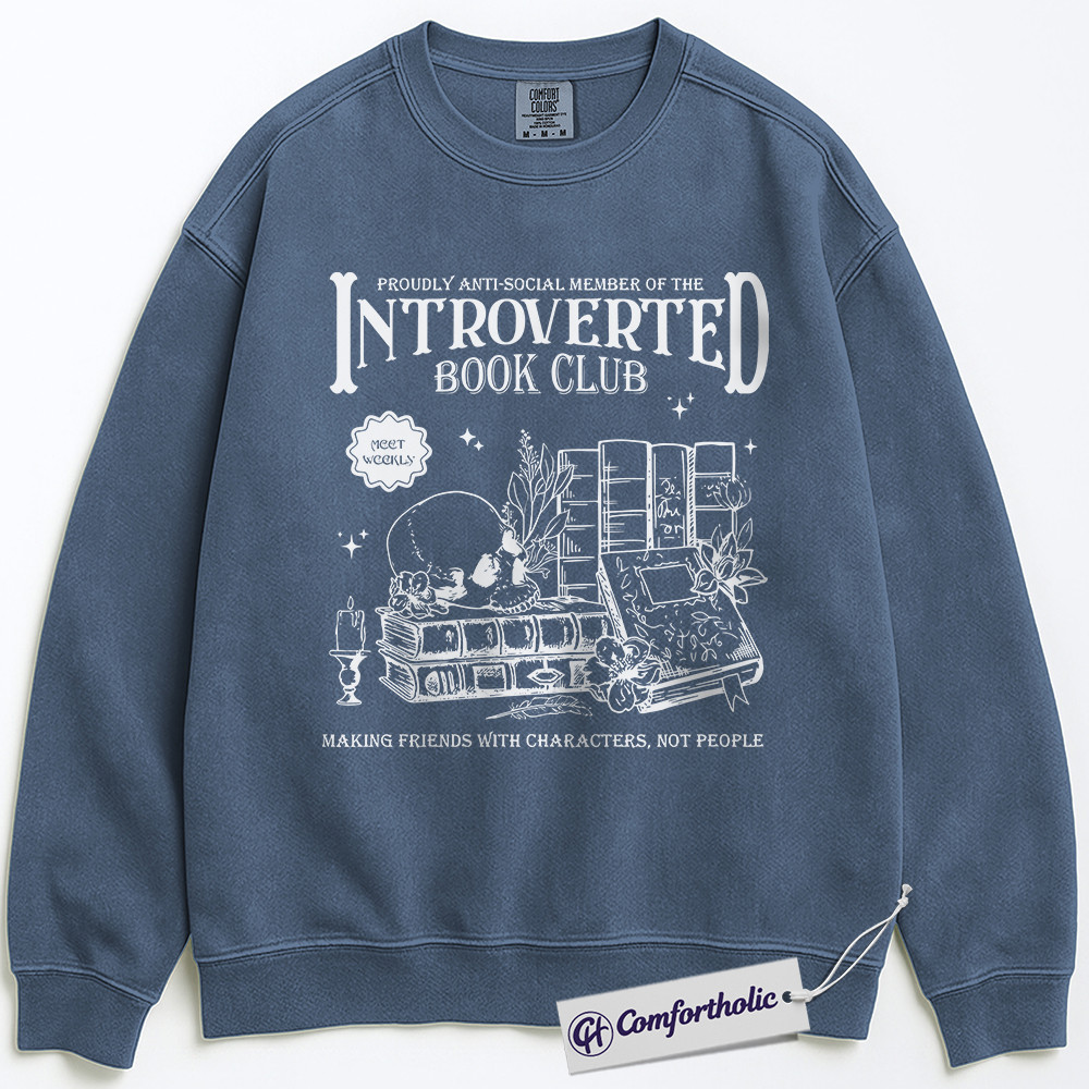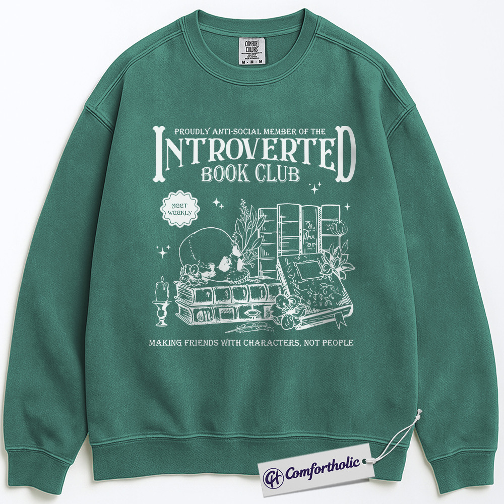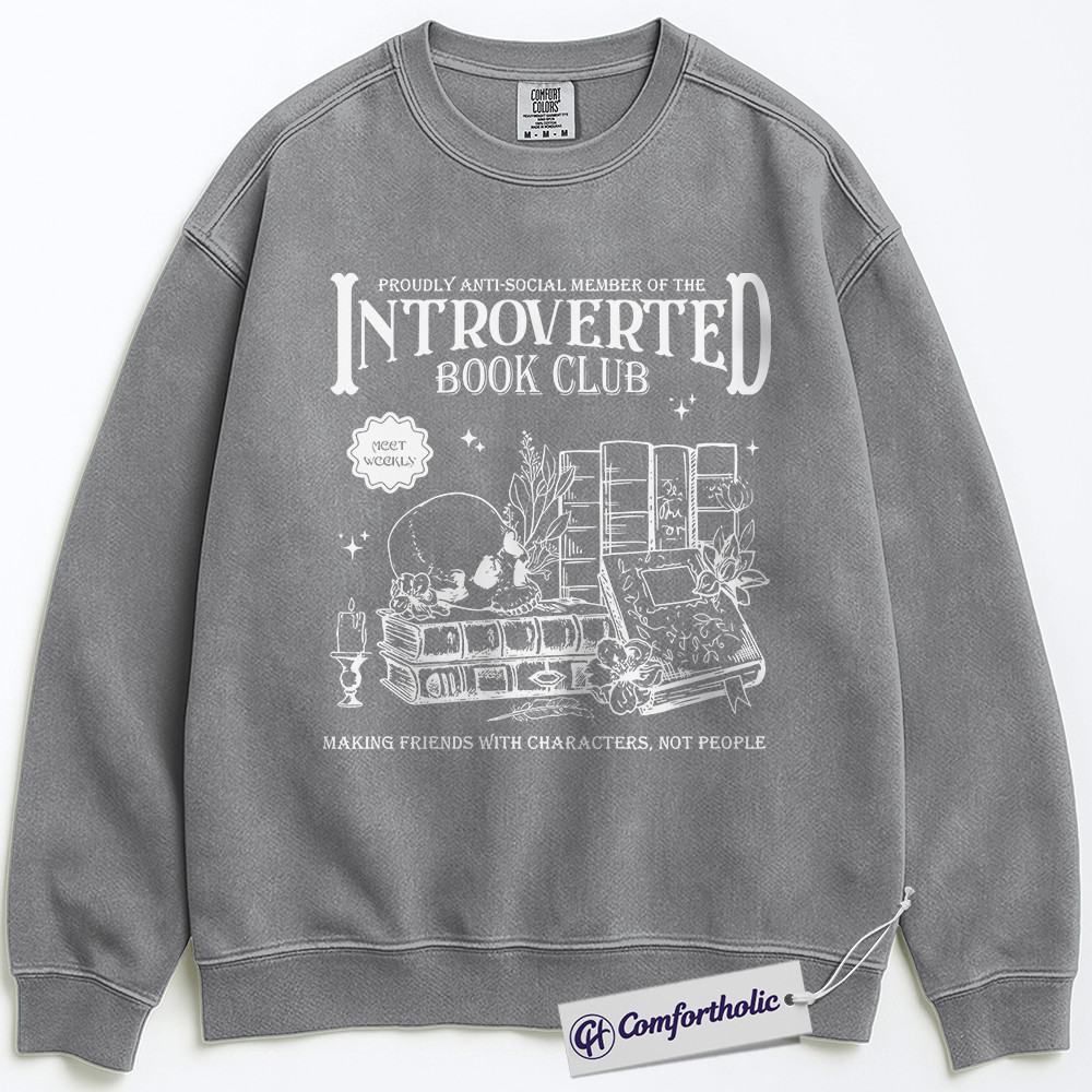 Introverted Book Club Sweatshirt, Funny Bookworm Crewneck, Gothic Dark Academia Reader Pullover, Literary Gift for Introverts, Comfort Colors Sweatshirt