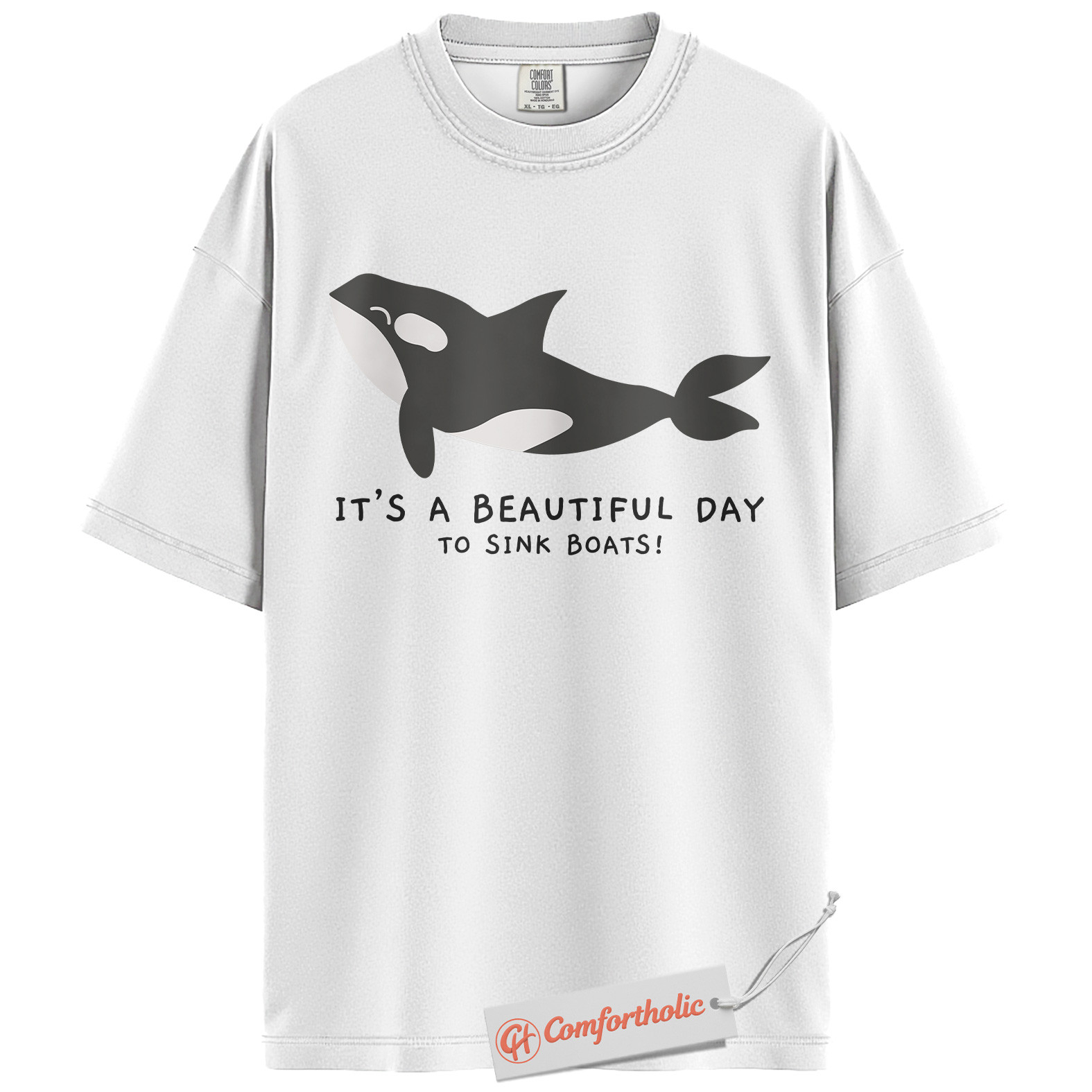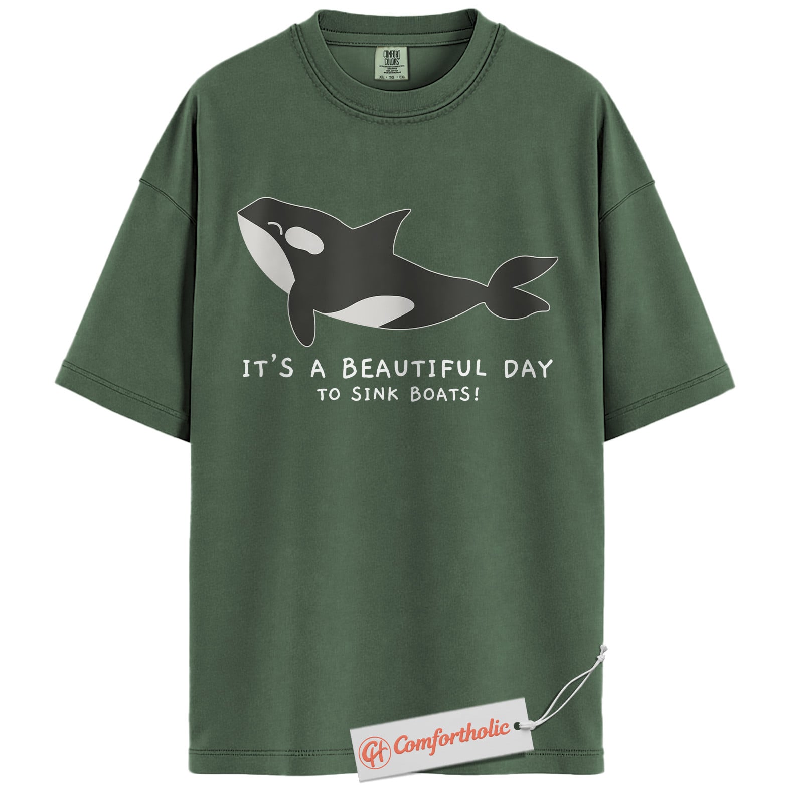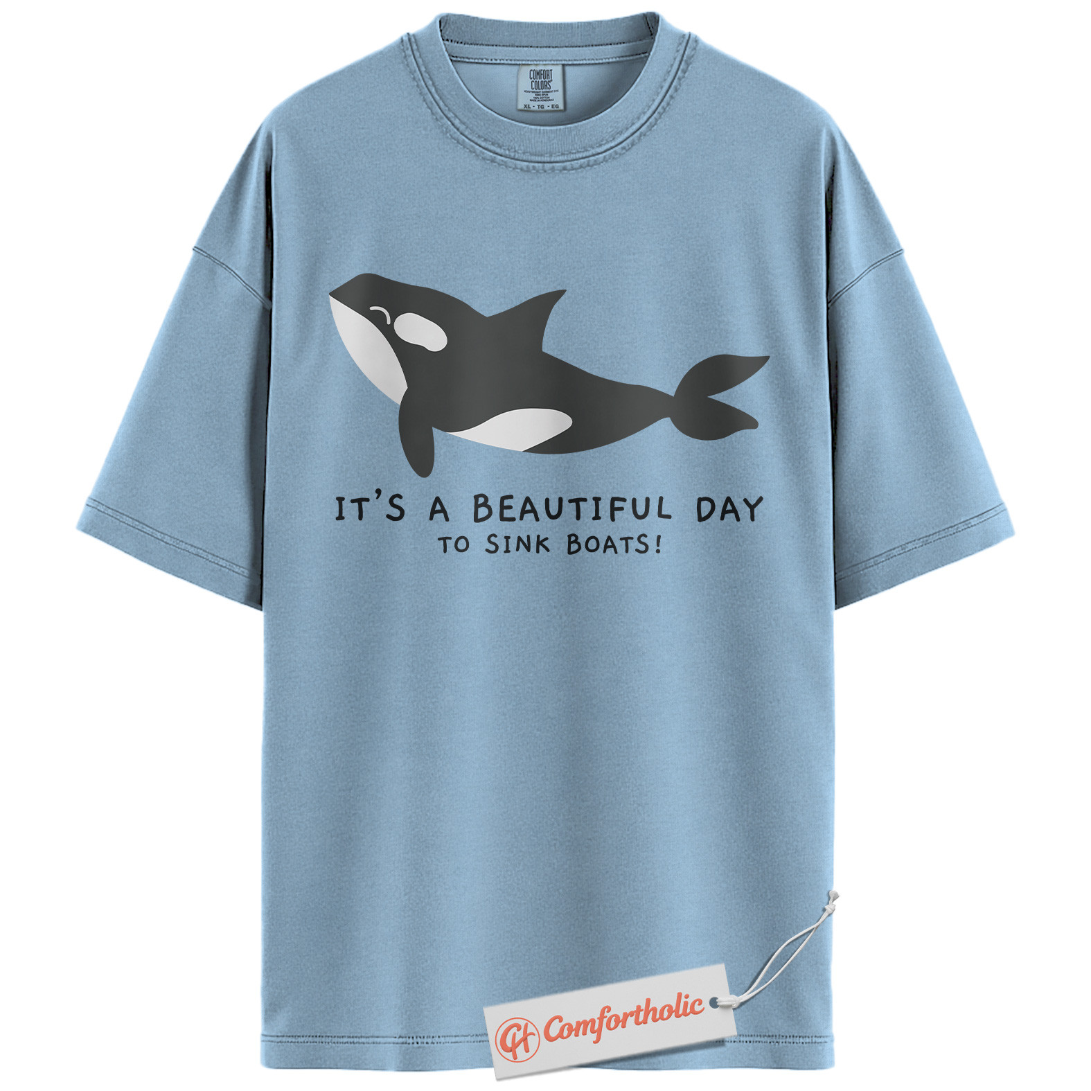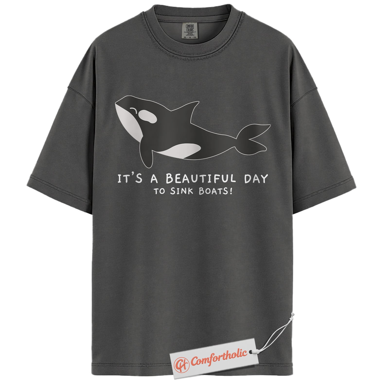 It’s a Beautiful Day To Sink Boats Shirt, Funny Orca Shirt, Killer Whale Shirt, Ocean Meme Shirt, Marine Animal Comfort Colors Shirt