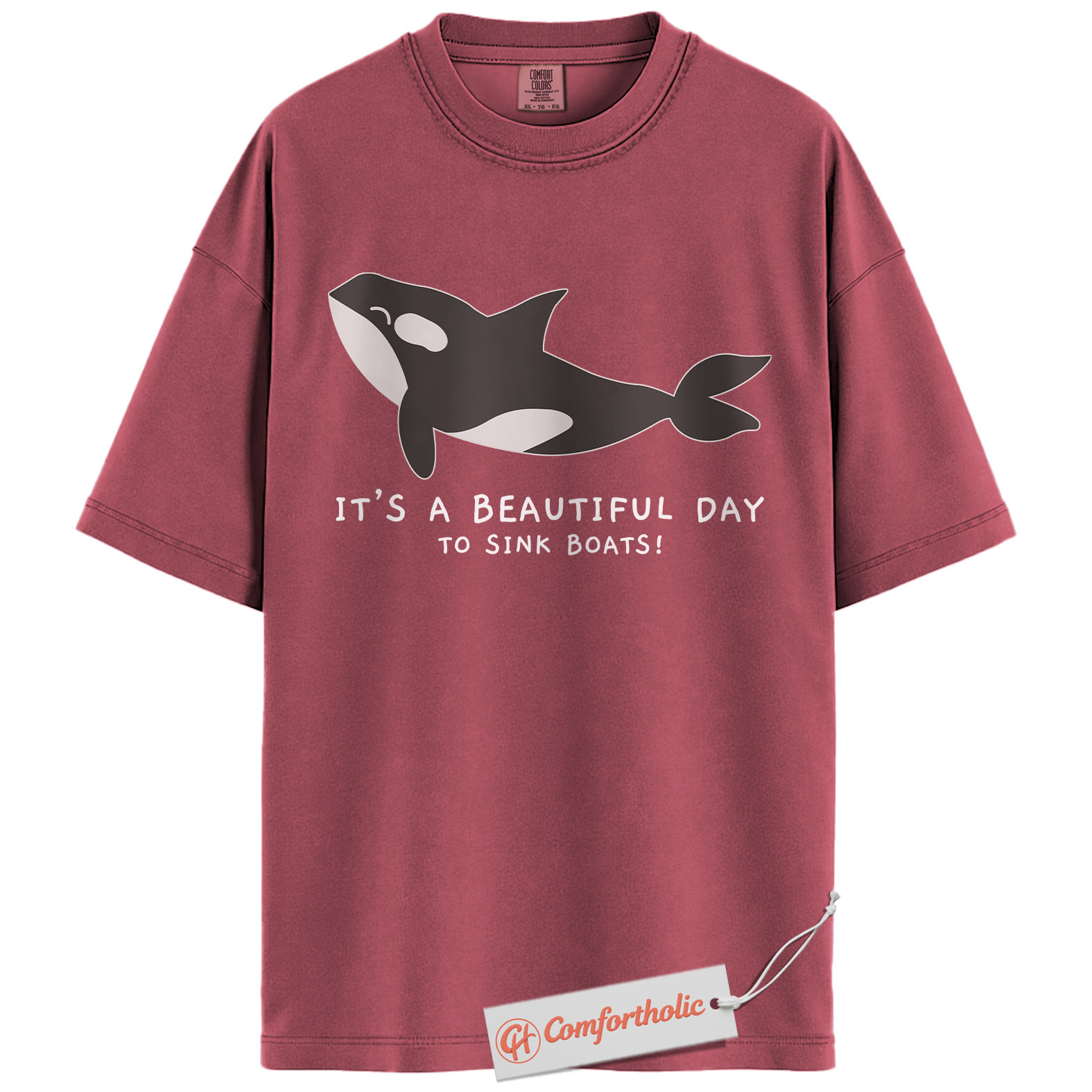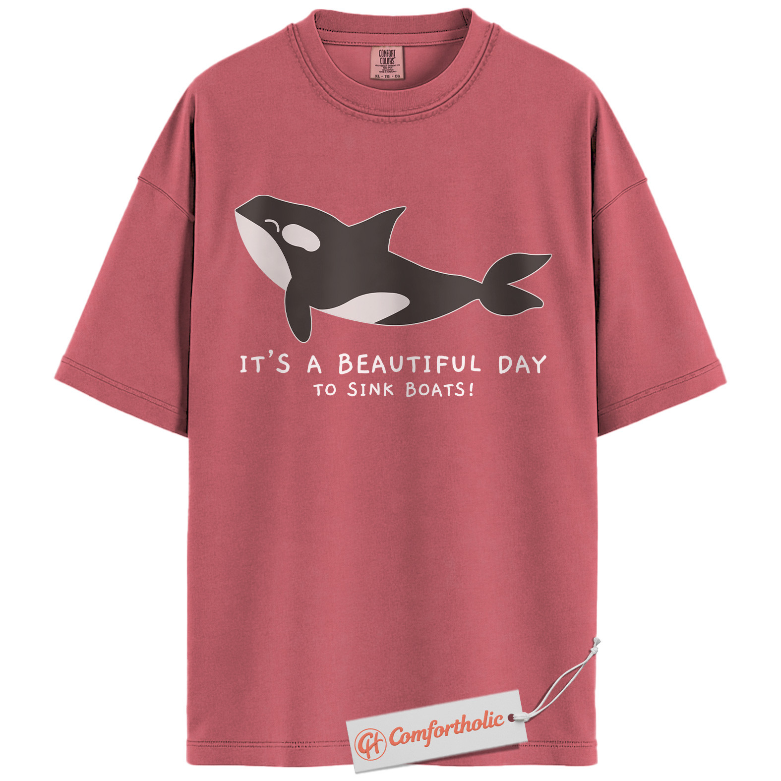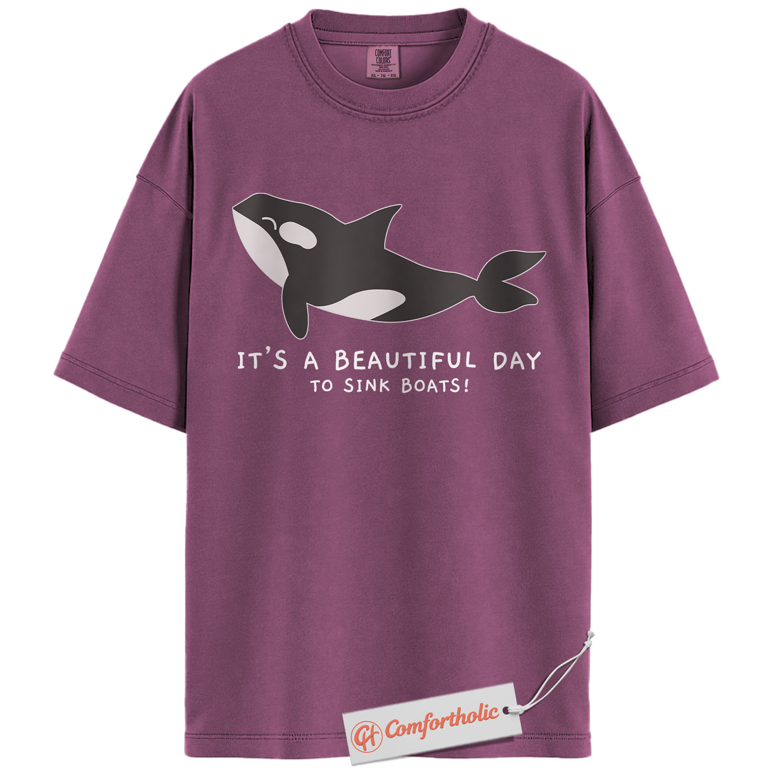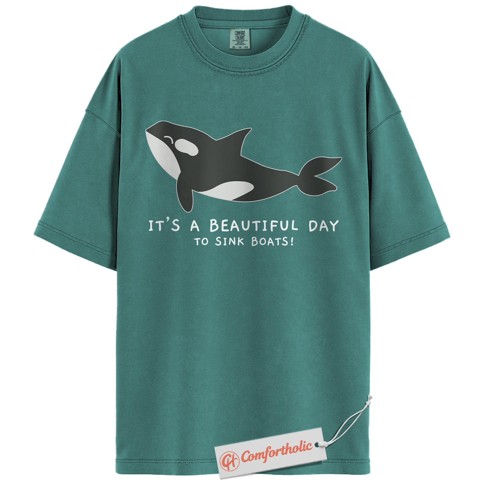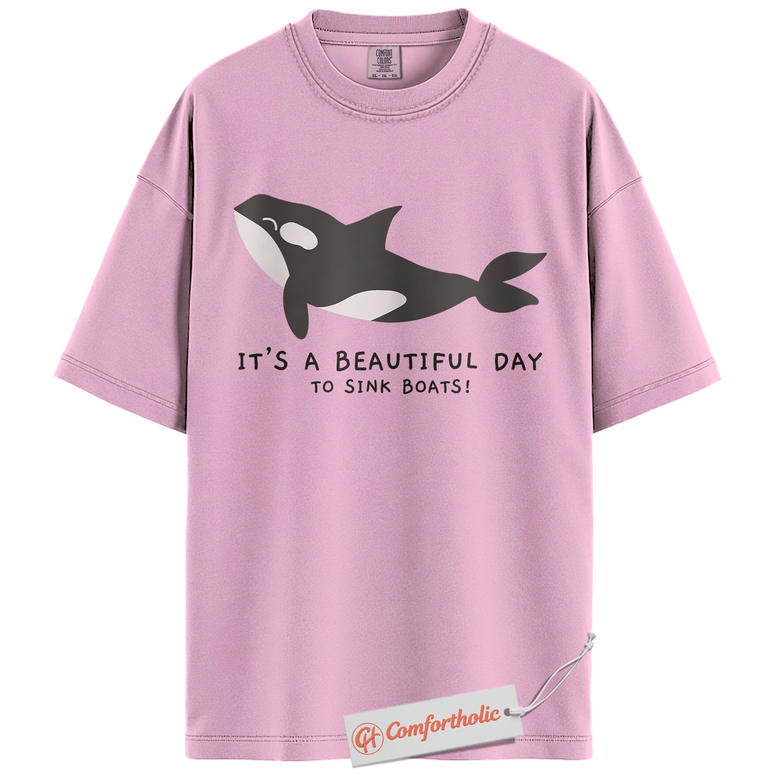 It’s a Beautiful Day To Sink Boats Shirt, Funny Orca Shirt, Killer Whale Shirt, Ocean Meme Shirt, Marine Animal Comfort Colors Shirt