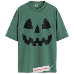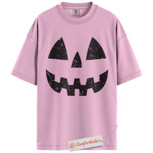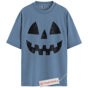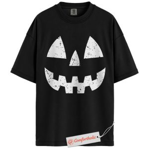 Jack O’Lantern Shirt, Minimalist Pumpkin Face Halloween T-Shirt, Spooky Fall Graphic Tee, Cute Grunge Halloween Gift, Comfort Colors Shirt