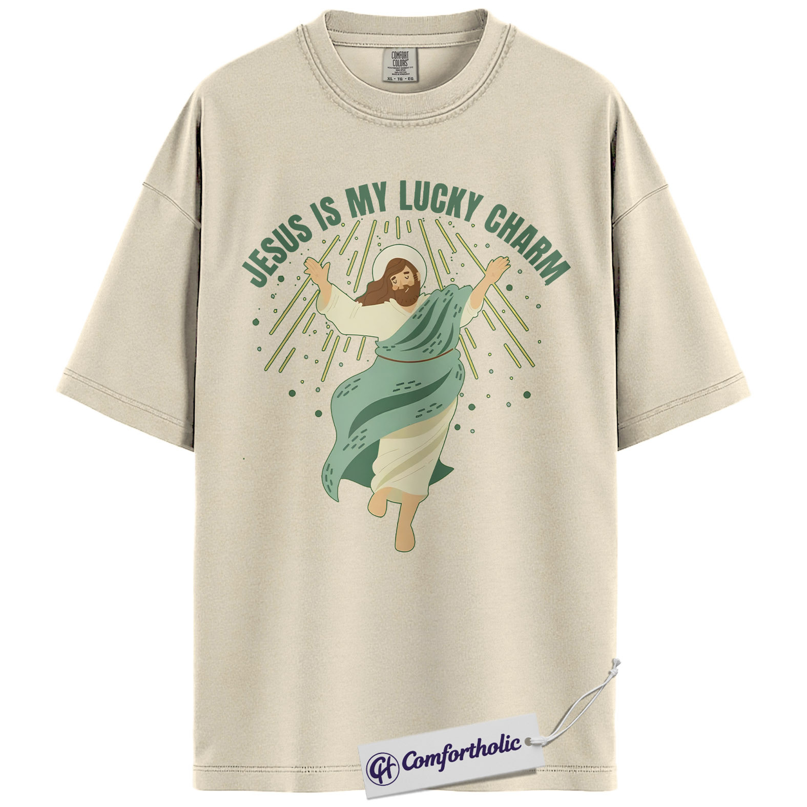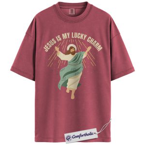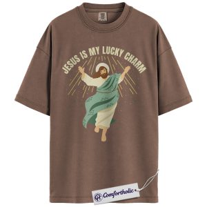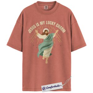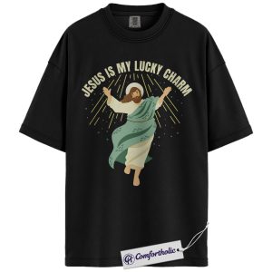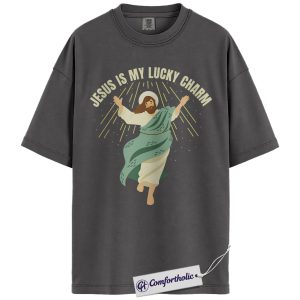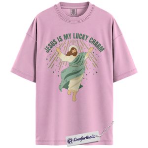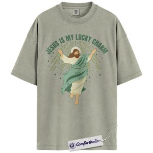 Jesus Is My Lucky Charm Shirt, St Patrick’s Day Jesus Graphic Tee, Christian Faith T-Shirt for Women, Cute Irish Green Gift, Comfort Colors Shirt