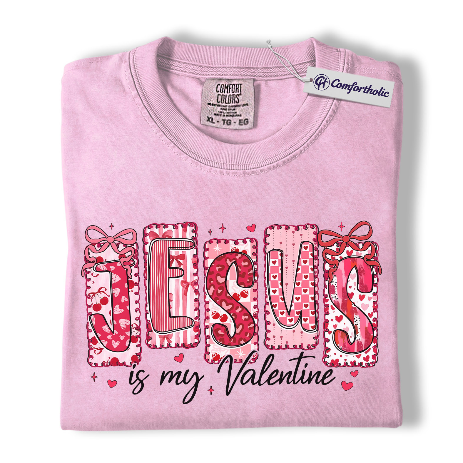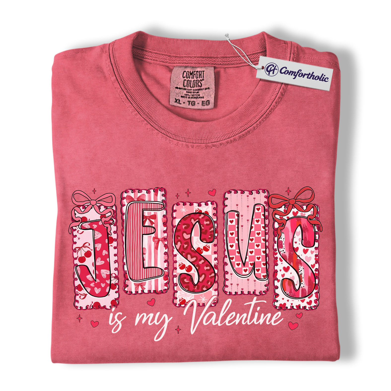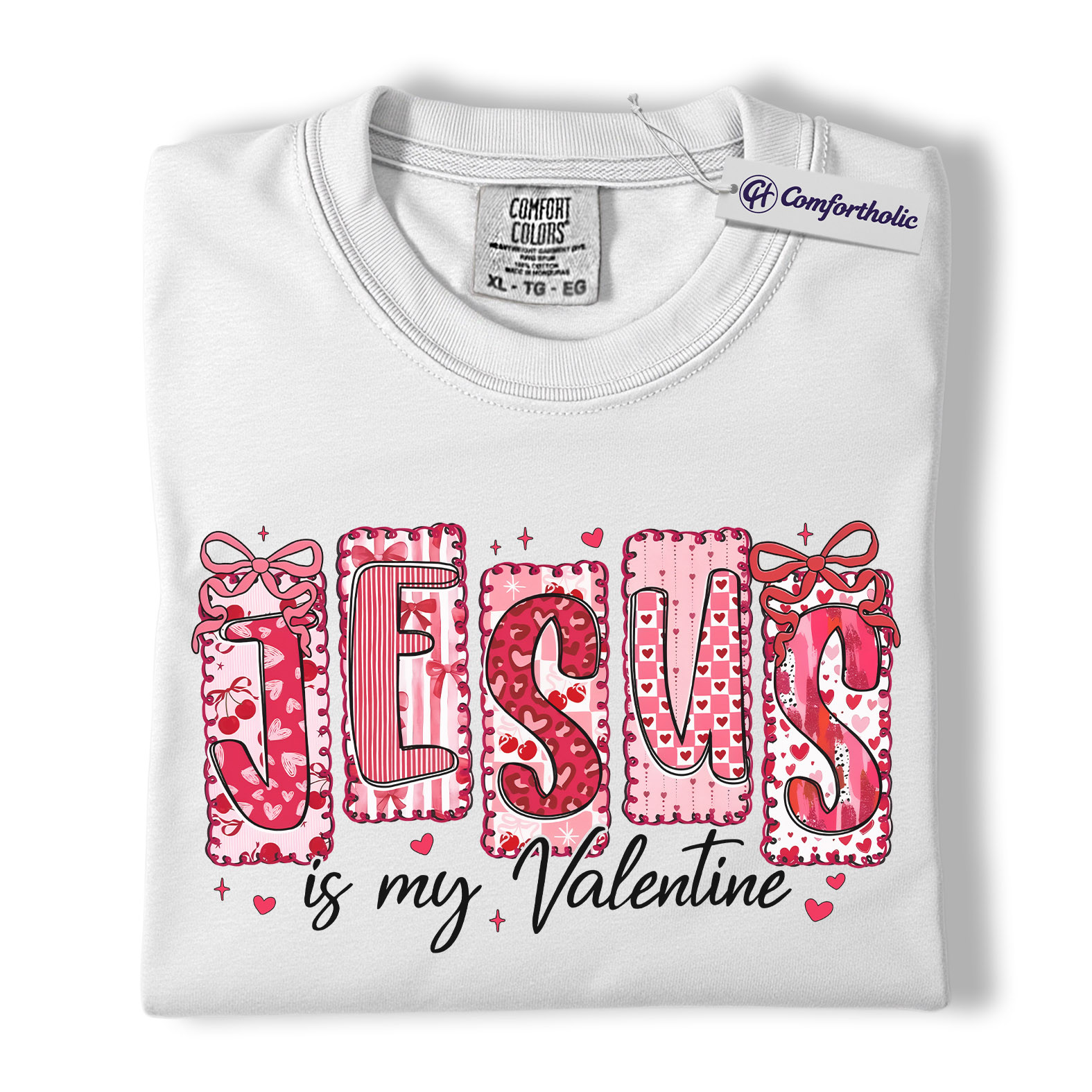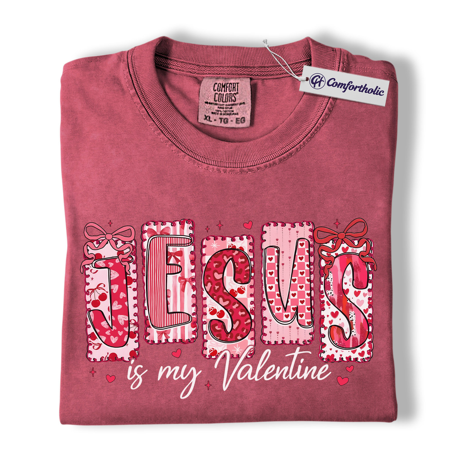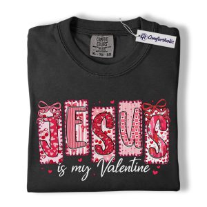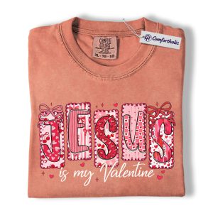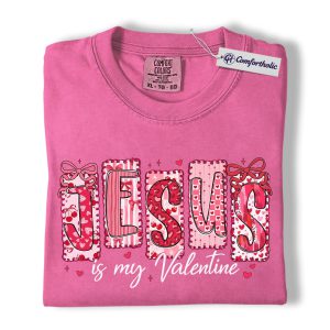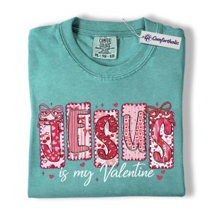 Jesus Is My Valentine Shirt, Patchwork Hearts Christian Valentine Graphic Tee, Faith-Based Jesus Lover T-Shirt, Valentine’s Day Gift for Christian Women, Comfort Colors Shirt