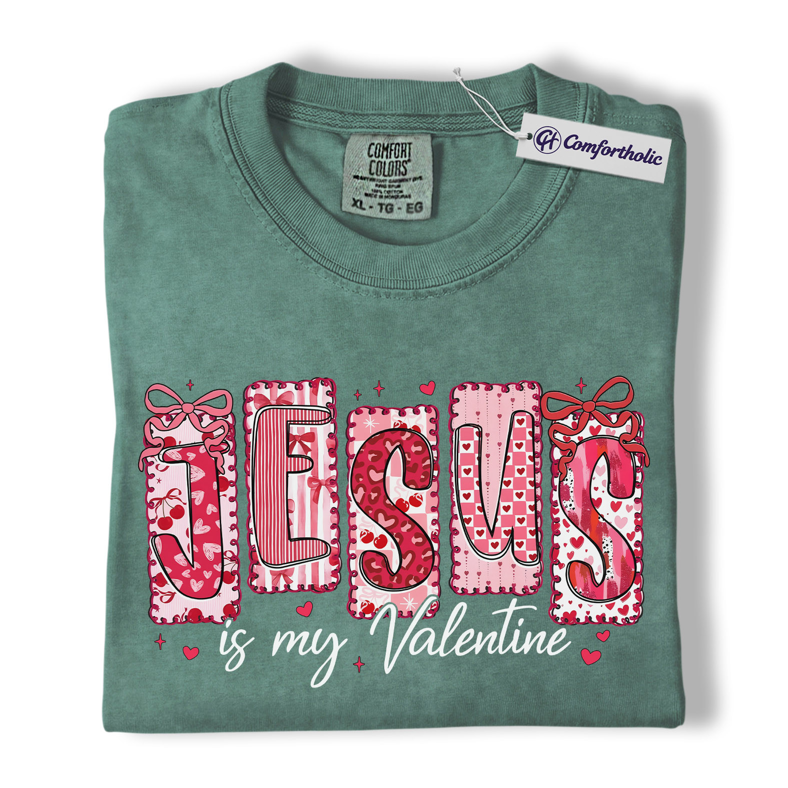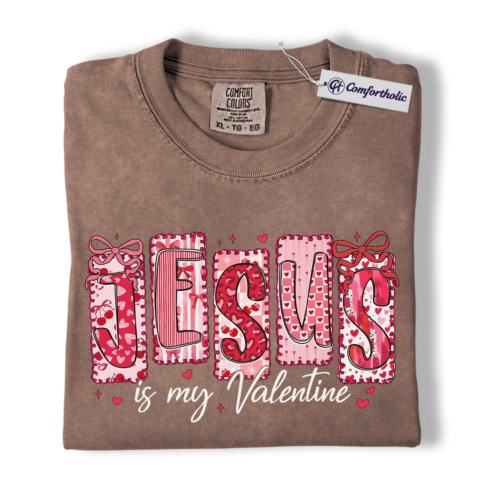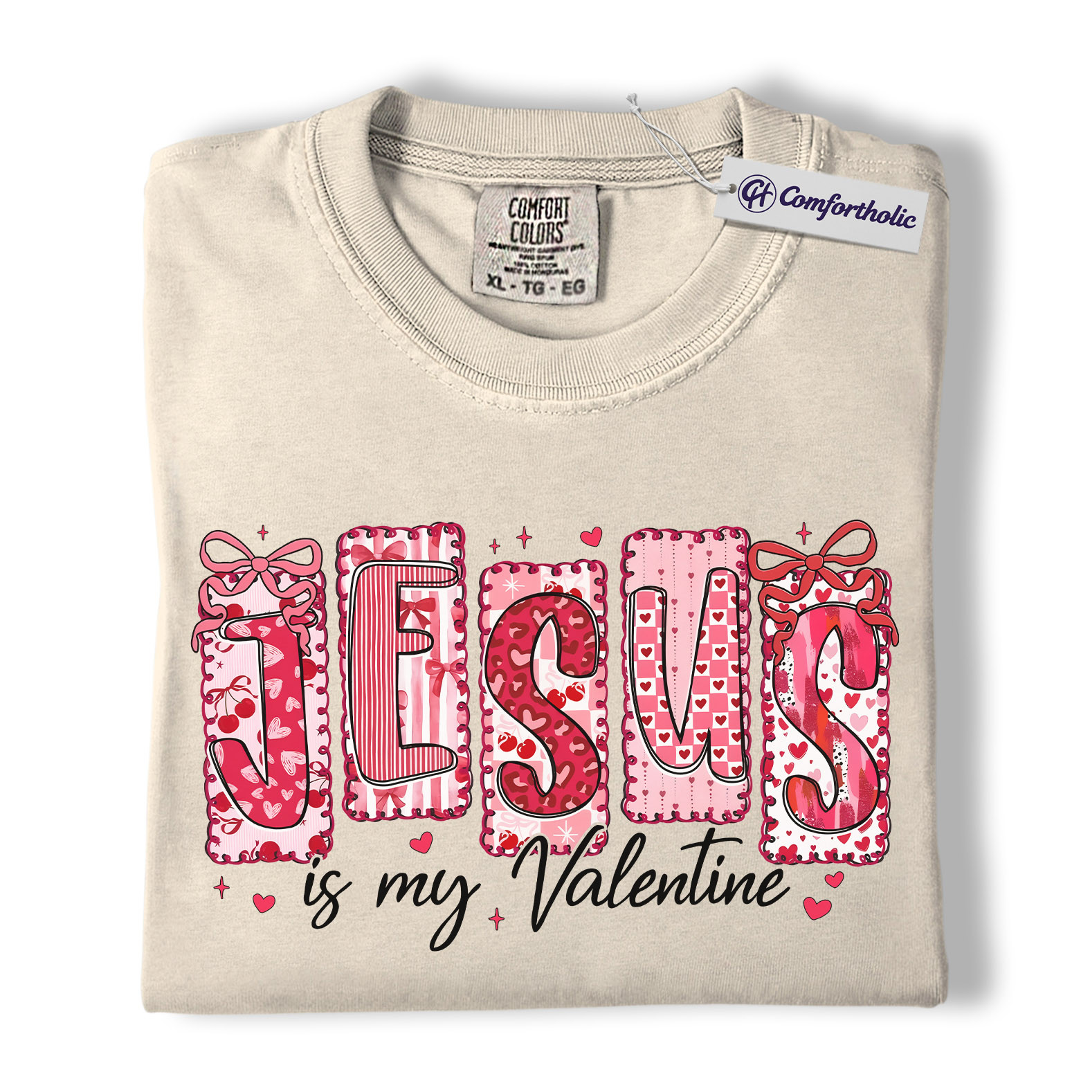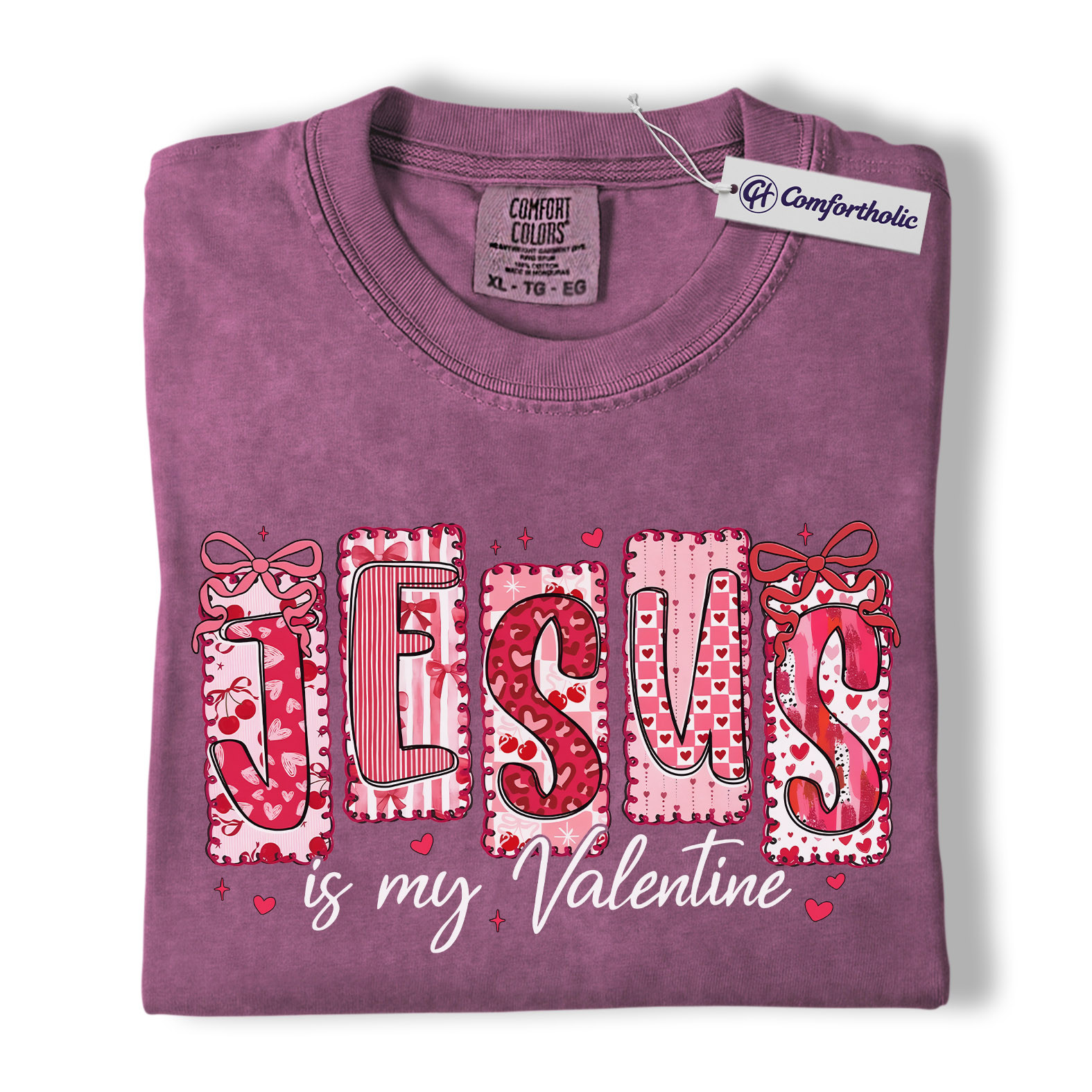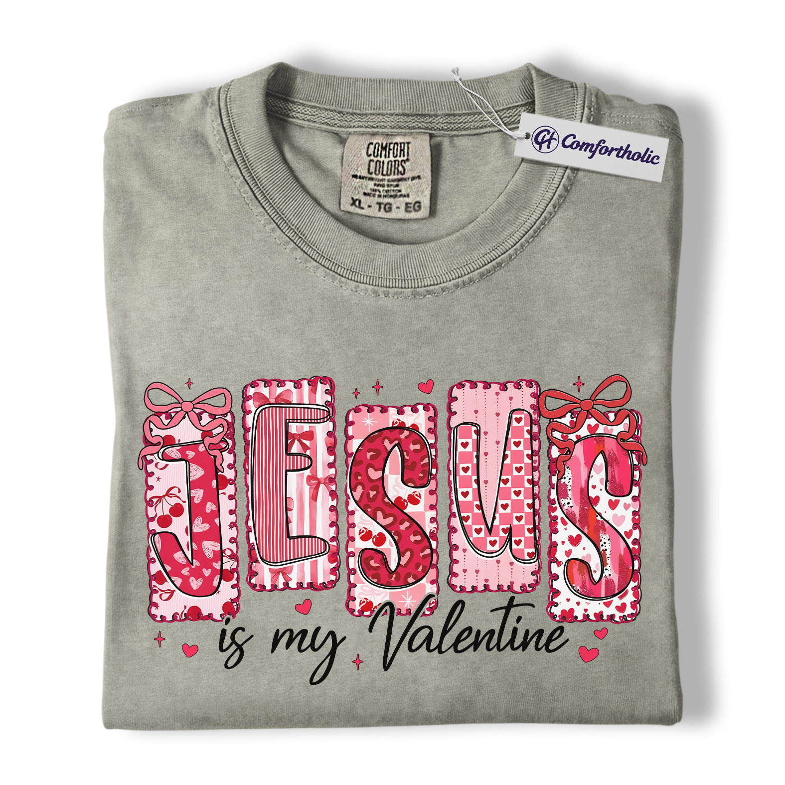 Jesus Is My Valentine Shirt, Patchwork Hearts Christian Valentine Graphic Tee, Faith-Based Jesus Lover T-Shirt, Valentine’s Day Gift for Christian Women, Comfort Colors Shirt