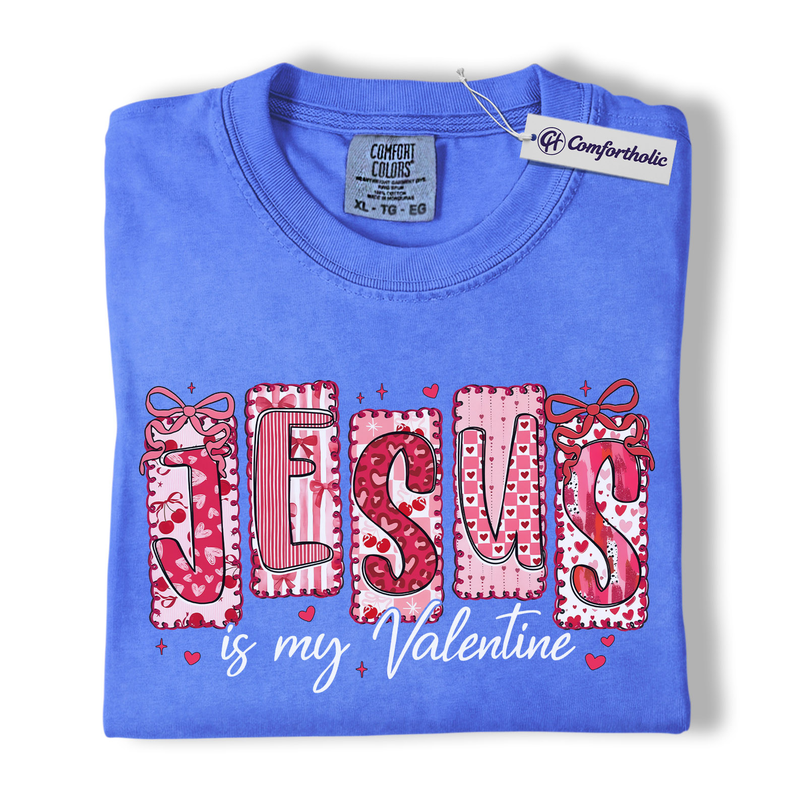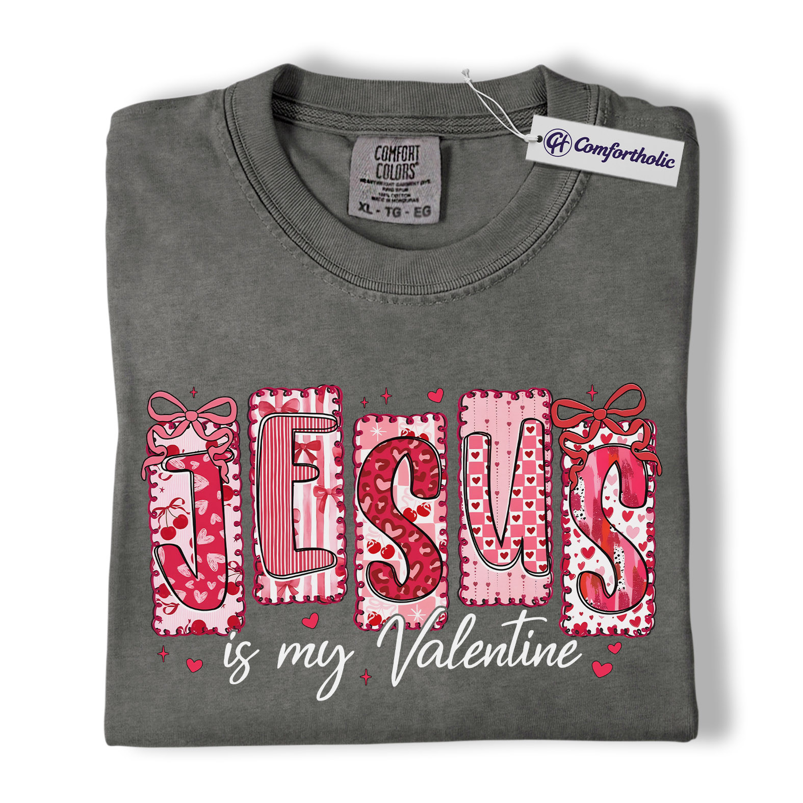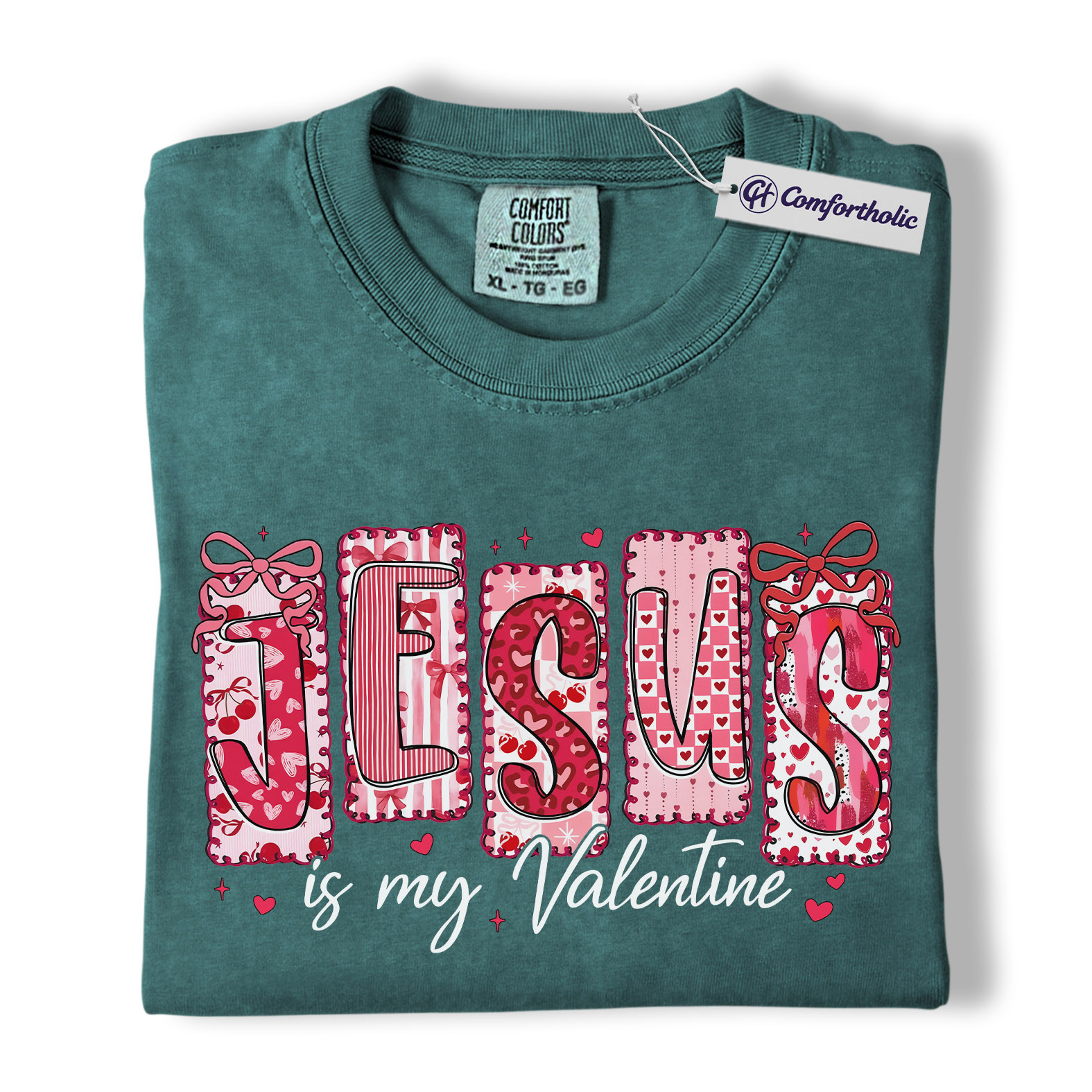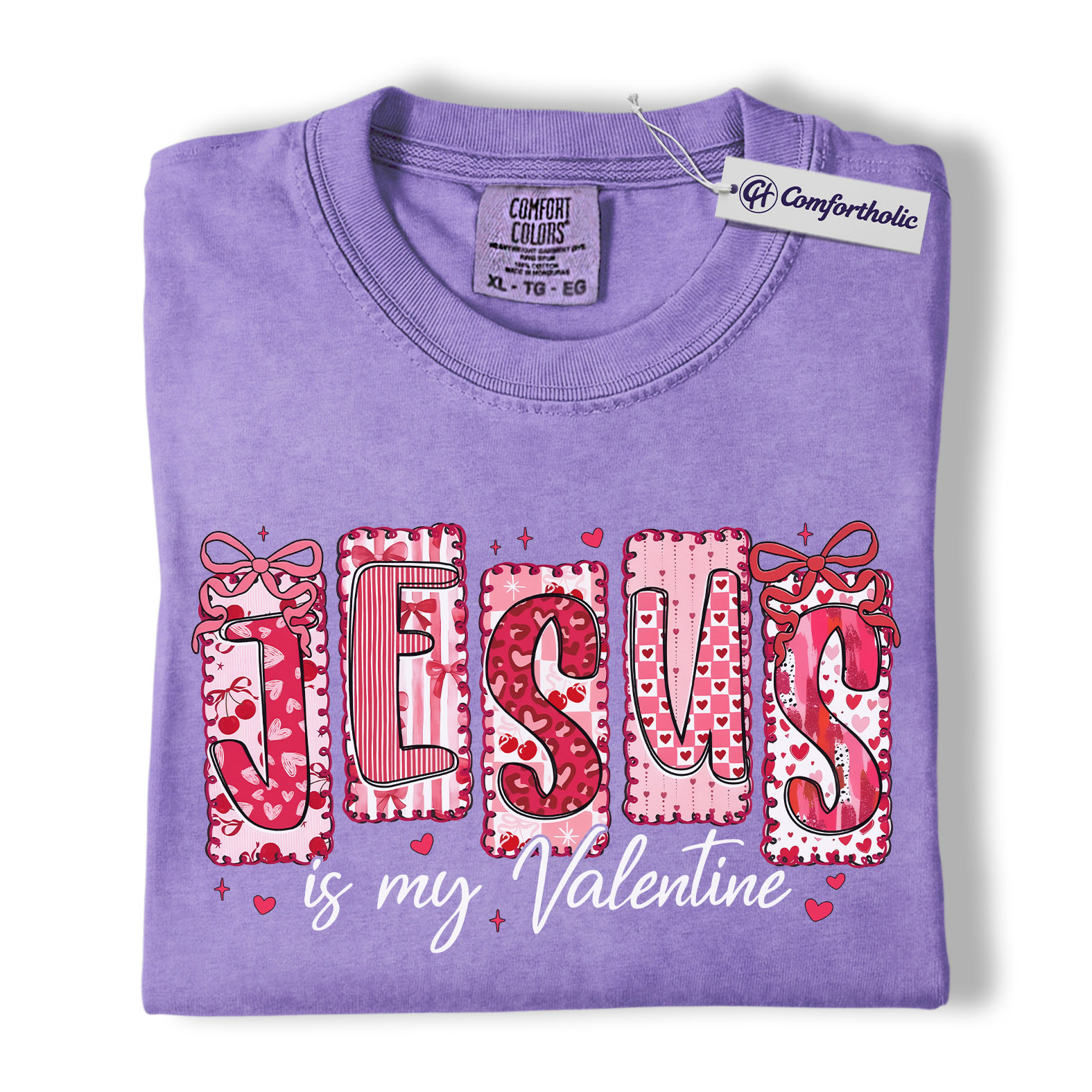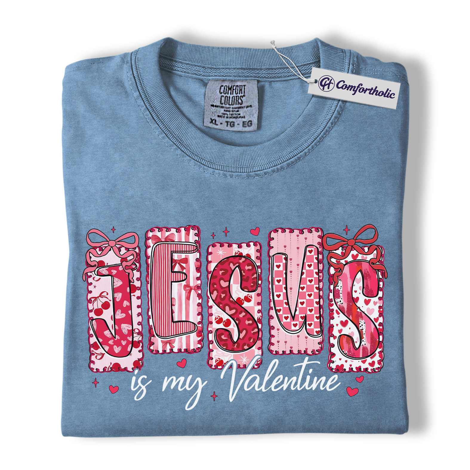 Jesus Is My Valentine Shirt, Patchwork Hearts Christian Valentine Graphic Tee, Faith-Based Jesus Lover T-Shirt, Valentine’s Day Gift for Christian Women, Comfort Colors Shirt