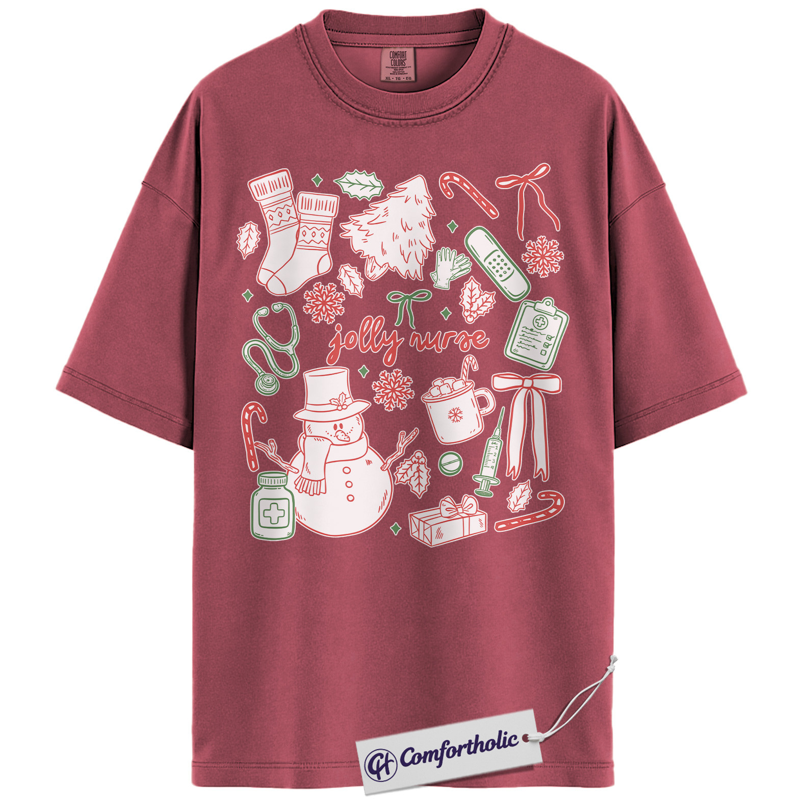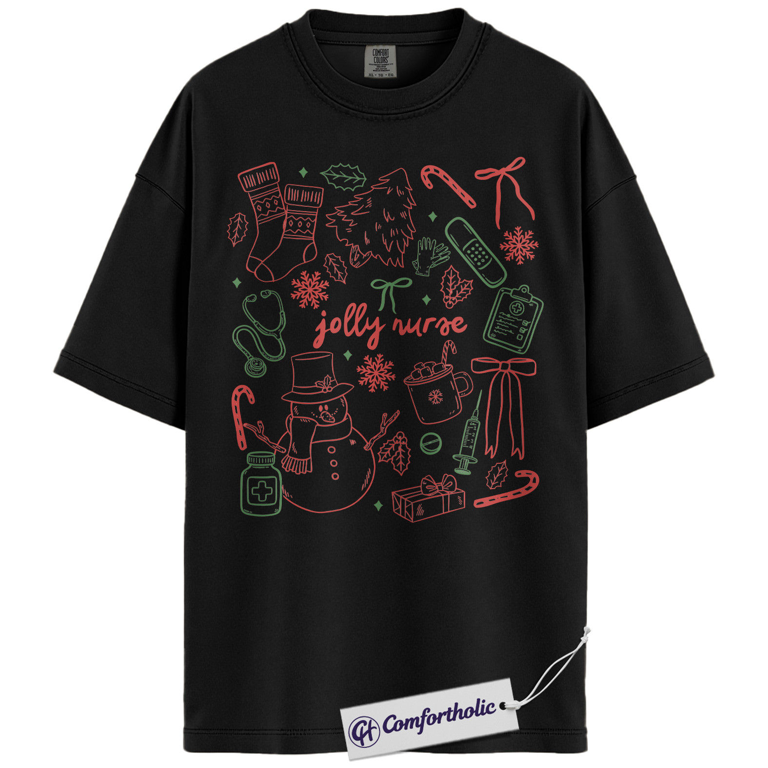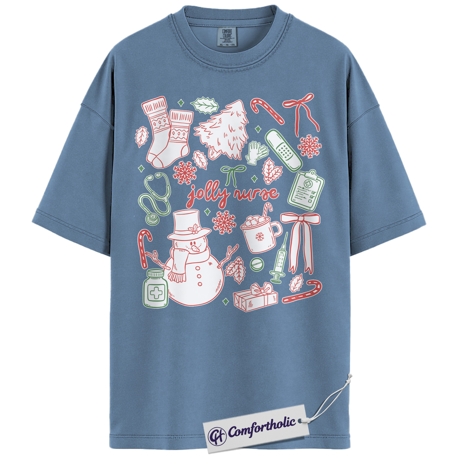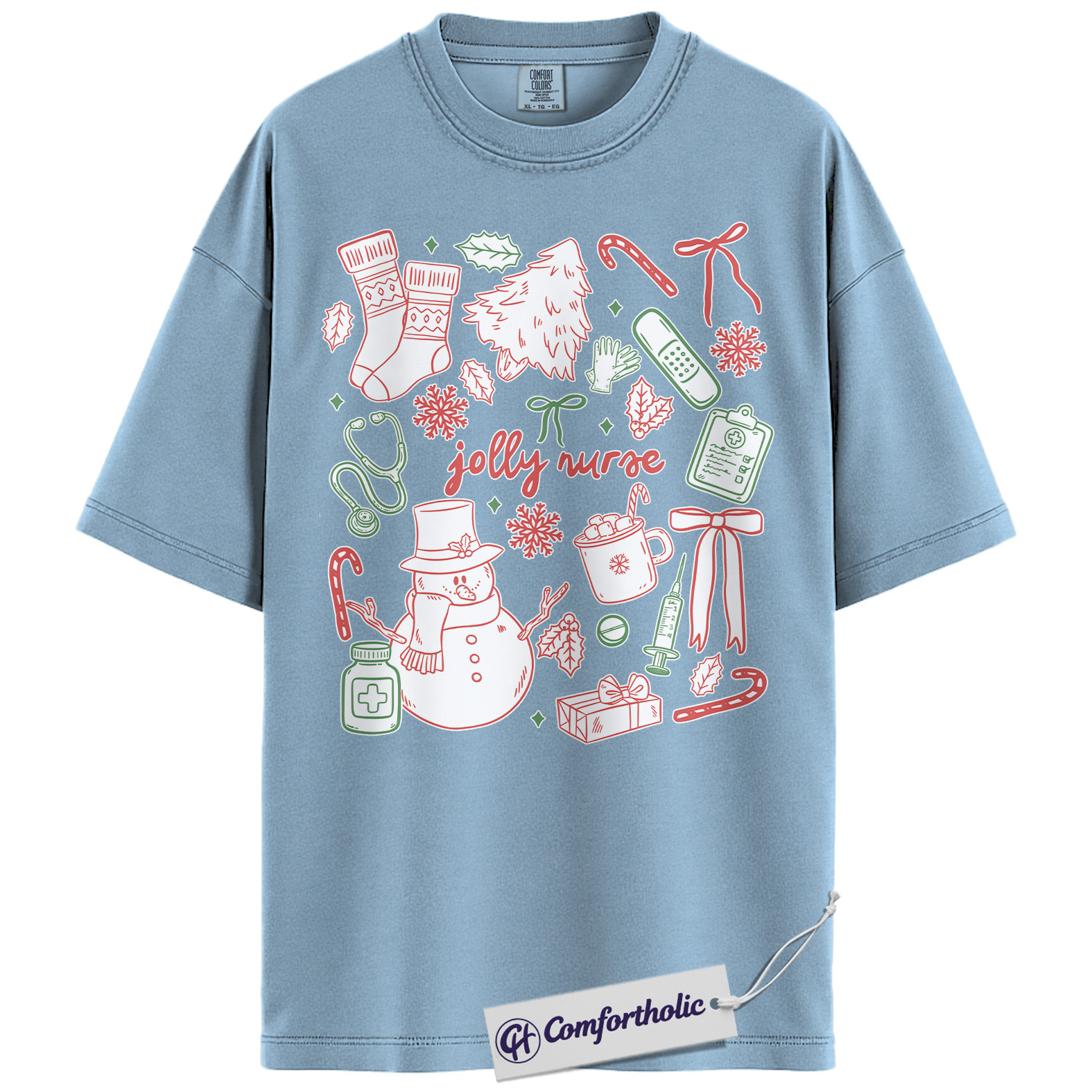 Jolly Nurse Christmas Shirt, Funny Medical Worker Holiday T-Shirt, Cute Snowman Healthcare Graphic Tee, Festive Gift for Nurses, Christmas Comfort Colors Shirt