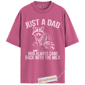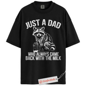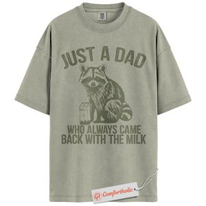 Just a Dad Shirt, Funny Raccoon Dad T-Shirt, Always Came Back With the Milk Tee, Father’s Day Gift for Dads, Animal Lover Comfort Colors Shirt