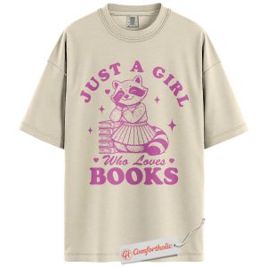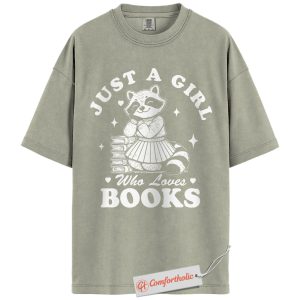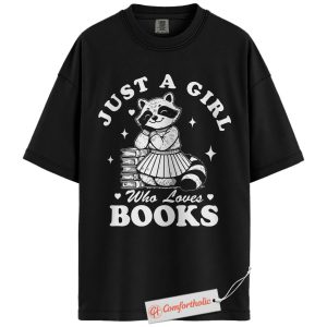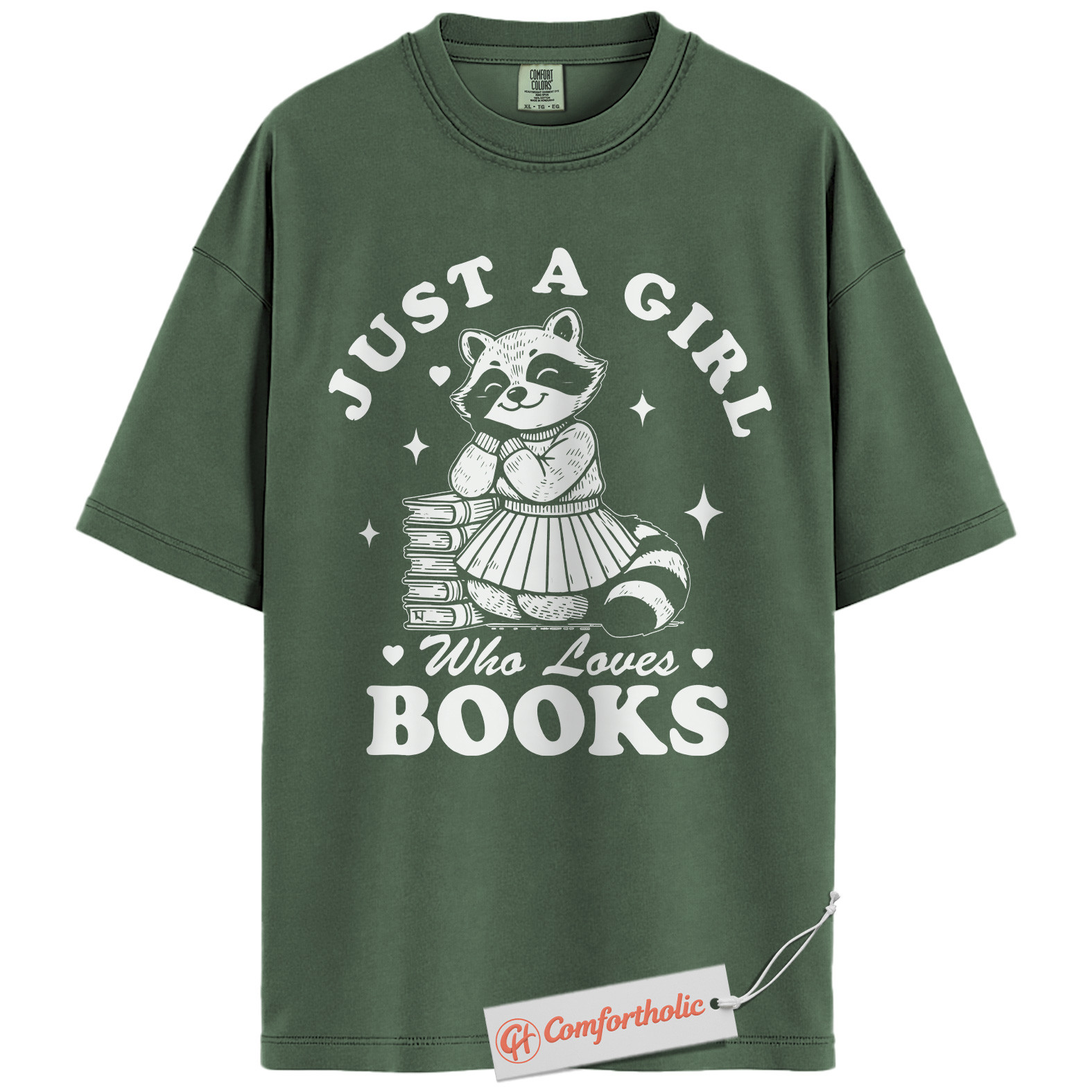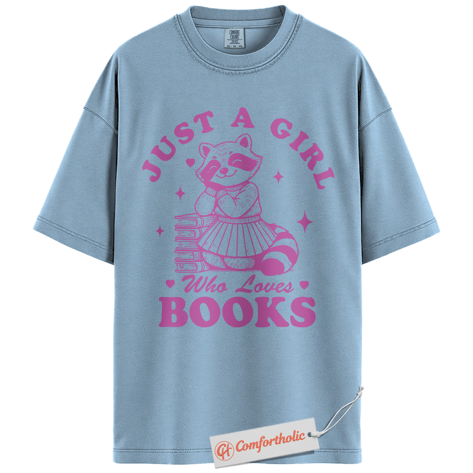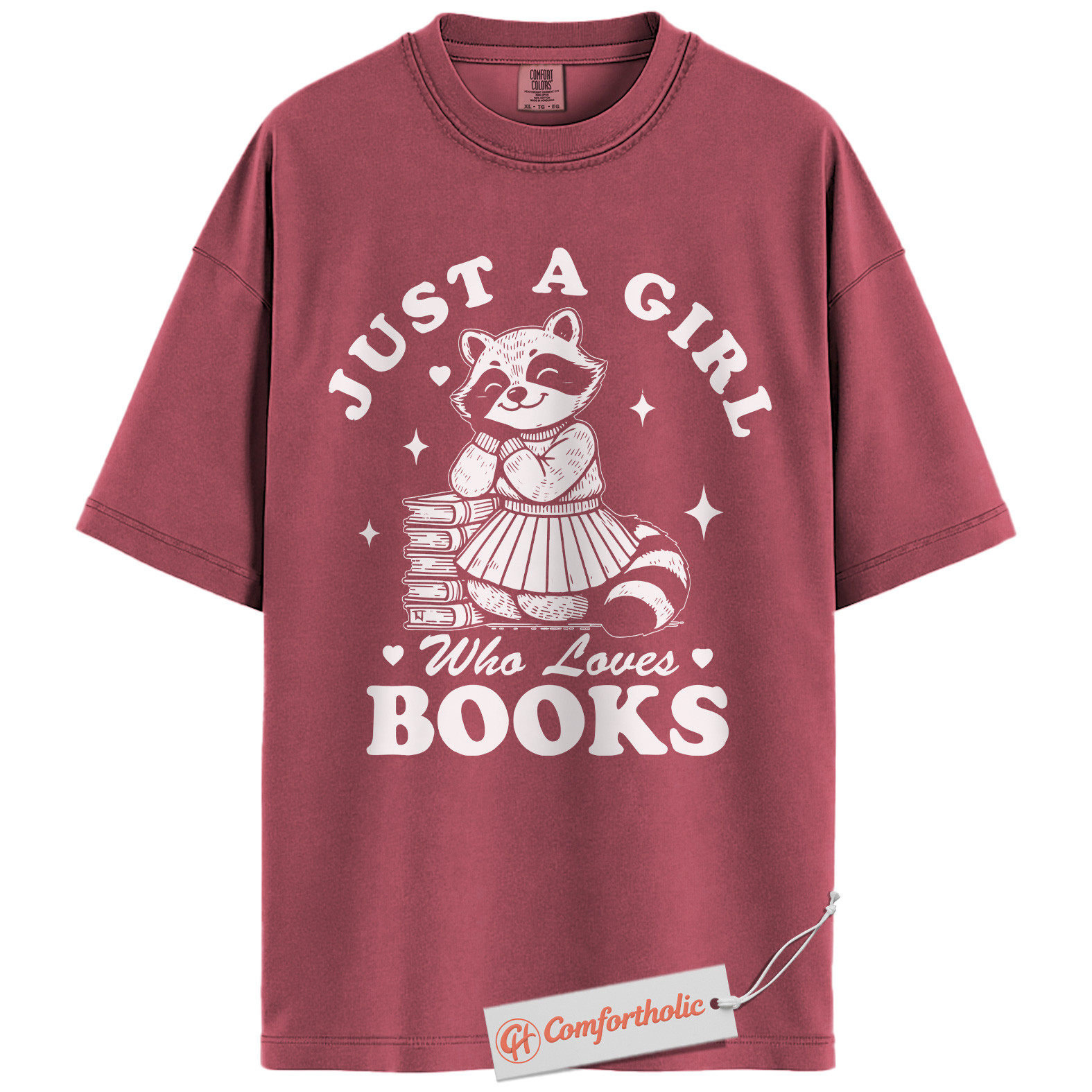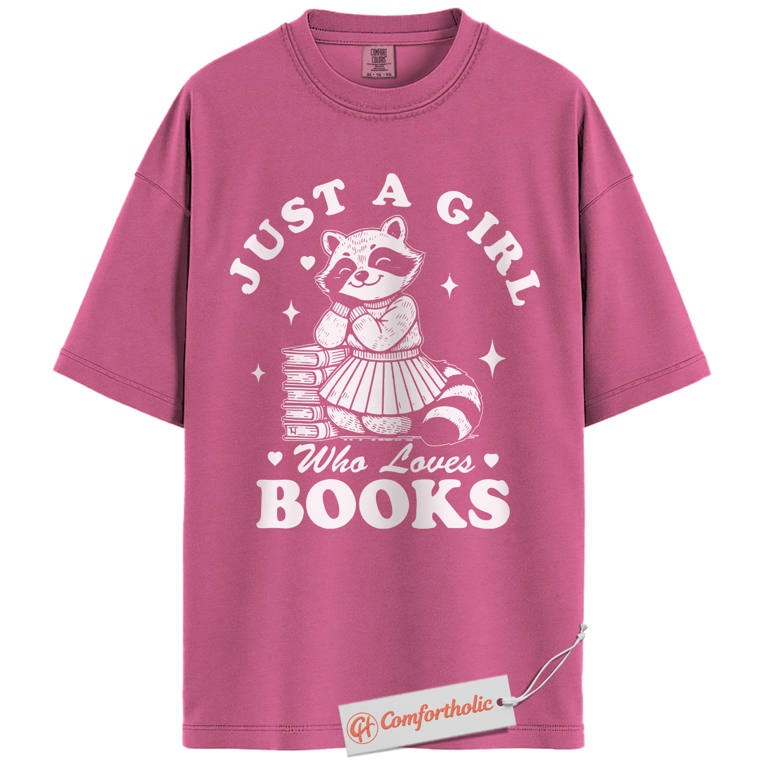 Just a Girl Who Loves Books Shirt, Cute Raccoon Reading Shirt, Book Lover Gift, Aesthetic Reader Shirt, Comfort Colors Shirt